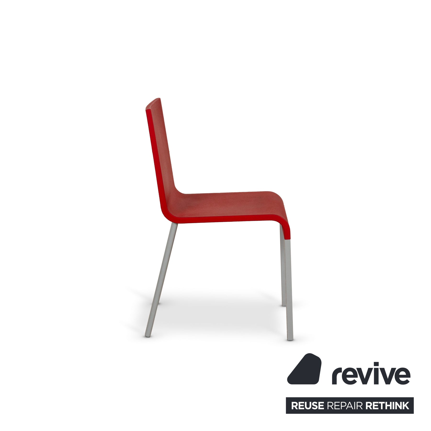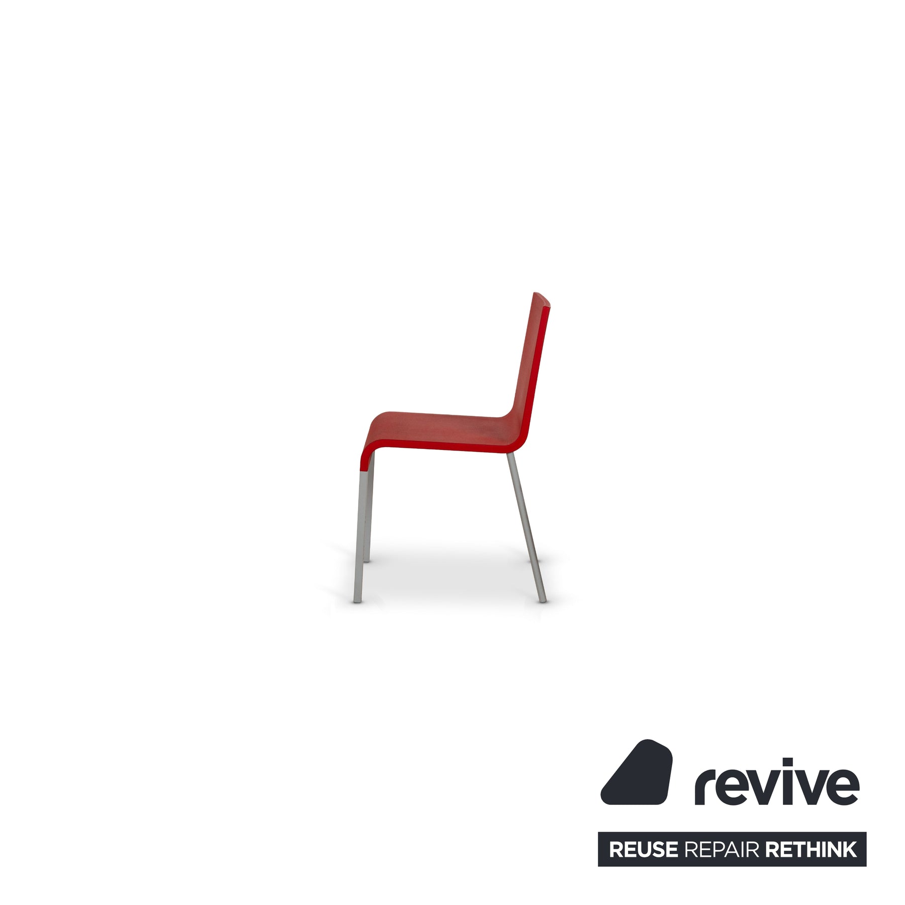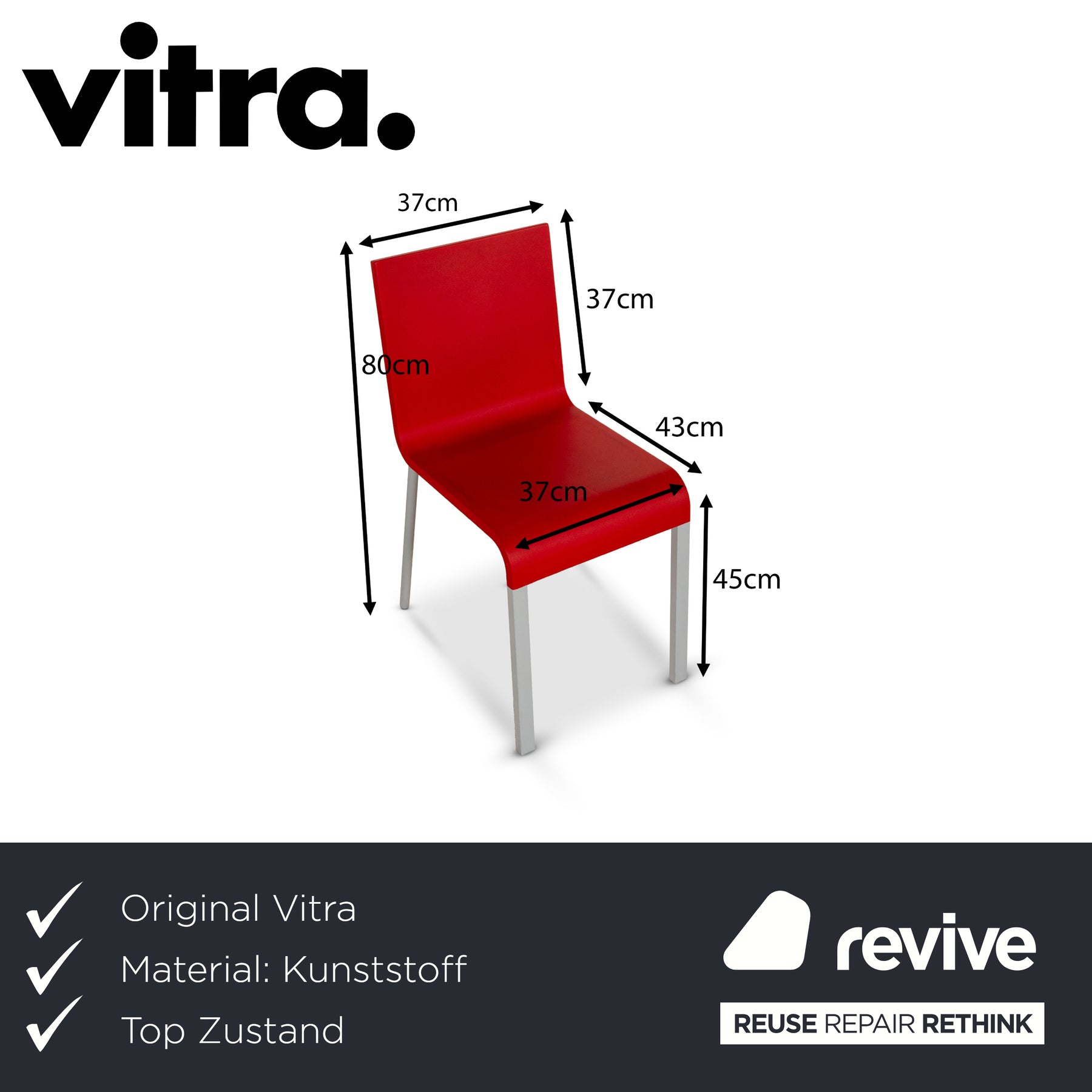 The chair set from Vitra consists of a total of six examples of the .03 chair. This is characterized by its simple and reduced design, because here a red plastic shell, which forms the seat and backrest, forms an elegant connection with the metal legs. Minimal curves and clear edges make for a real eye-catcher.