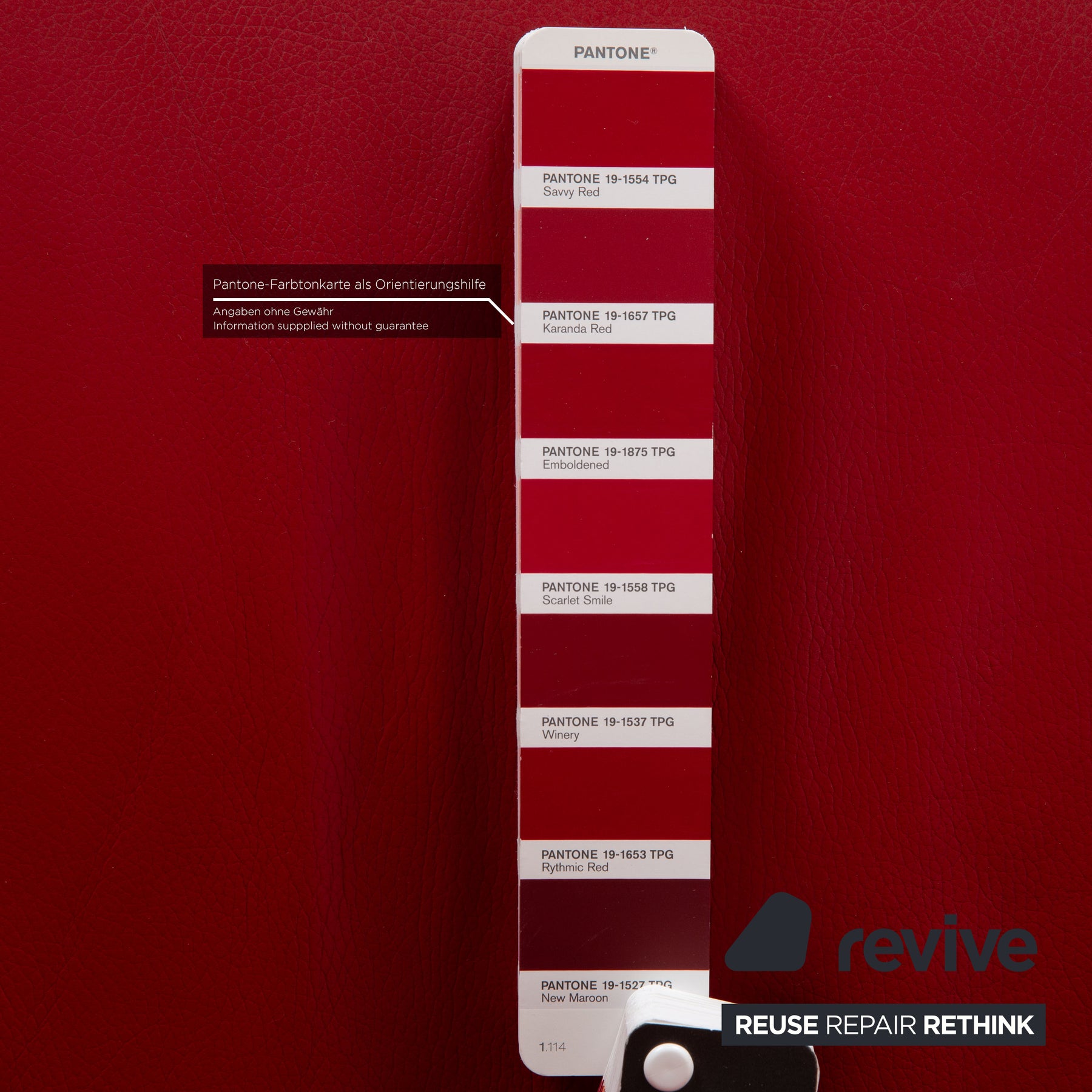 The Solo 699 armchair from WK Wohnen is covered in red genuine leather and stands on a metal frame. It is characterized by its practical relaxation function and rounded edges.