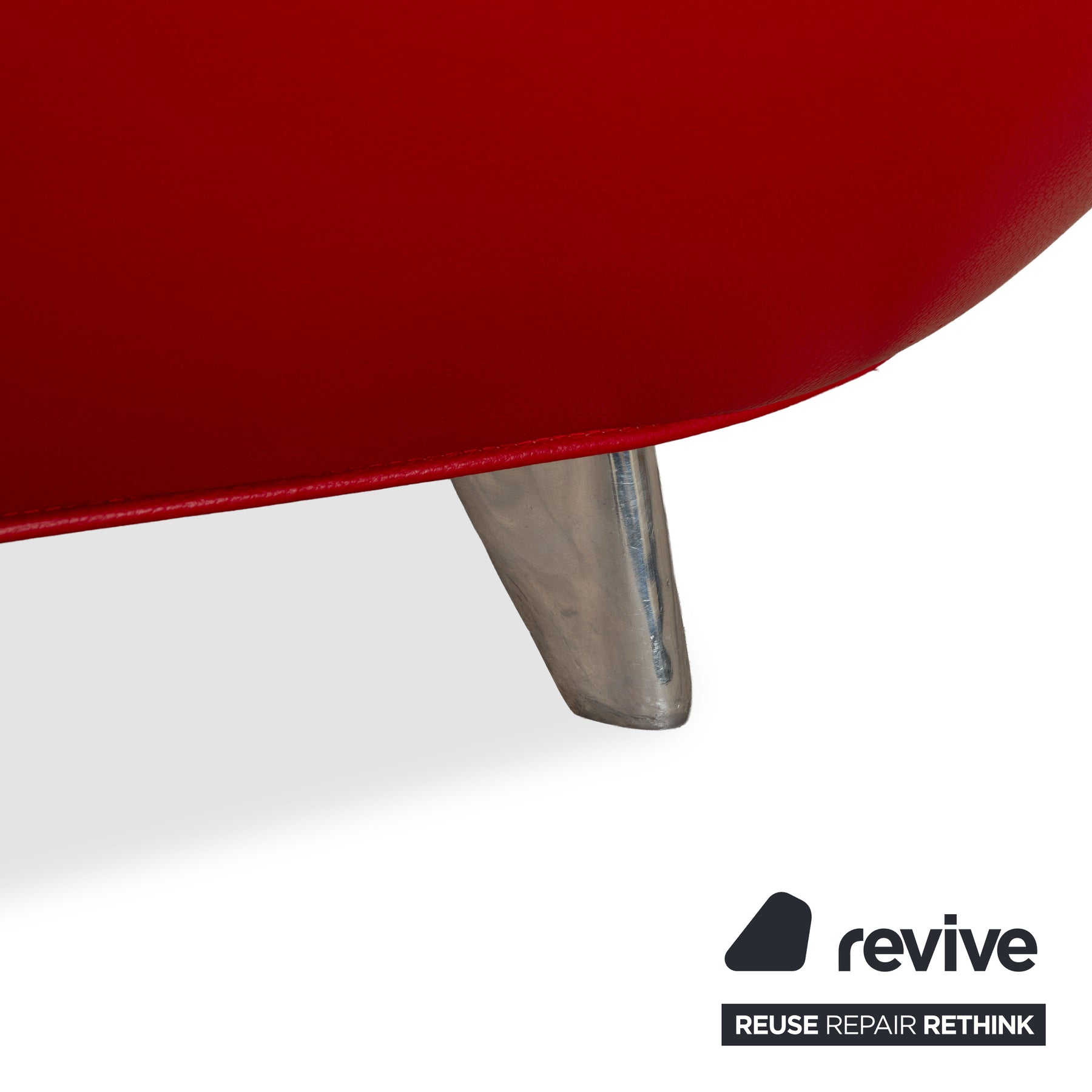 The Jeannie three-seater by Bretz is upholstered in red genuine leather and stands on silver metal feet. It is characterized by its organic shape and extravagant design.