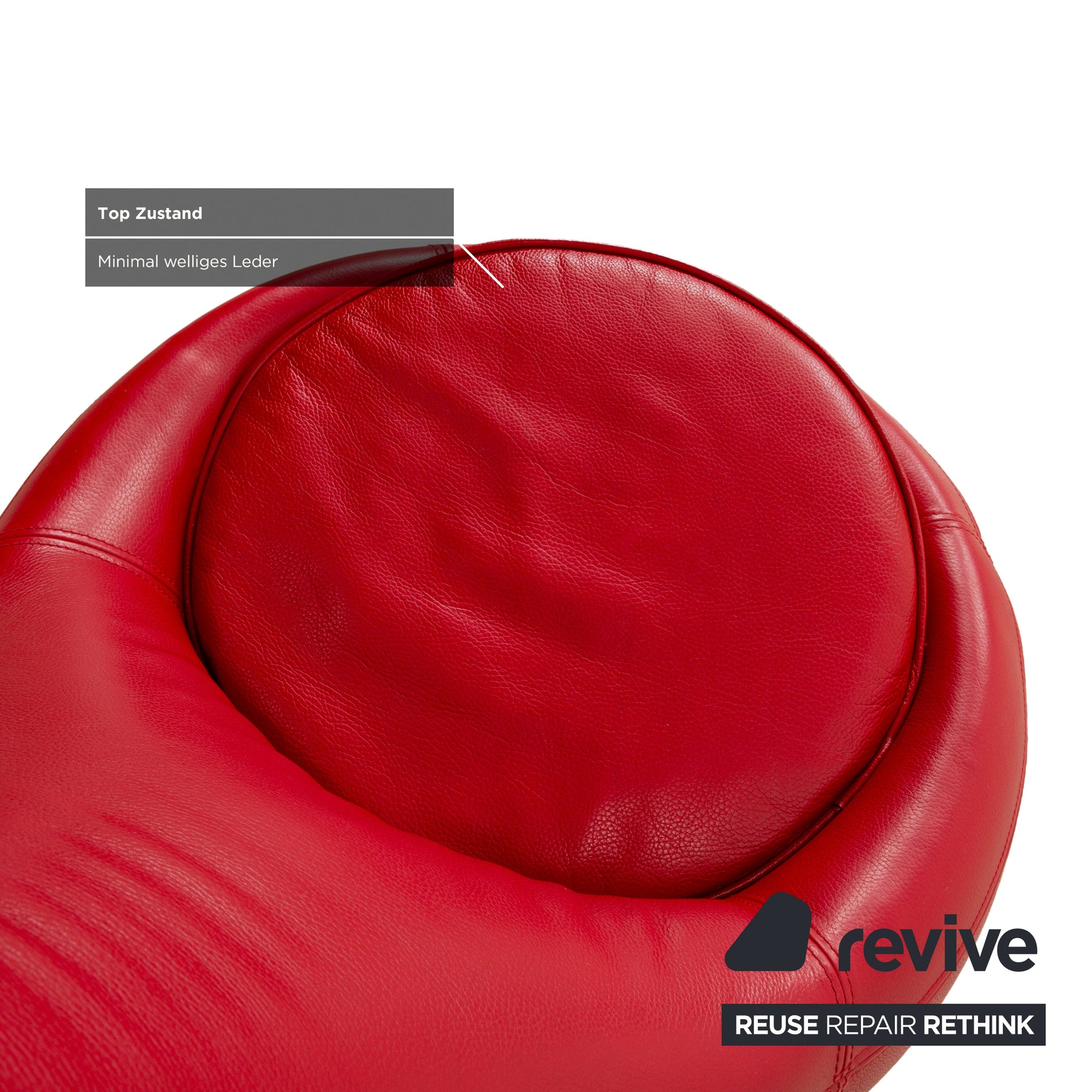 The Jeannie armchair by Bretz is upholstered in red genuine leather and stands on silver metal feet. It is characterized by its organic shape and extravagant design.