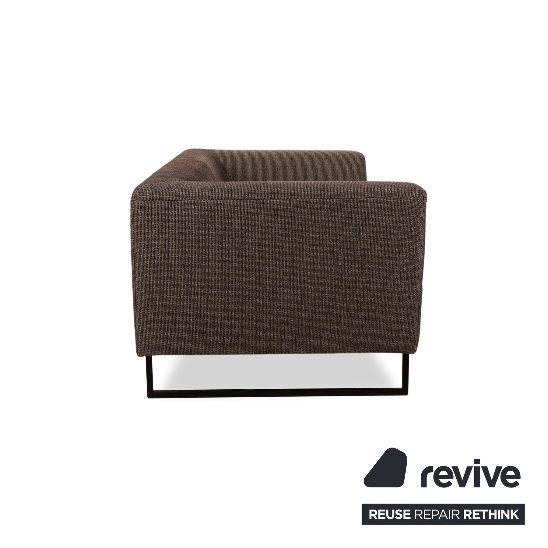 This freestyle Rolf Benz sofa impresses with its modern and minimalist design. With its structured, dark brown fabric cover, it blends harmoniously into any environment. The sturdy metal frame in black underlines the contemporary style and at the same time offers reliable stability. Ideal for smaller living rooms, offices or as a stylish addition to a cozy corner.