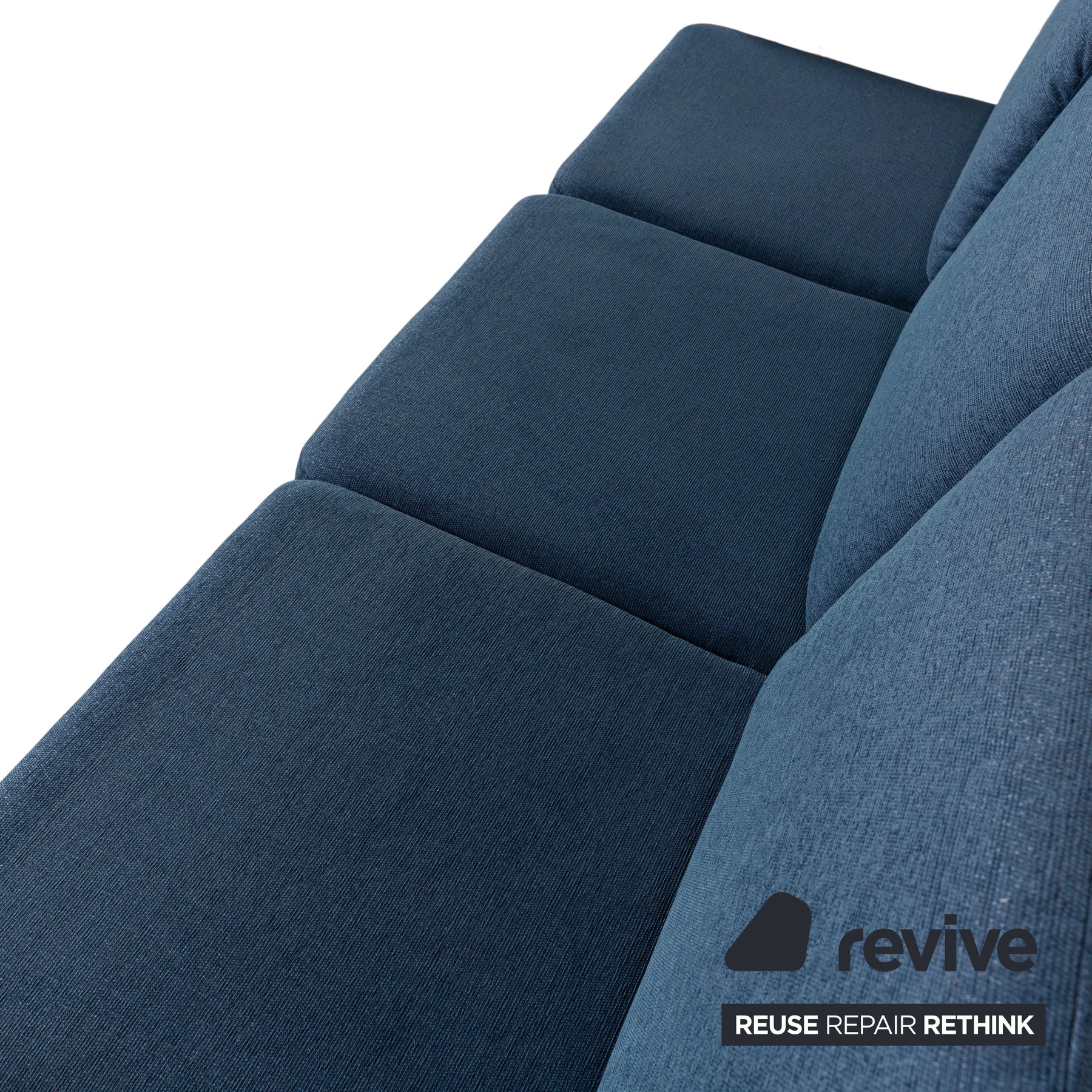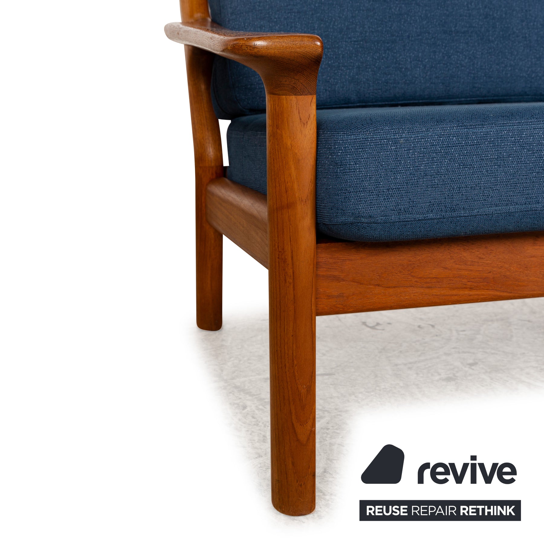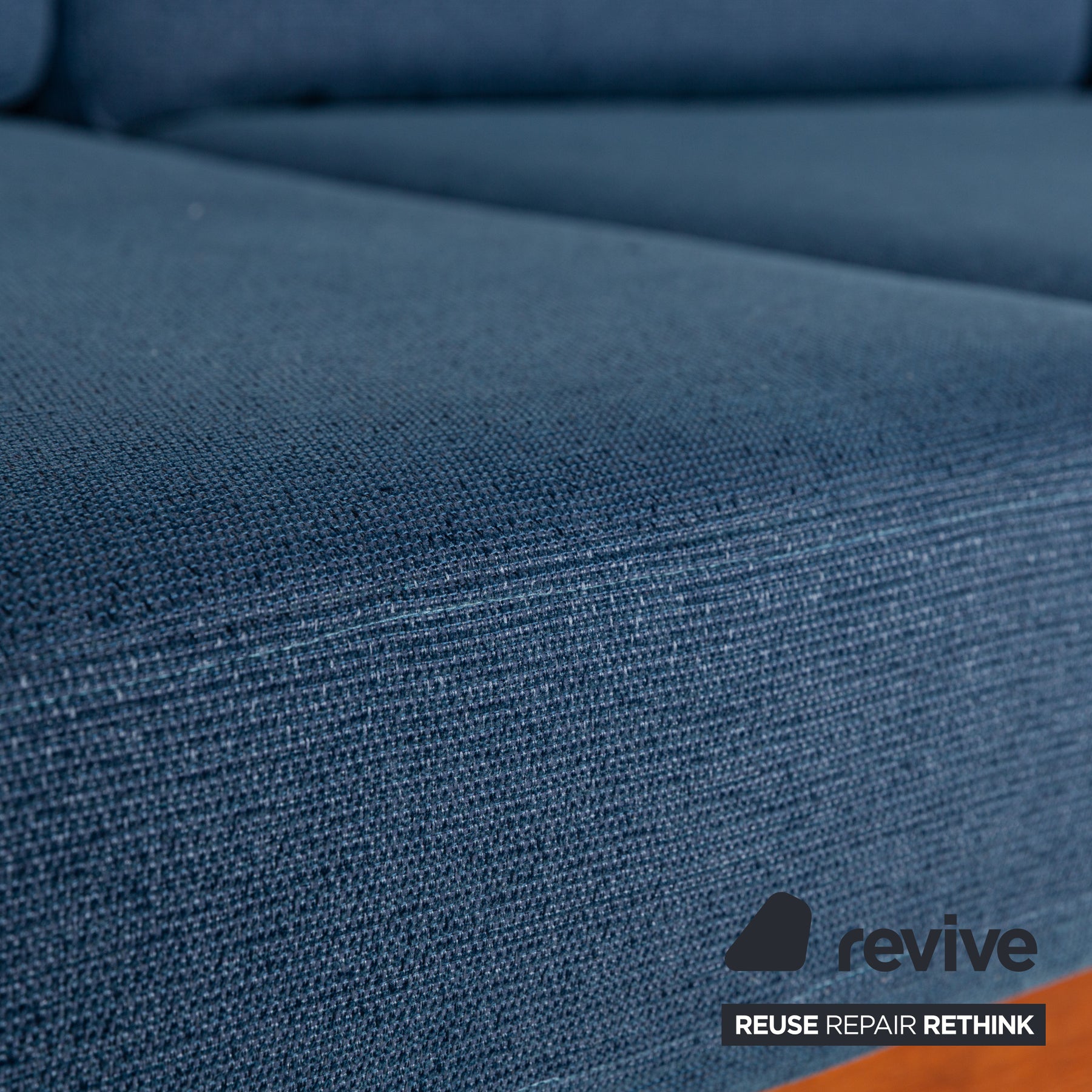 Glostrup Fabric Wood Three-Seater Blue Brown Sofa Couch