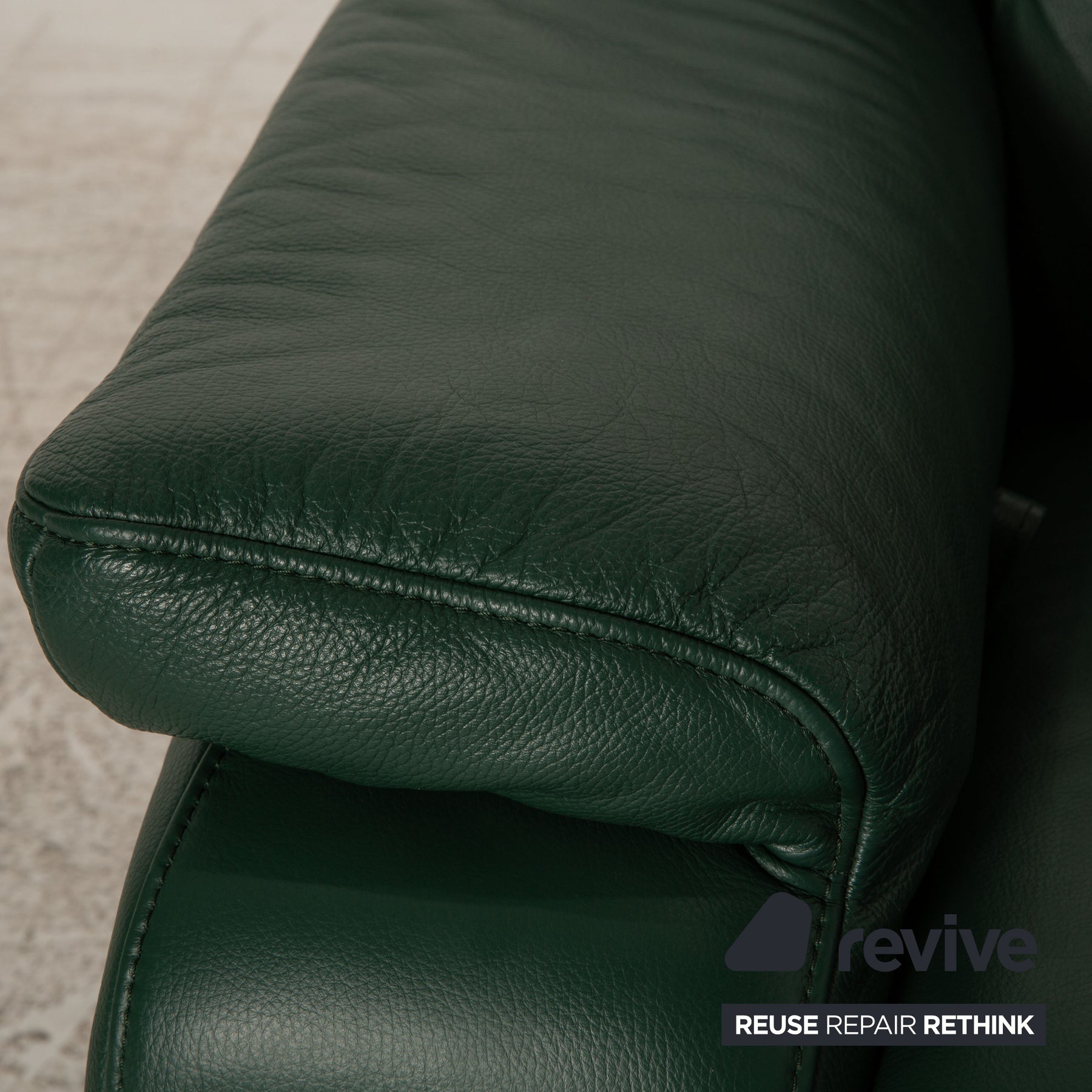 The Hamm armchair by Himolla is covered with green genuine leather and stands on floor-to-ceiling side panels. The timeless, classic design and the comfortable relax function distinguish it.