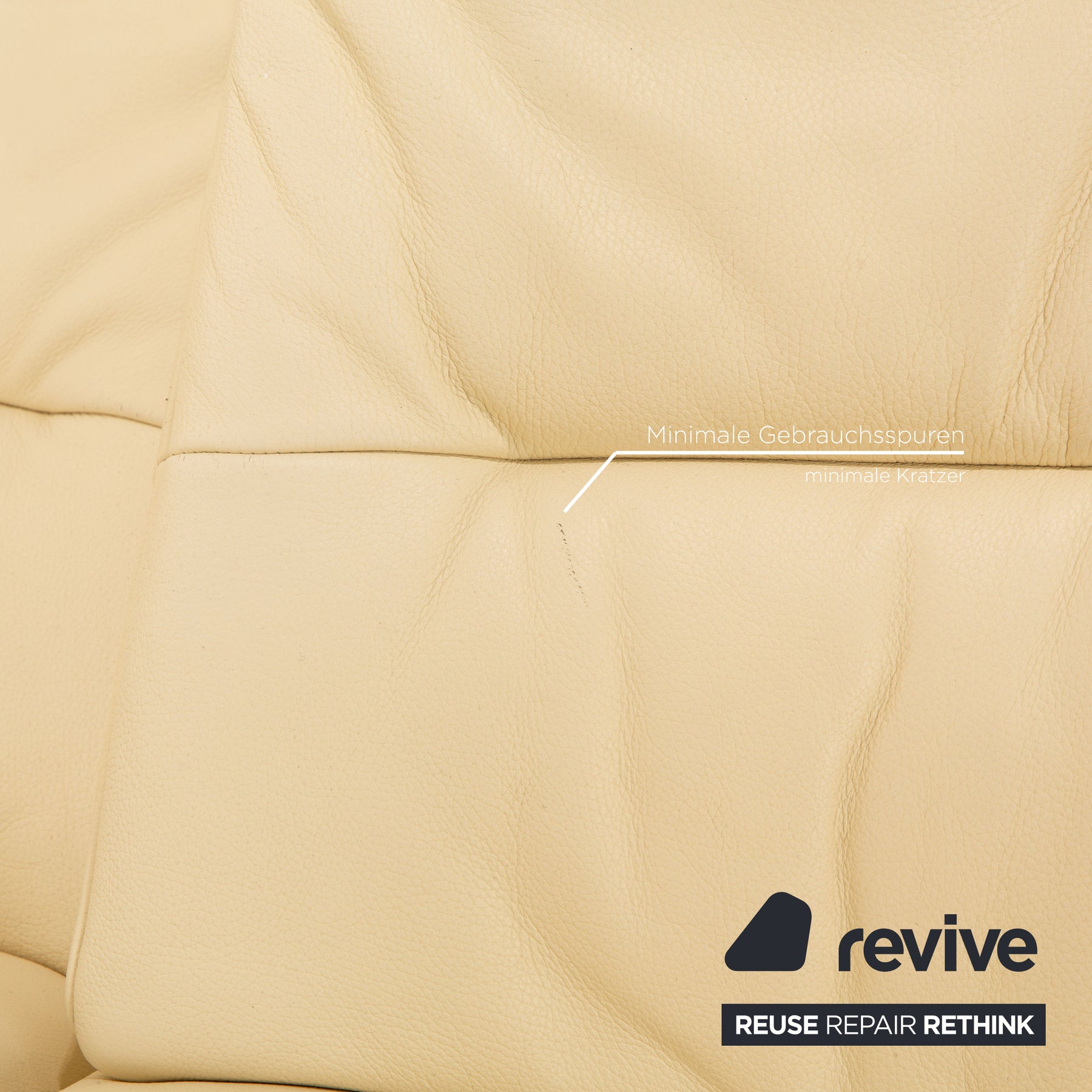 The Himolla sofa is covered in cream-colored genuine leather and stands on small metal feet. The classic, timeless design and the practical relaxation function characterize the corner sofa.
