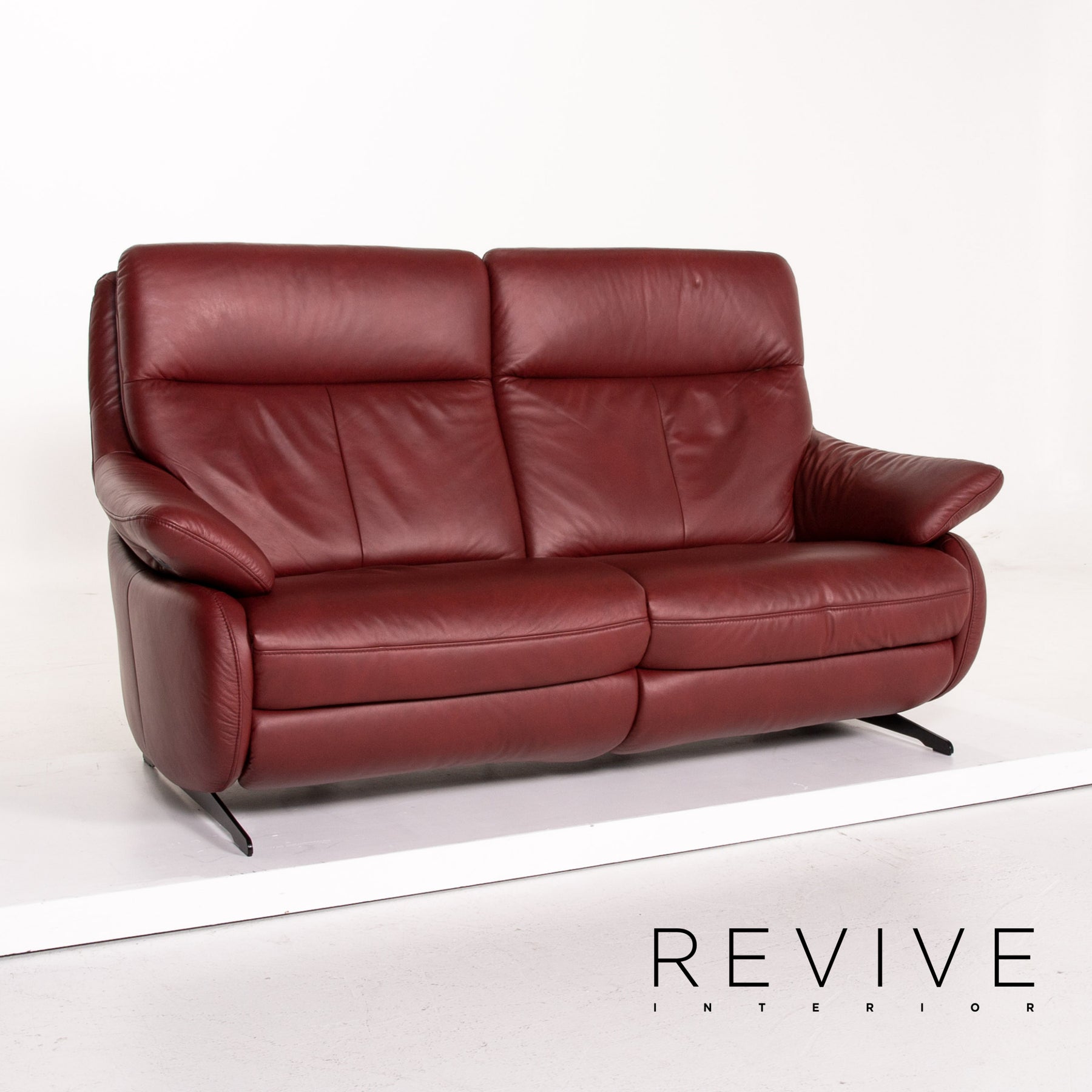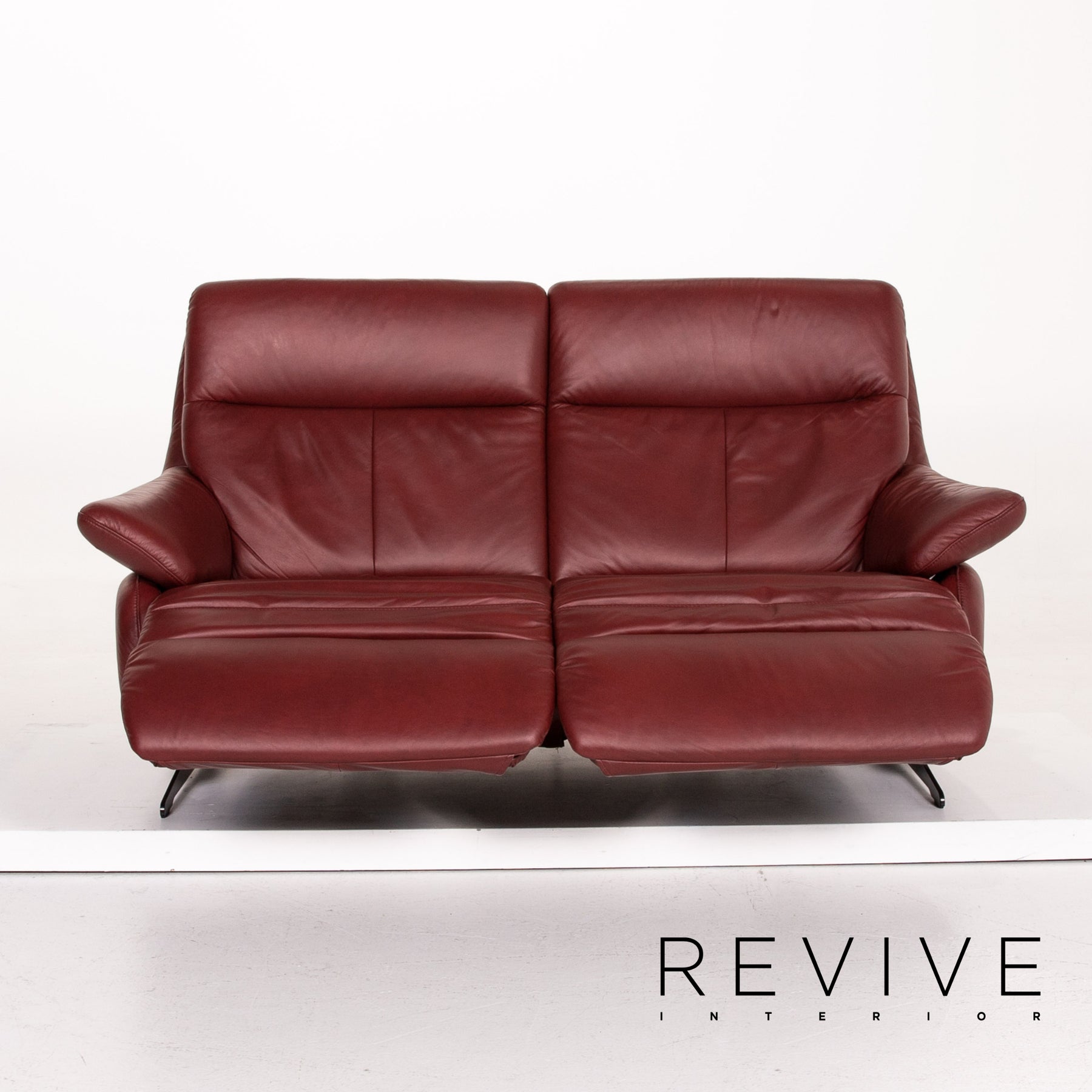 Himolla Leather Sofa Electric Function Red Dark Red Two Seater Relaxation Couch #14357