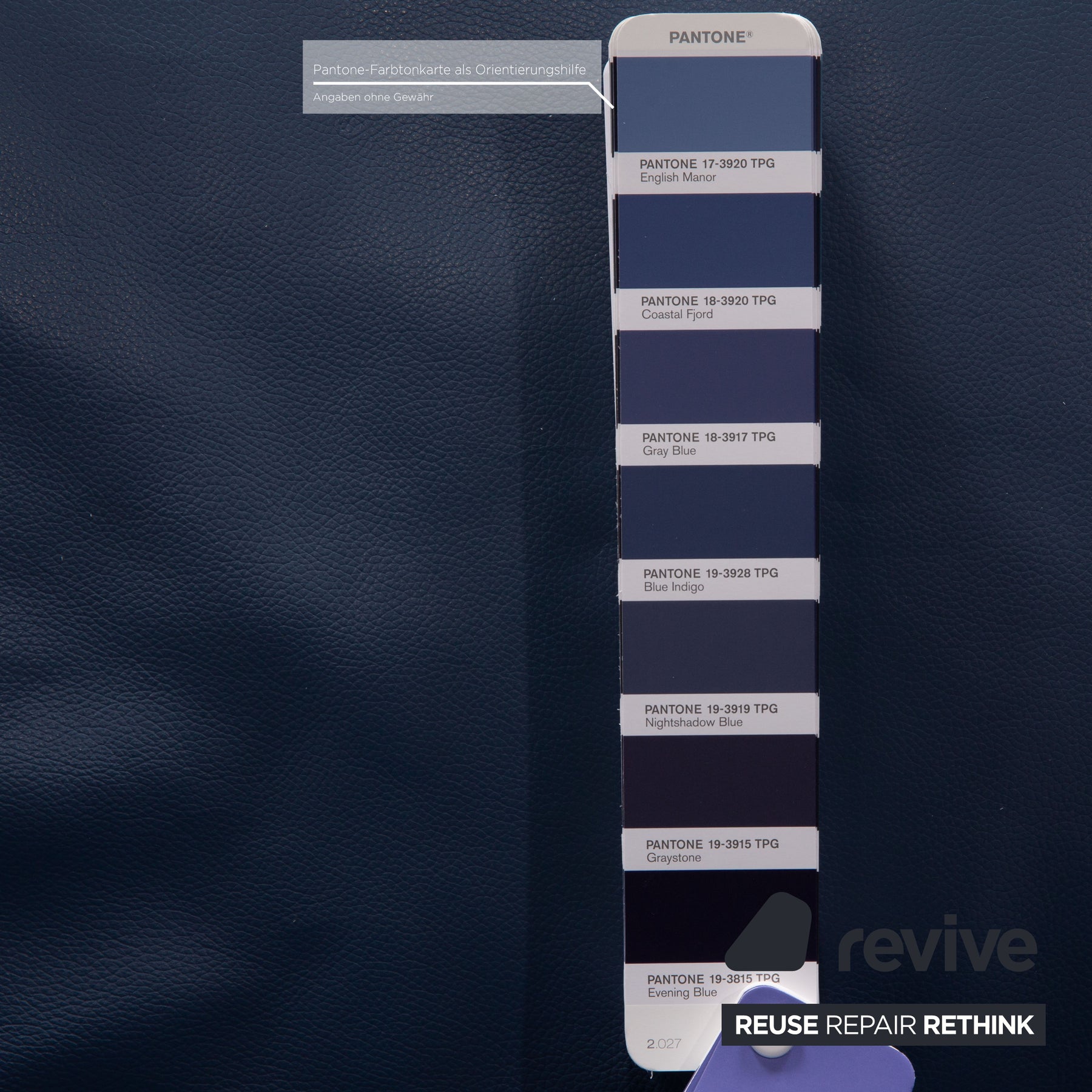 The blue sofa by Himolla is covered with genuine leather and stands on a fine wooden frame. The simple, classic shape and the comfortable relaxation function characterize the two-seater.