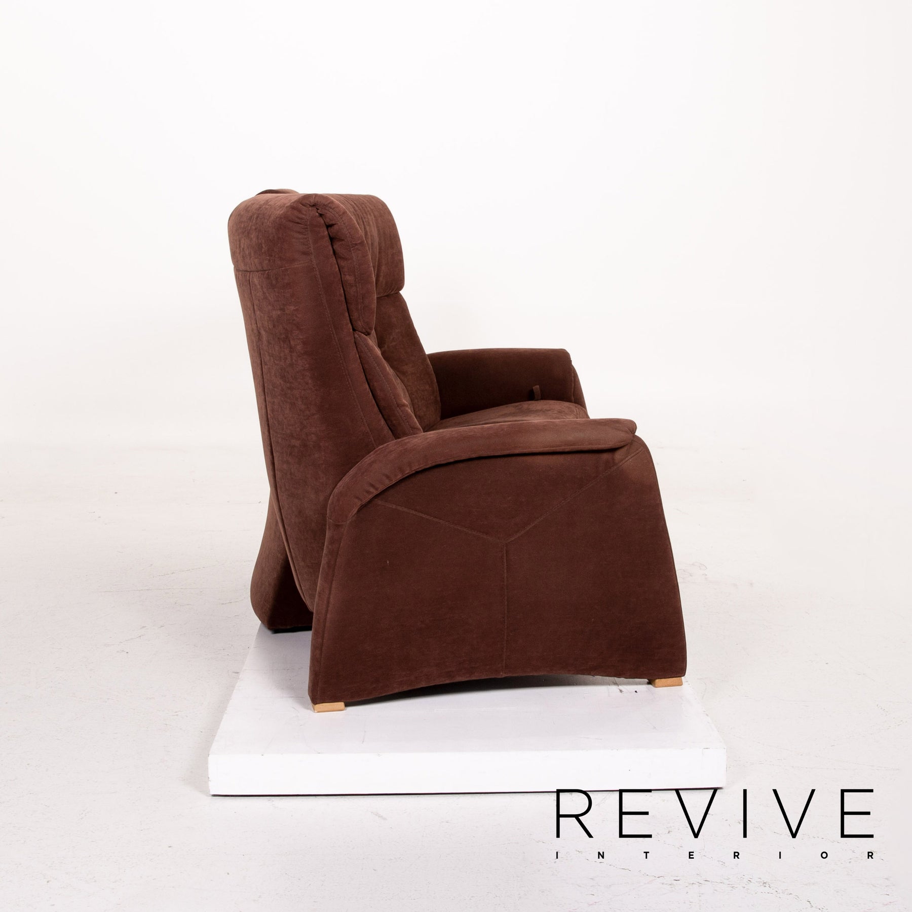 We present you Himolla Trapezoid Alcantara fabric brown three-seater relax function couch # 14973.