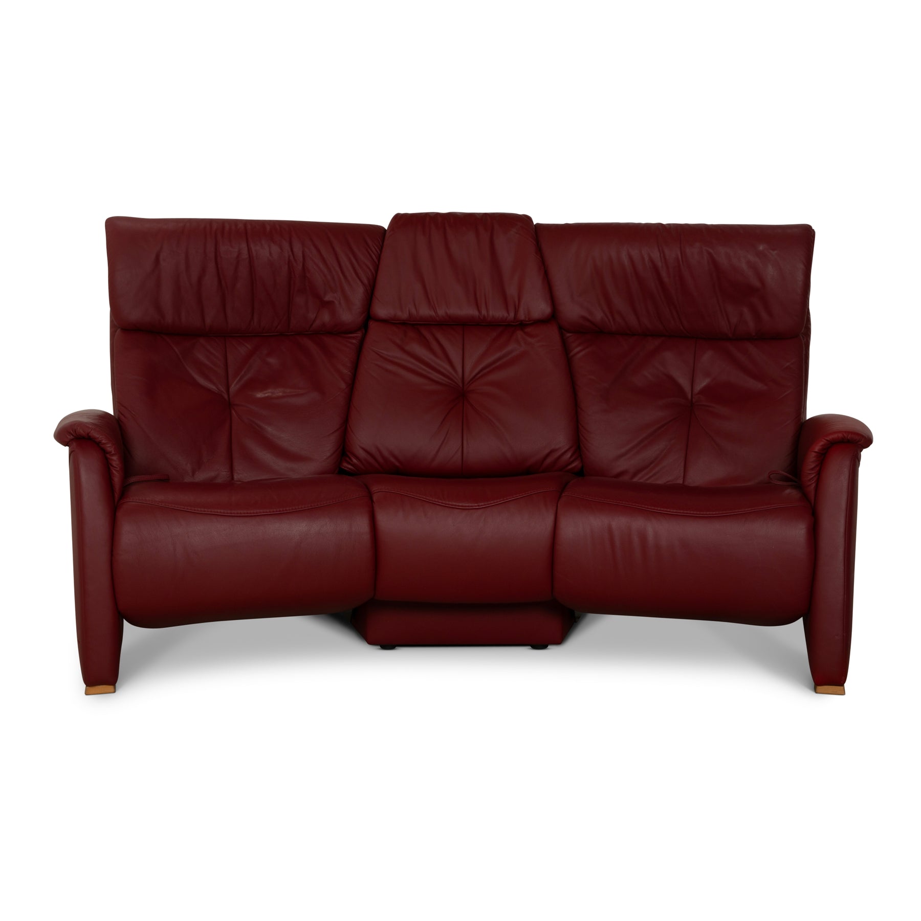 Himolla Trapez Leather Three Seater Red Manual Function Sofa Couch