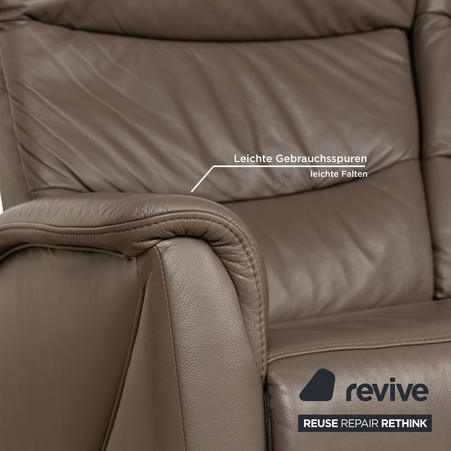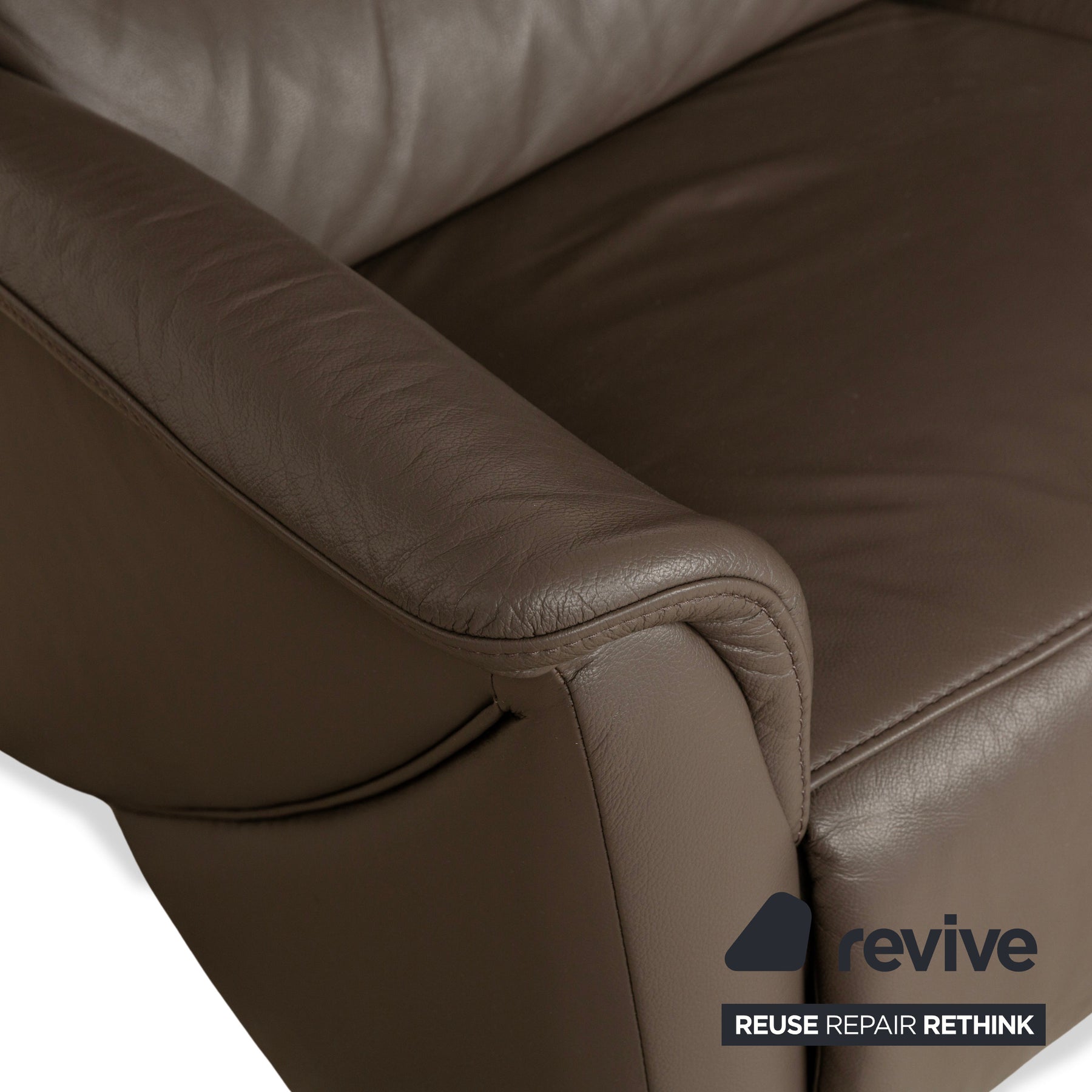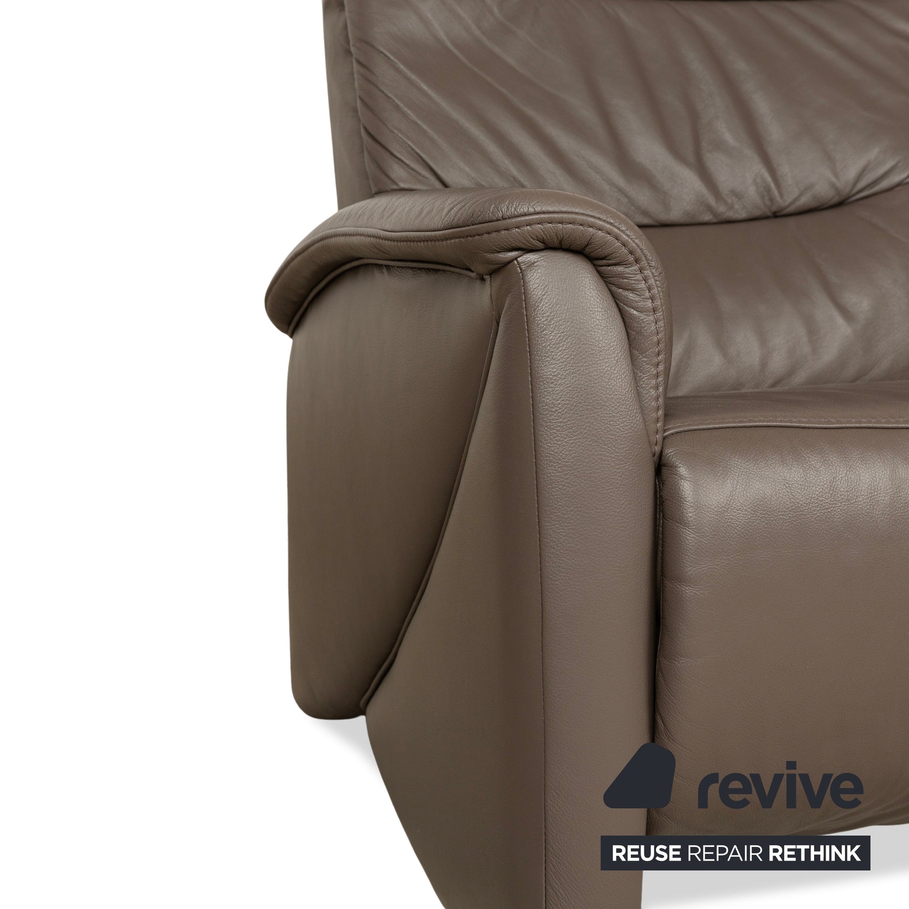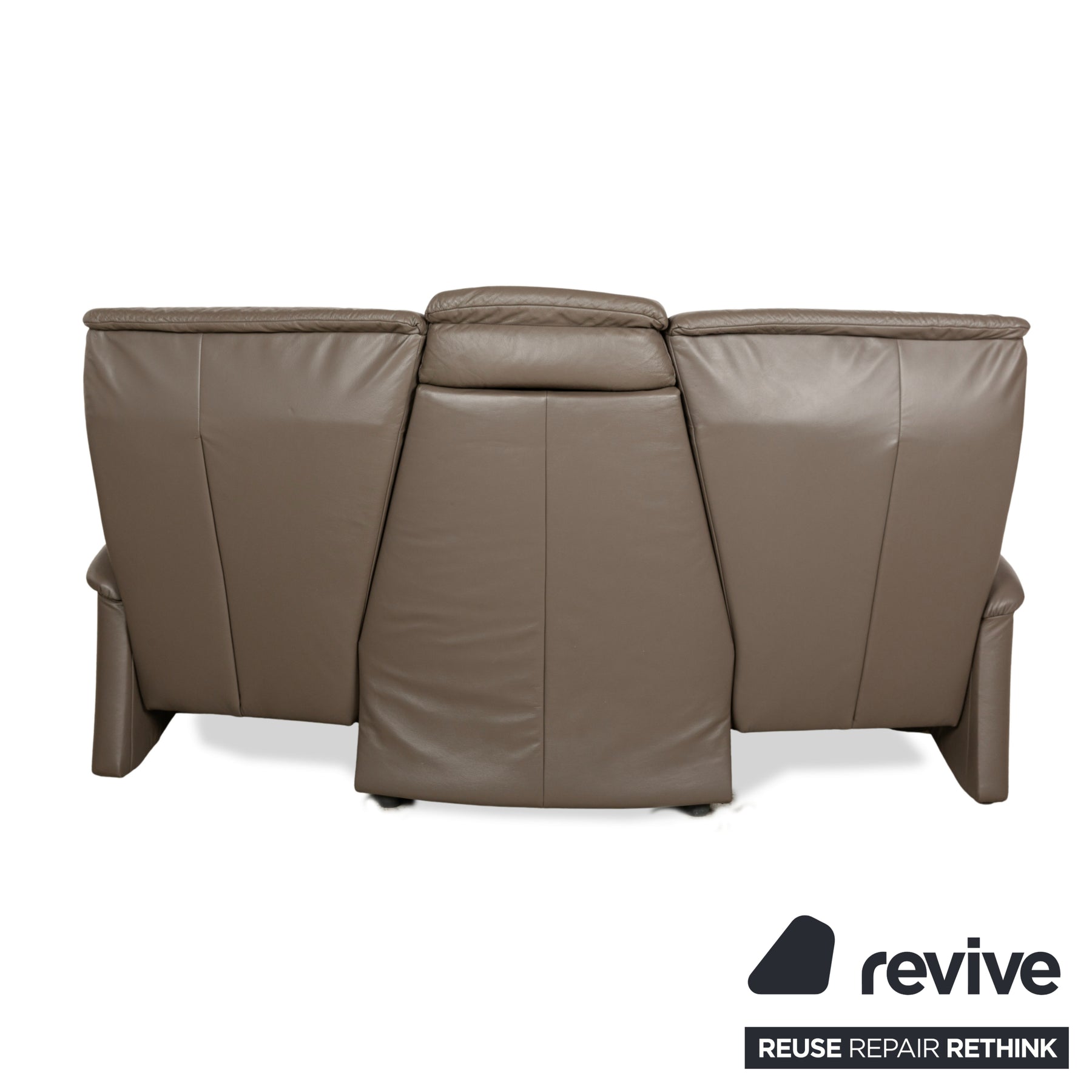Himolla Trapez Leather Three-Seater Sofa Couch Brown Taupe Grey Manual Function