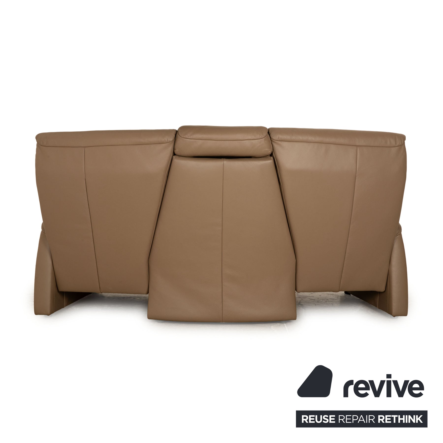 Himolla Trapeze Leather Three Seater Taupe Brown Manual Function Sofa Couch