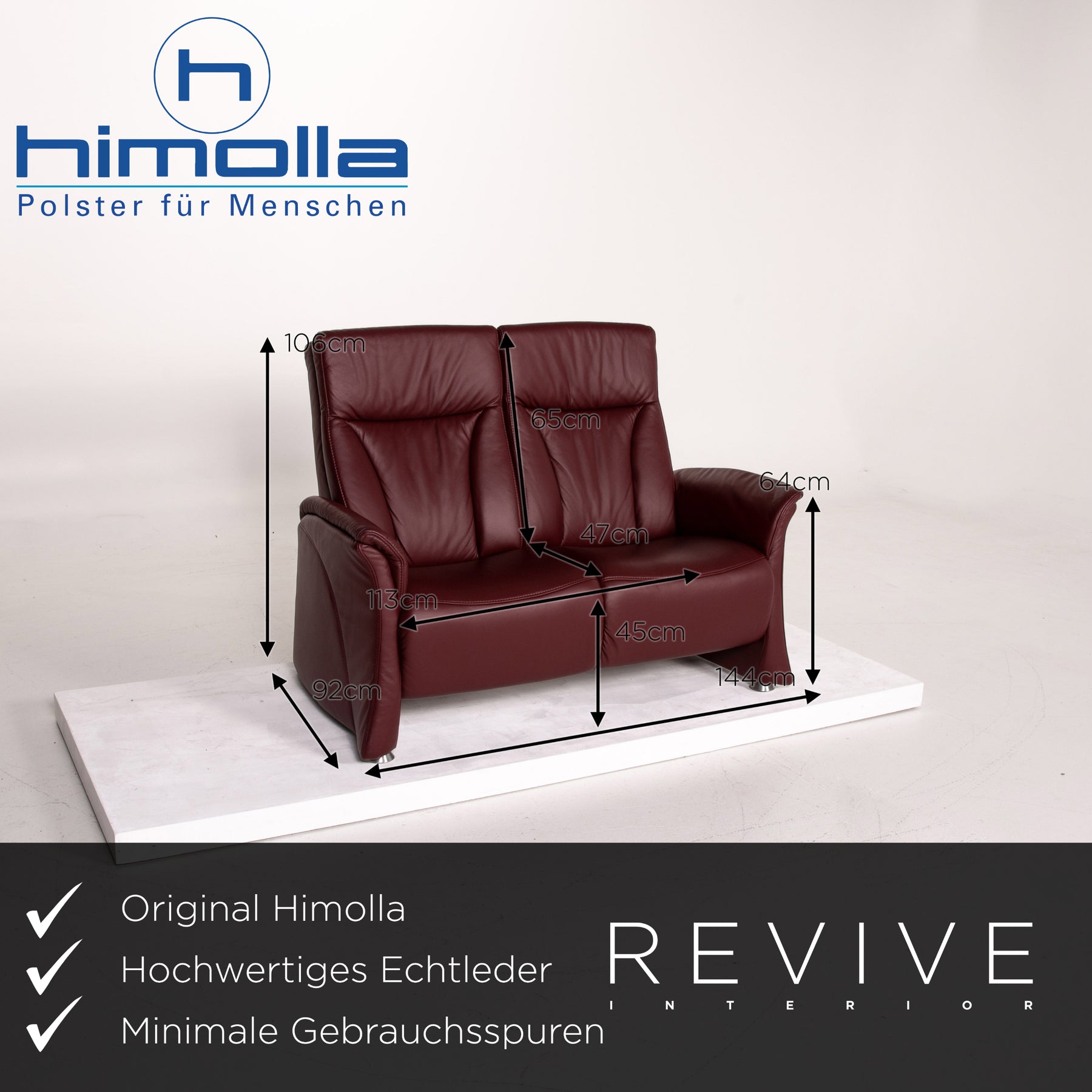 Himolla trapeze leather sofa set electric wine red red 1x three-seater 1x two-seater function relax function home cinema #14141