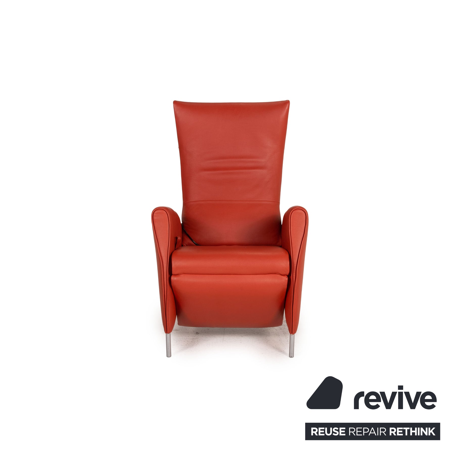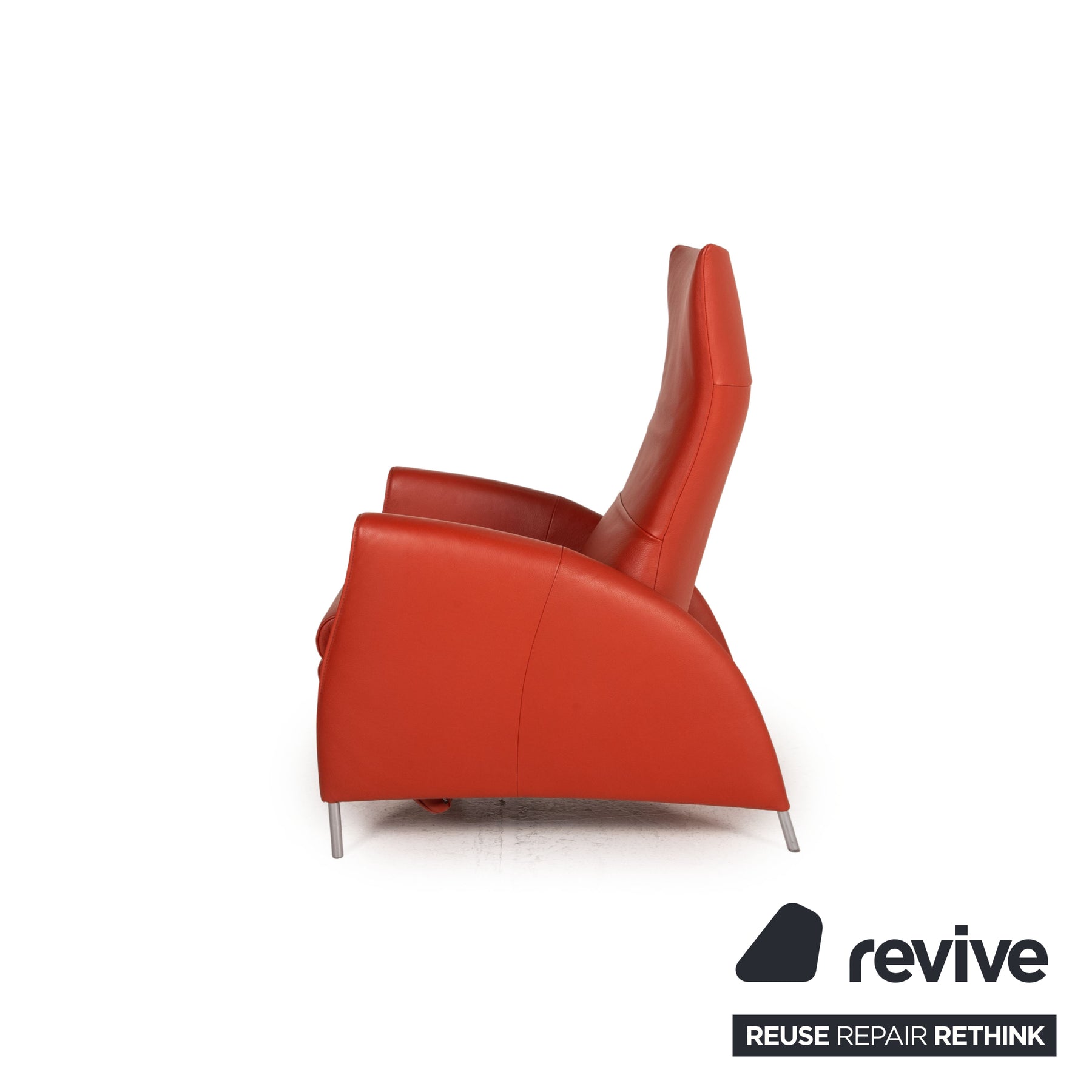 Jori's JR 3490 recliner is upholstered in red genuine leather and stands on simple, silver feet. It convinces with its comfortable relax function, with which the backrest can be adjusted and the footrest can be opened.