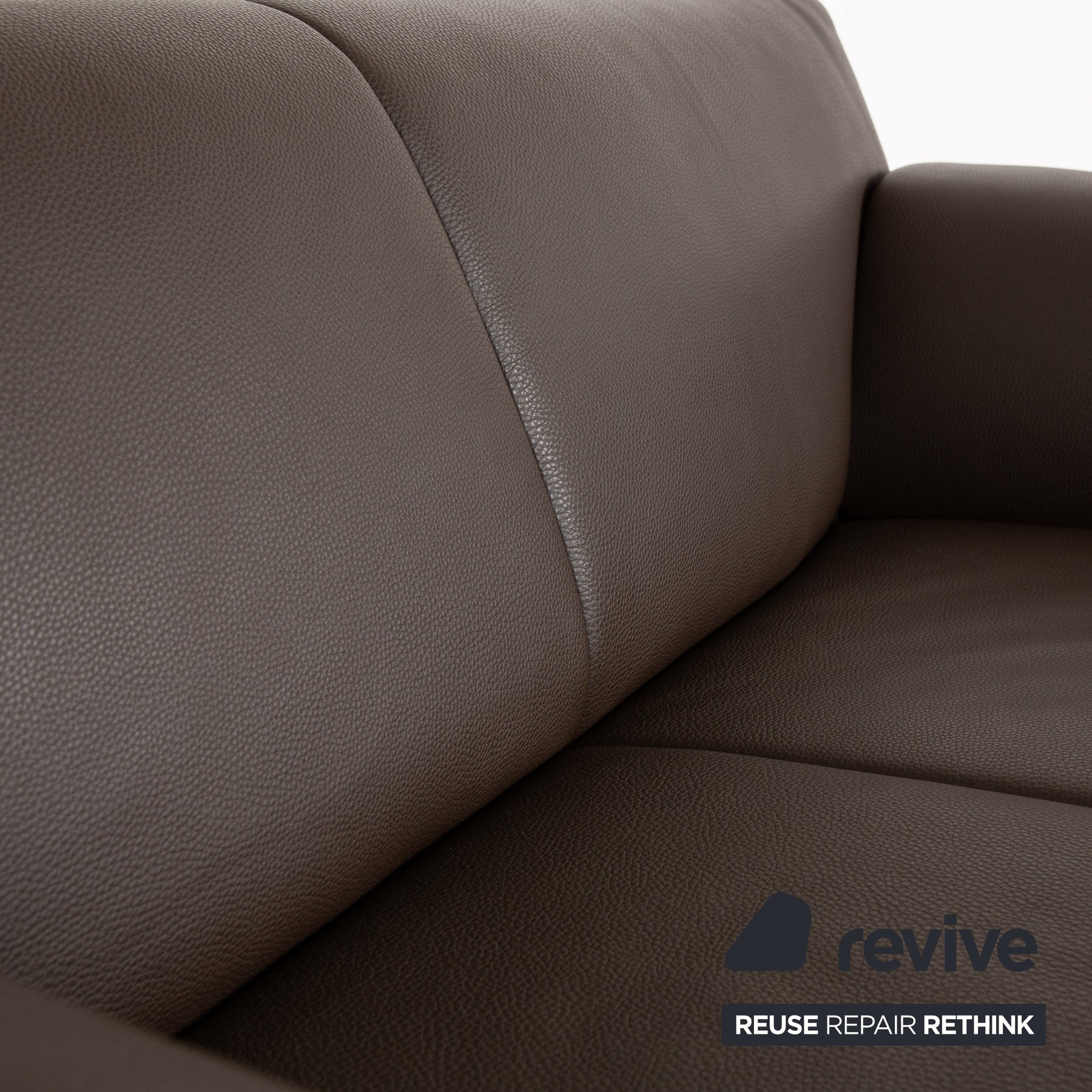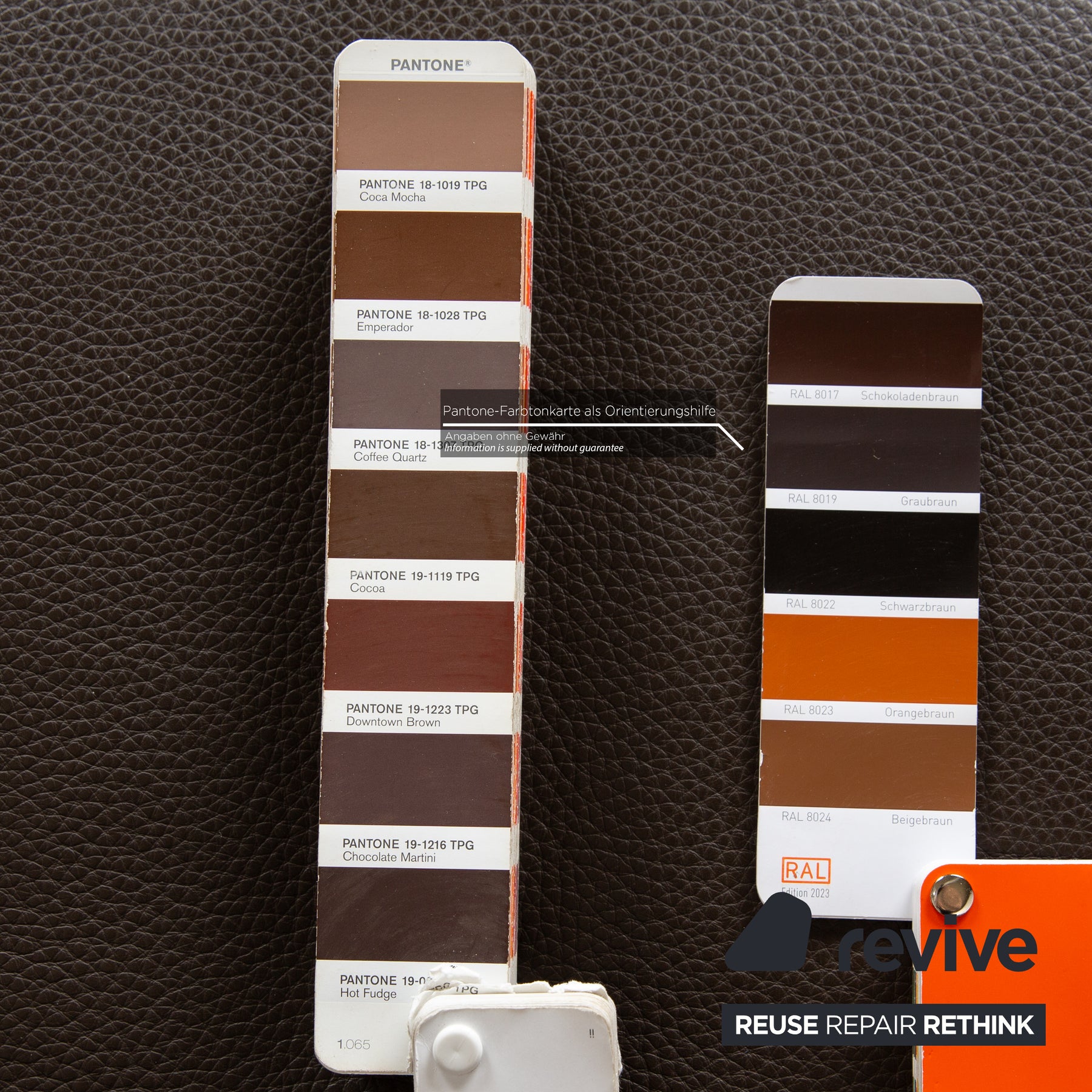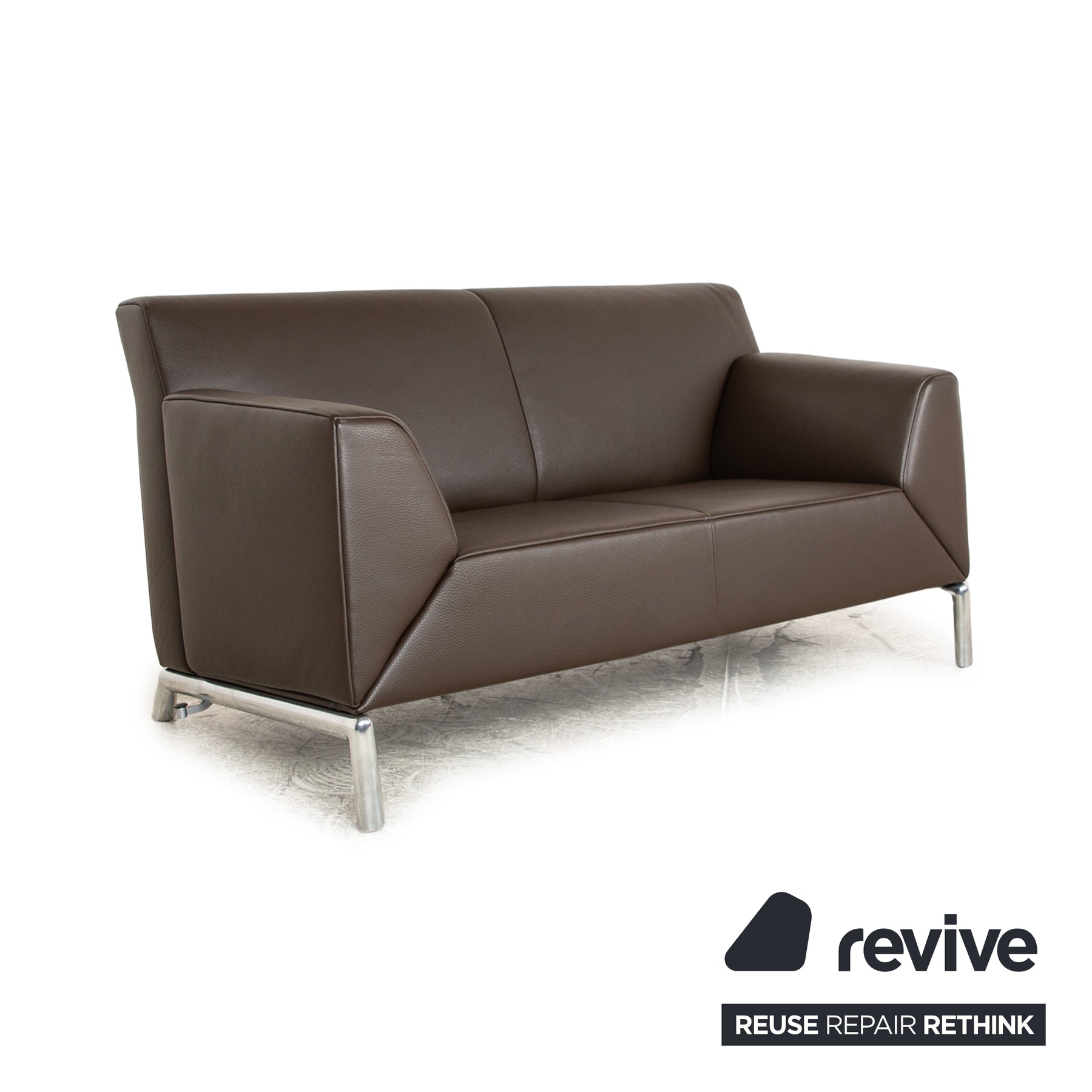 The JR-9700 sofa from Jori is covered in brown genuine leather and stands on metal feet. The three-seater impresses with its timeless design and angular, straight-lined look. The armrests can be adjusted, so the seating area can be enlarged.