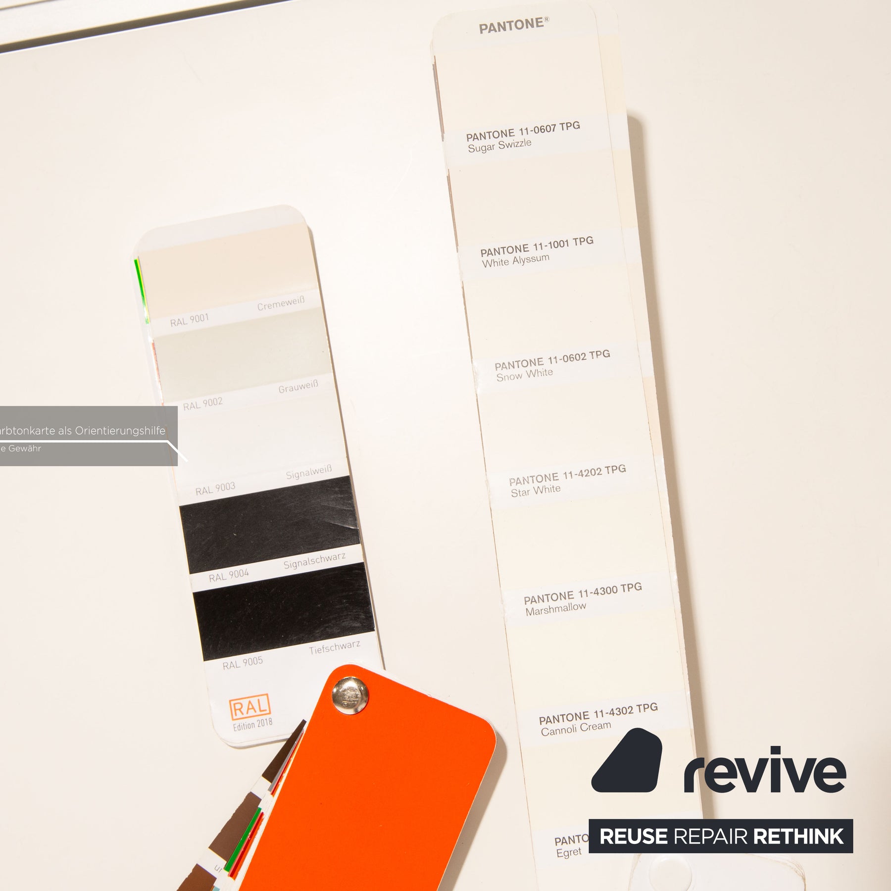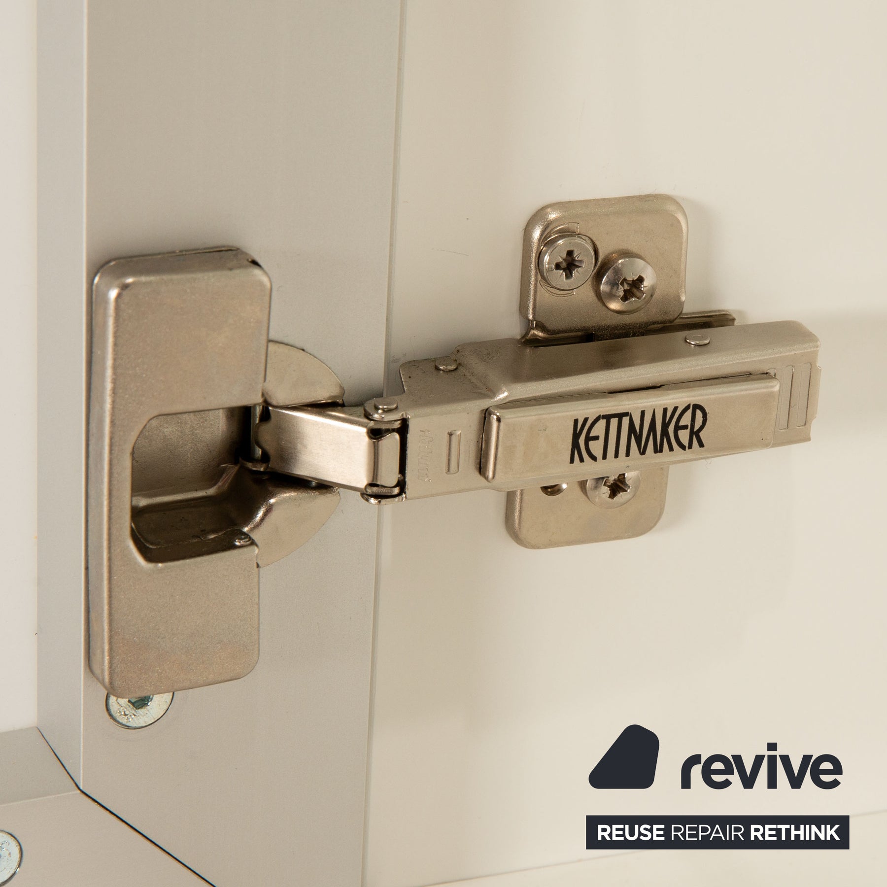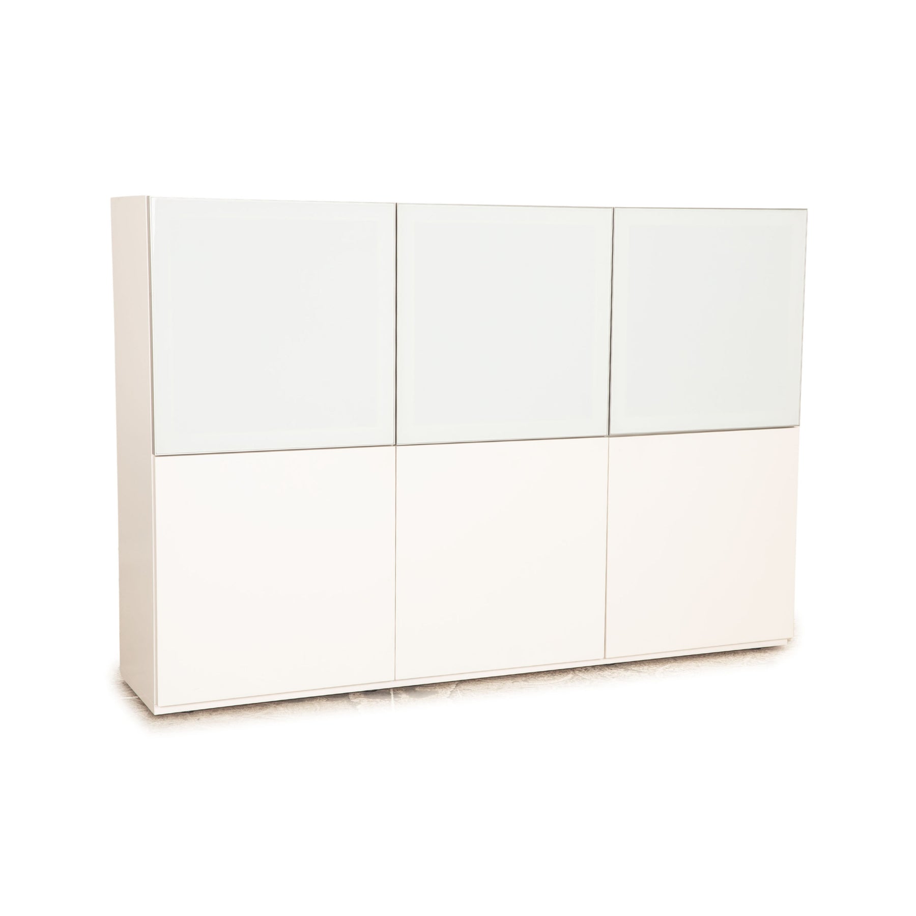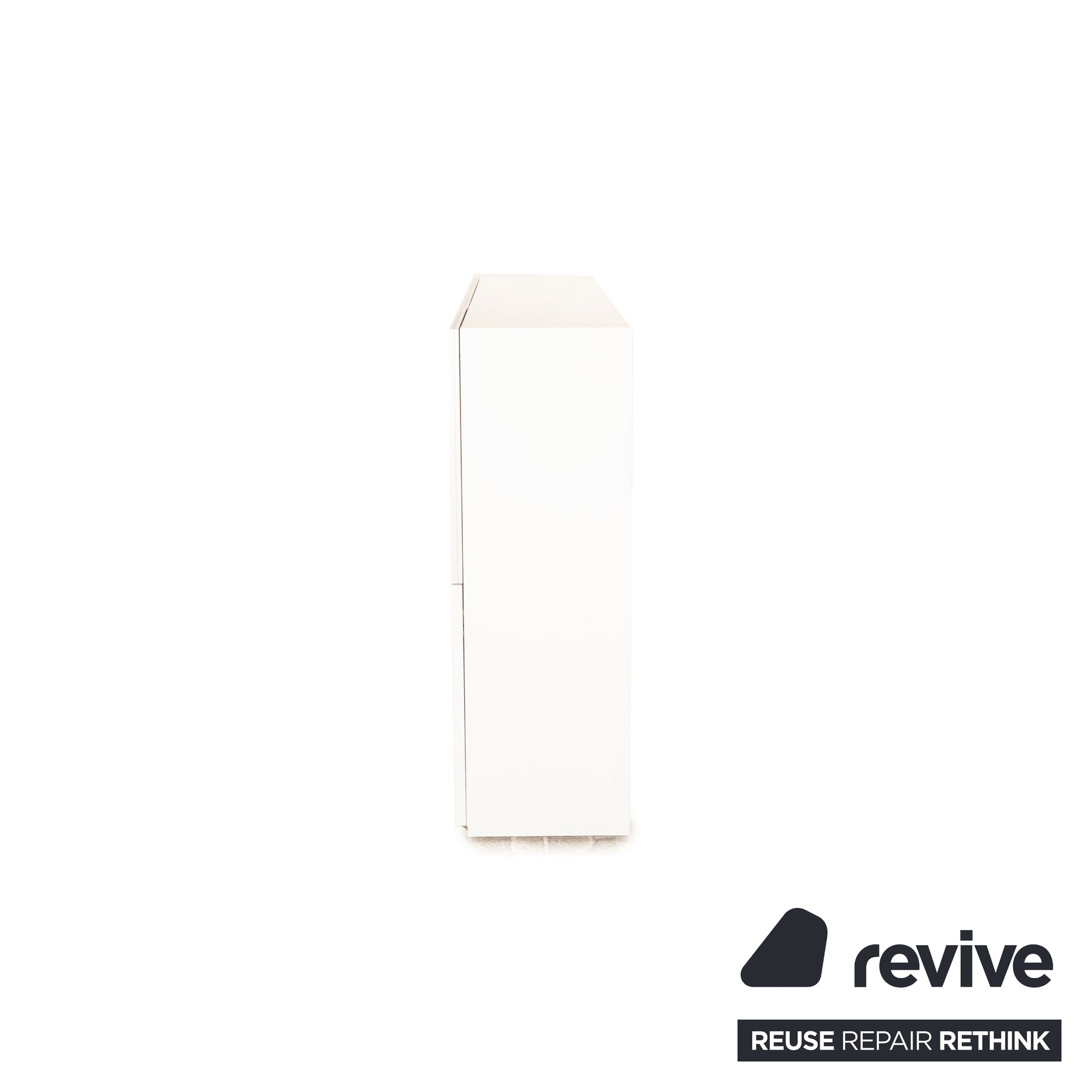 The Arca Plan sideboard from Kettnaker is made of white wood and is floor-level. The timeless, angular design sets it apart.