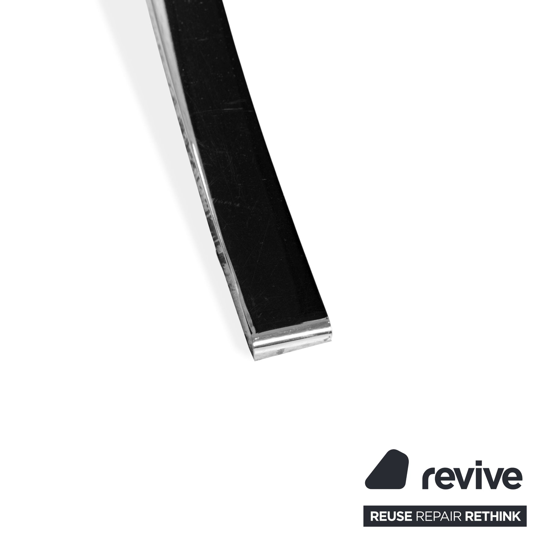 The Barcelona stool by Knoll International is covered in black genuine leather and stands on metal feet. It impresses with its simple, timeless look and rounded edges.