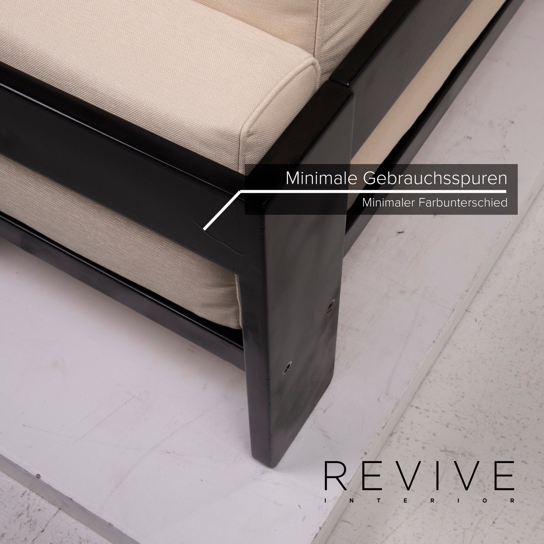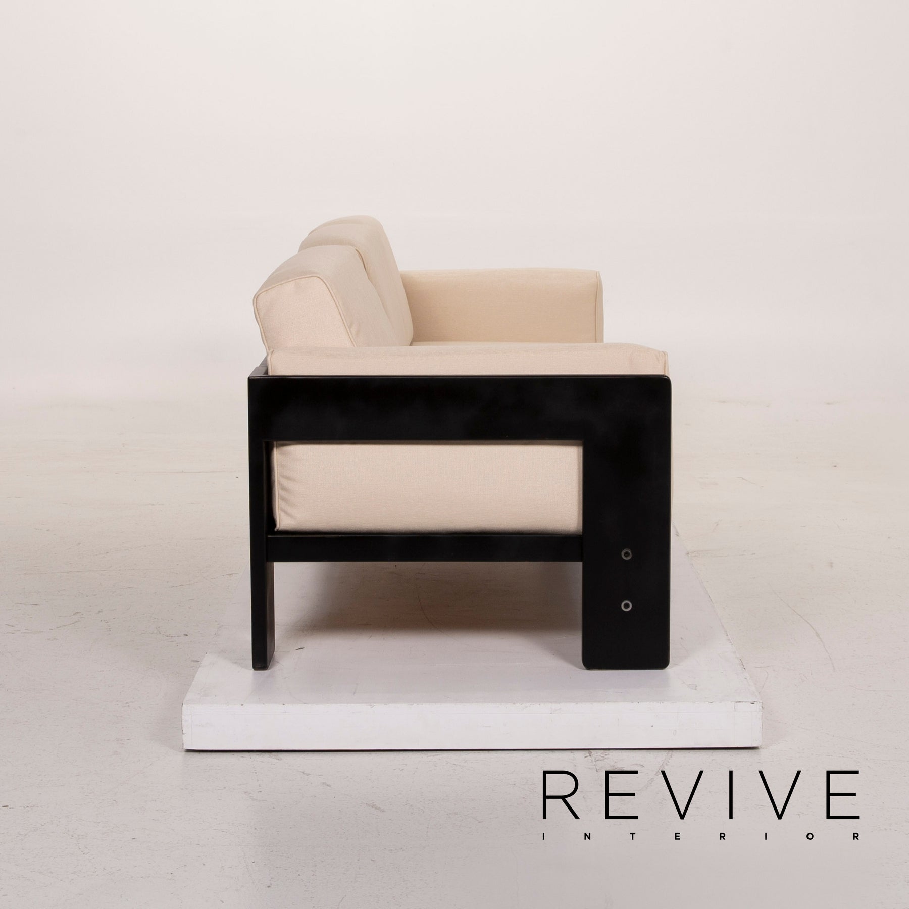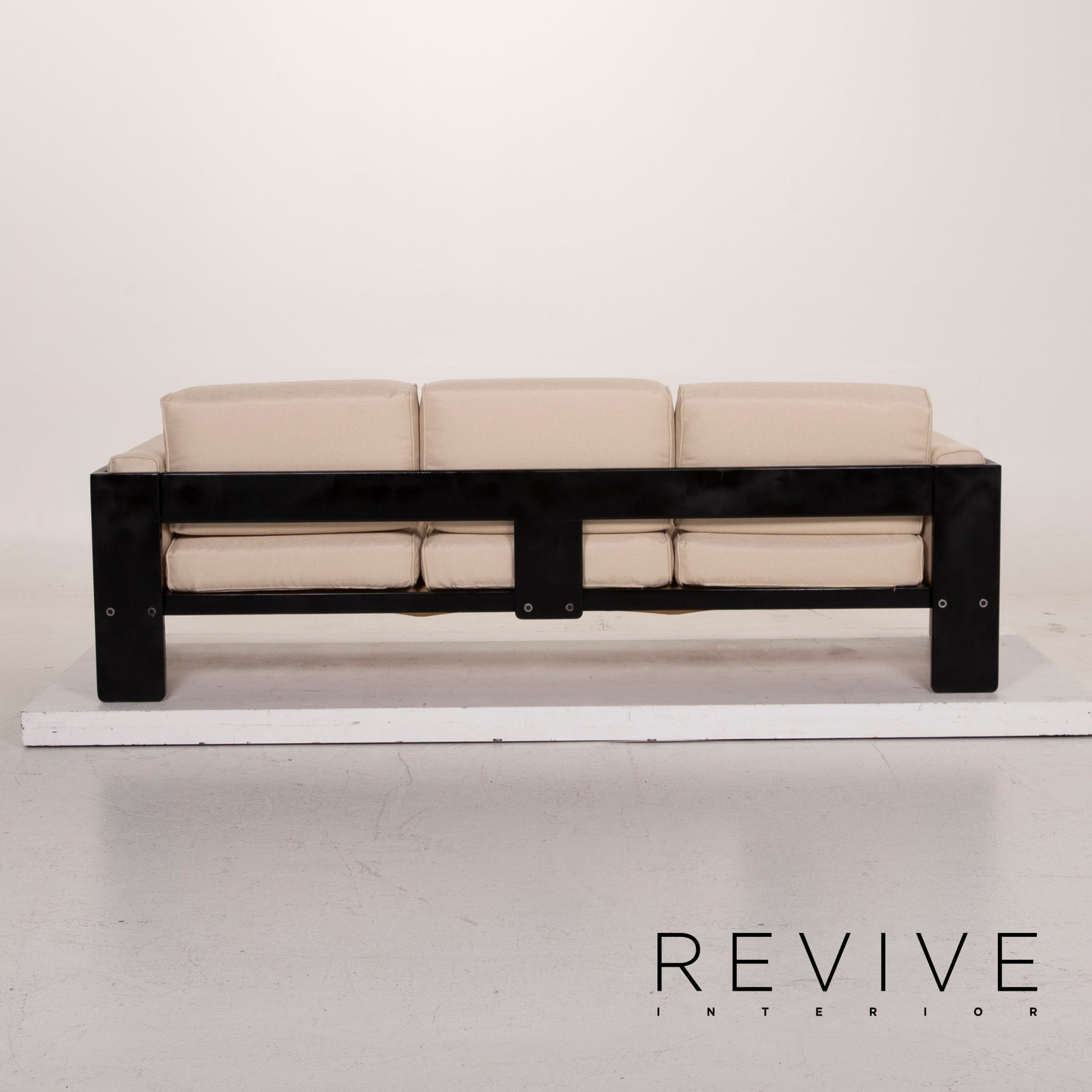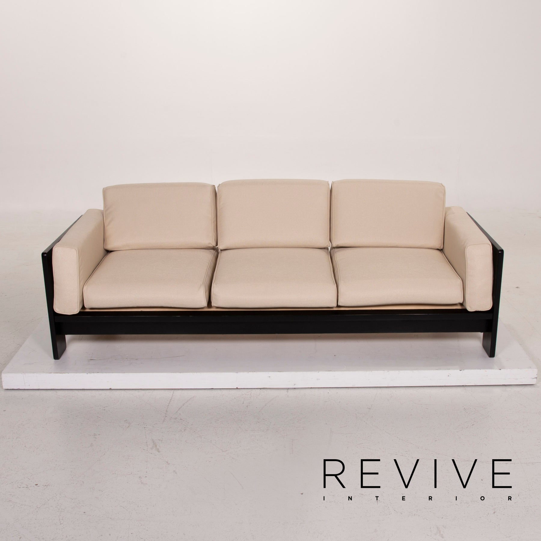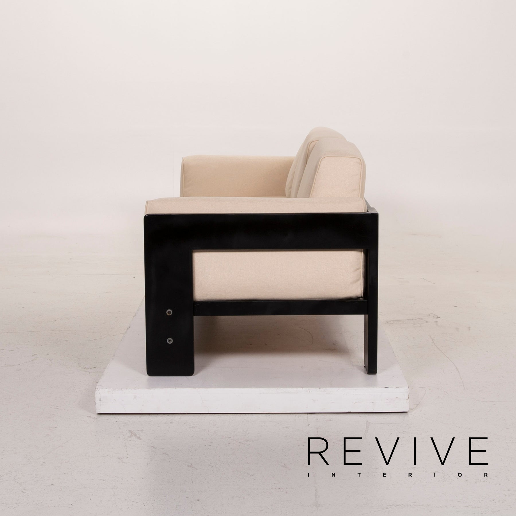 The elegant Bastiano sofa by Knoll International impresses with strong but successful contrasts. The new fabric cover in cream contrasts with the dark wood, the straight frame with the soft upholstery.