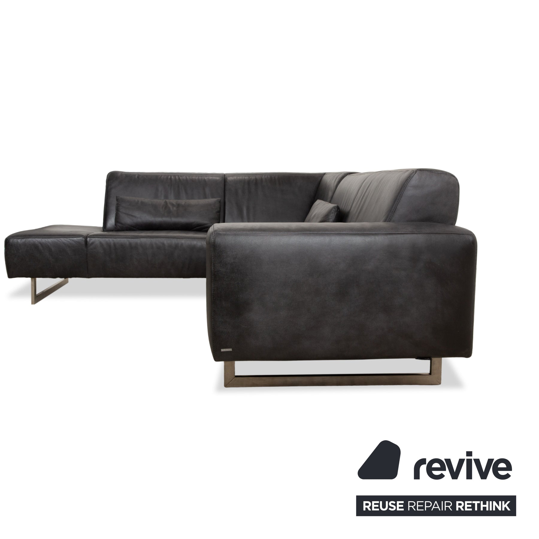 Koinor Galant Leather Corner Sofa Anthracite Dark Grey Slate Sofa Couch