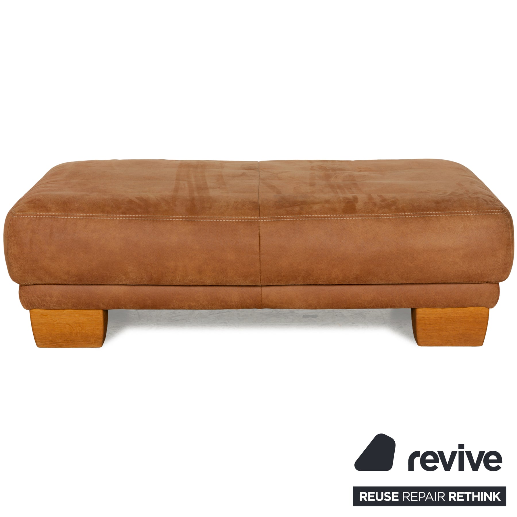 The Soul 7135 stool from K+W Polstermöbel is upholstered in light brown fabric and stands on wooden feet in a similar shade. It features a classic design and generous upholstery, making it an elegant addition to any modern living room.