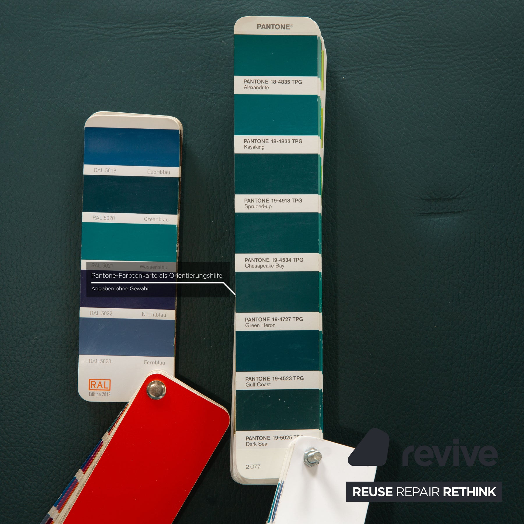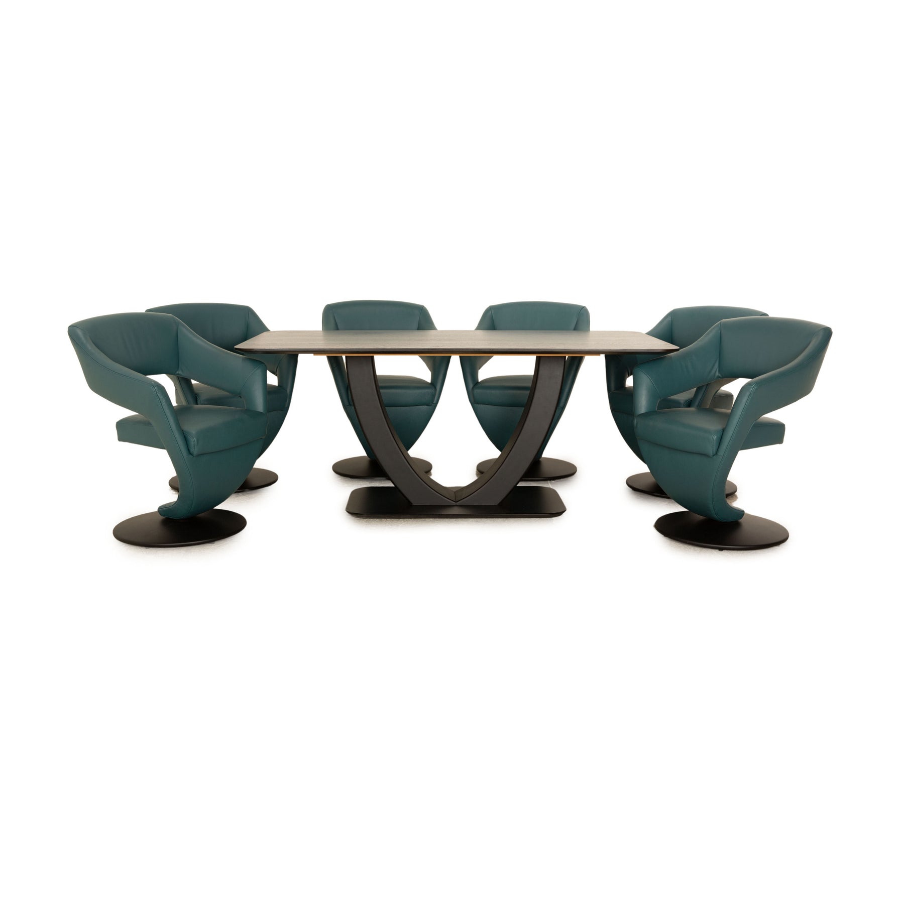K+W upholstered furniture Variano Malito leather chair set blue petrol dining table manual function dining room swivel function