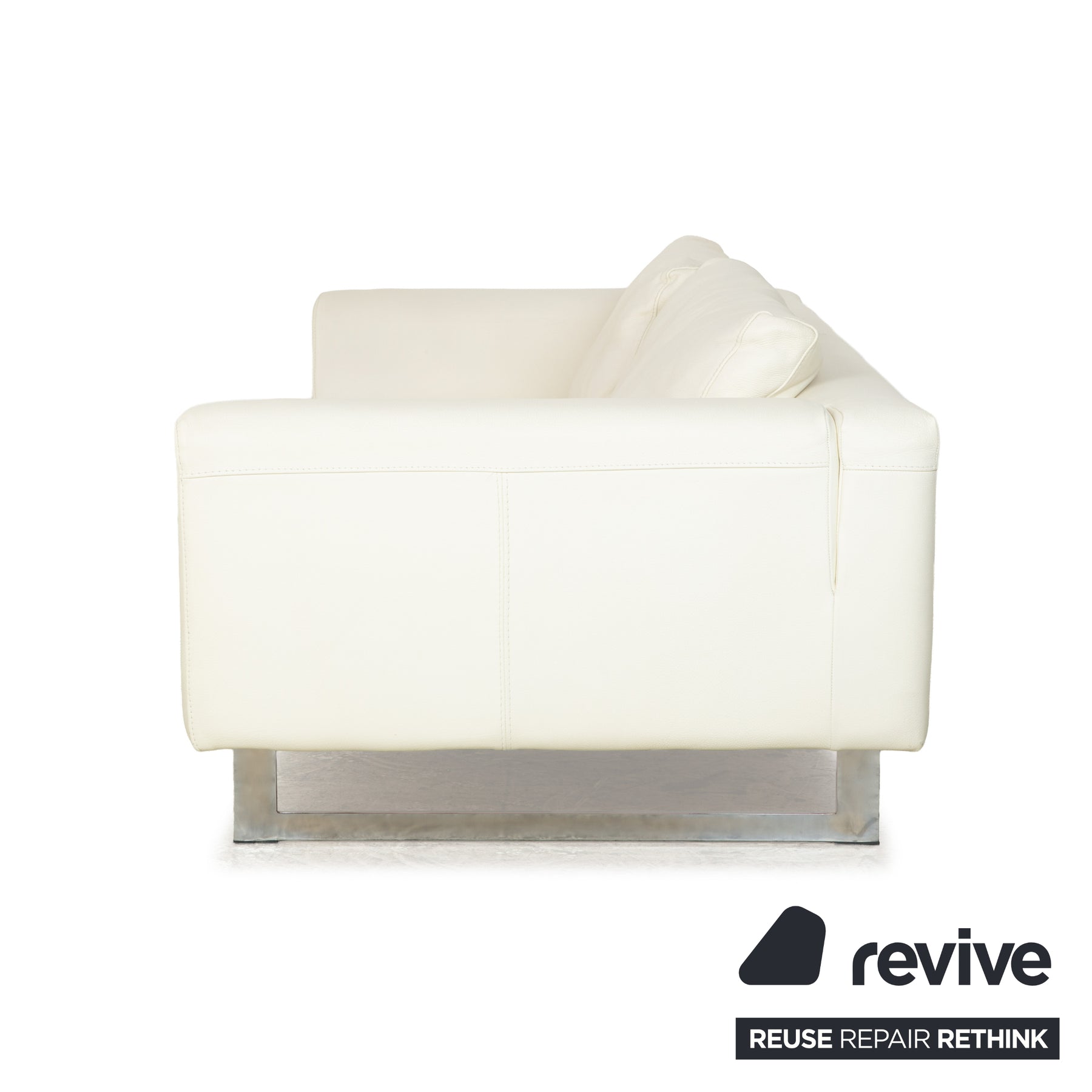 The sofa from La Nuova Casa is upholstered in cream-white leather and rests on narrow metal runners. It is characterized by its minimalist and modern design – wide, sloping armrests, a slim body, and generous upholstery. This three-seater simply invites you to linger, and its neutral color makes it easy to combine with other furnishings.