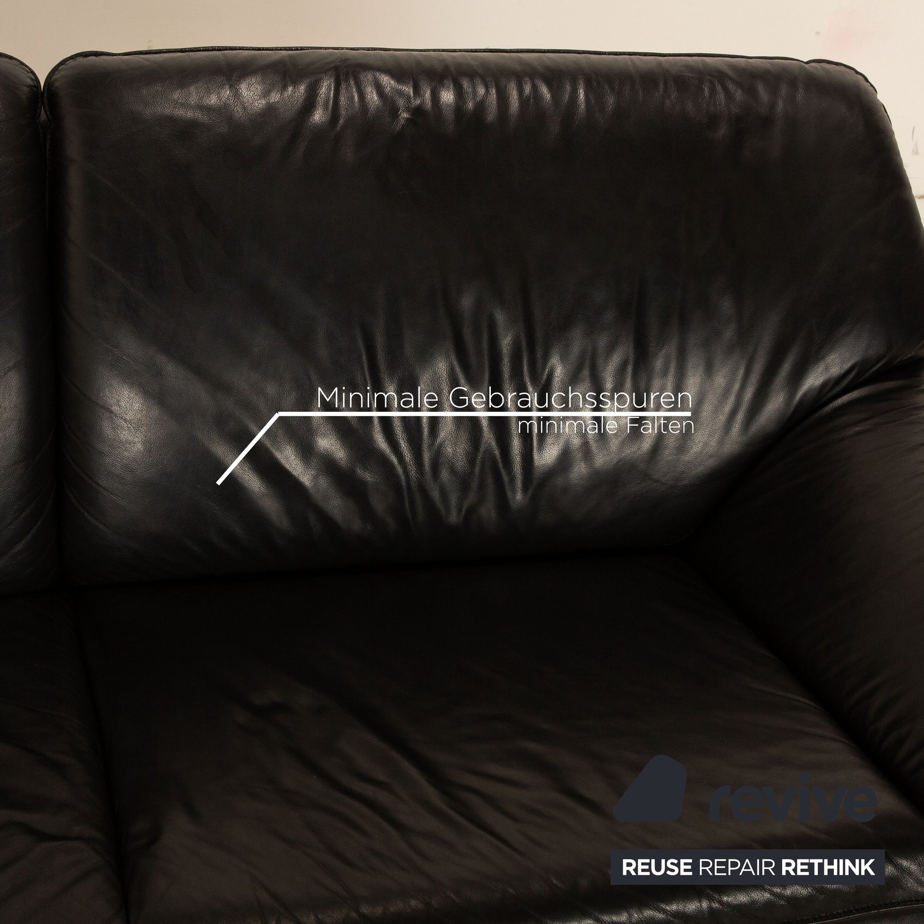 The three-seater Atlanta by Laauser is covered in black genuine leather and stands on inconspicuous feet. It is characterized by its classic design and simple, timeless appearance.