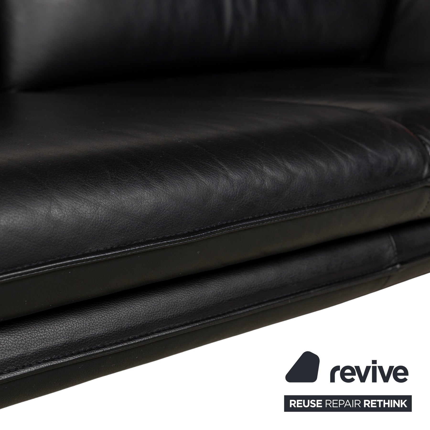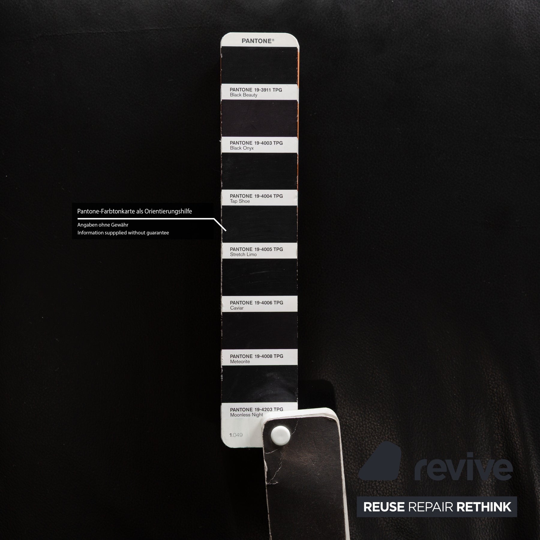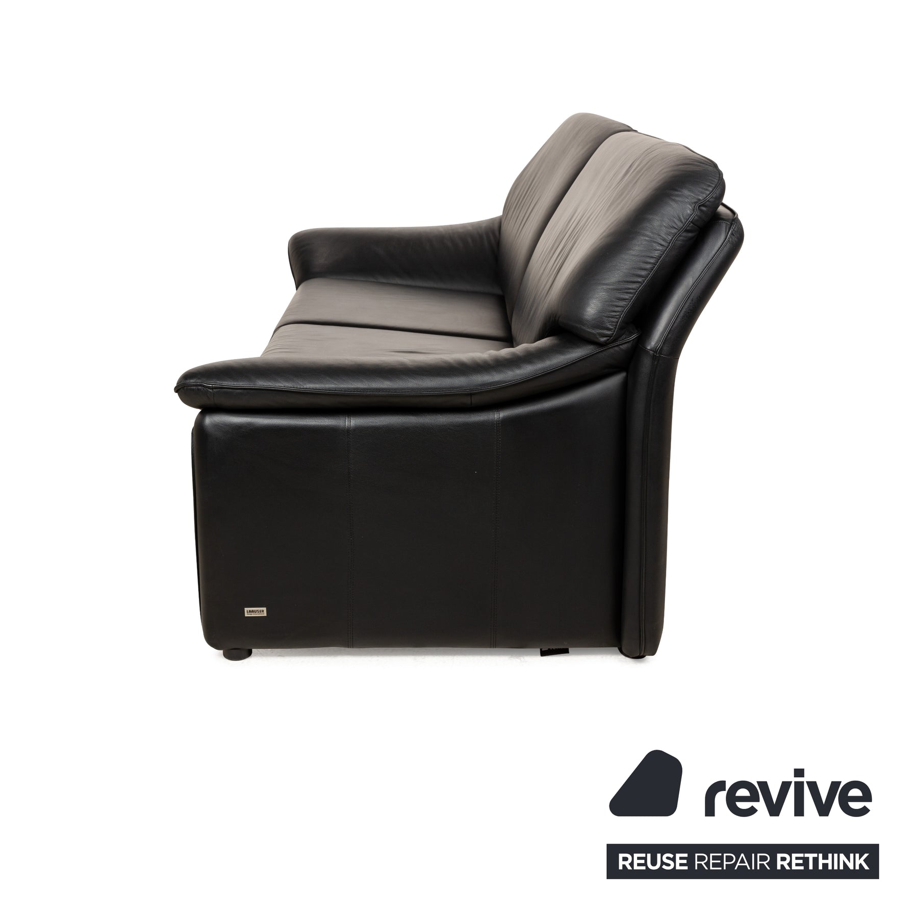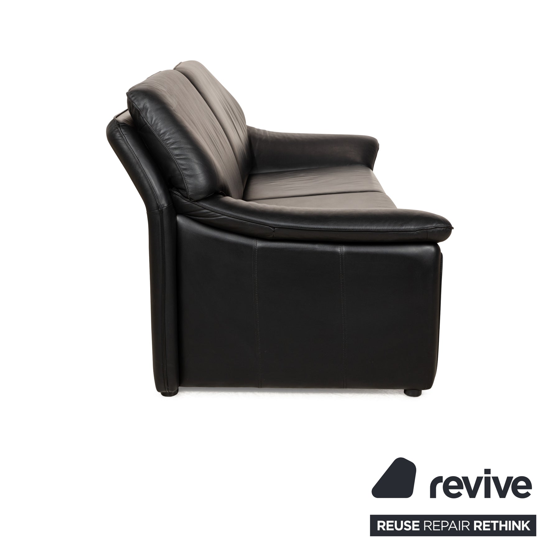 The Atlanta three-seater from Laauser is upholstered in black leather and stands on floor-to-ceiling sides. It is characterized by its classic design and simple, timeless appearance.