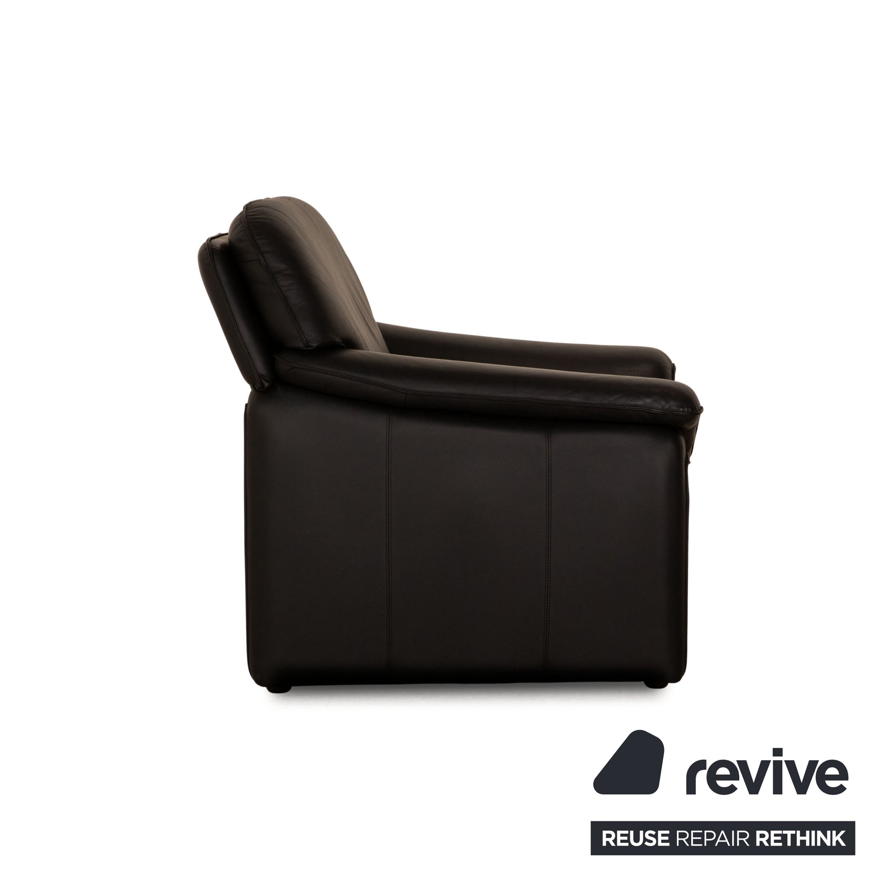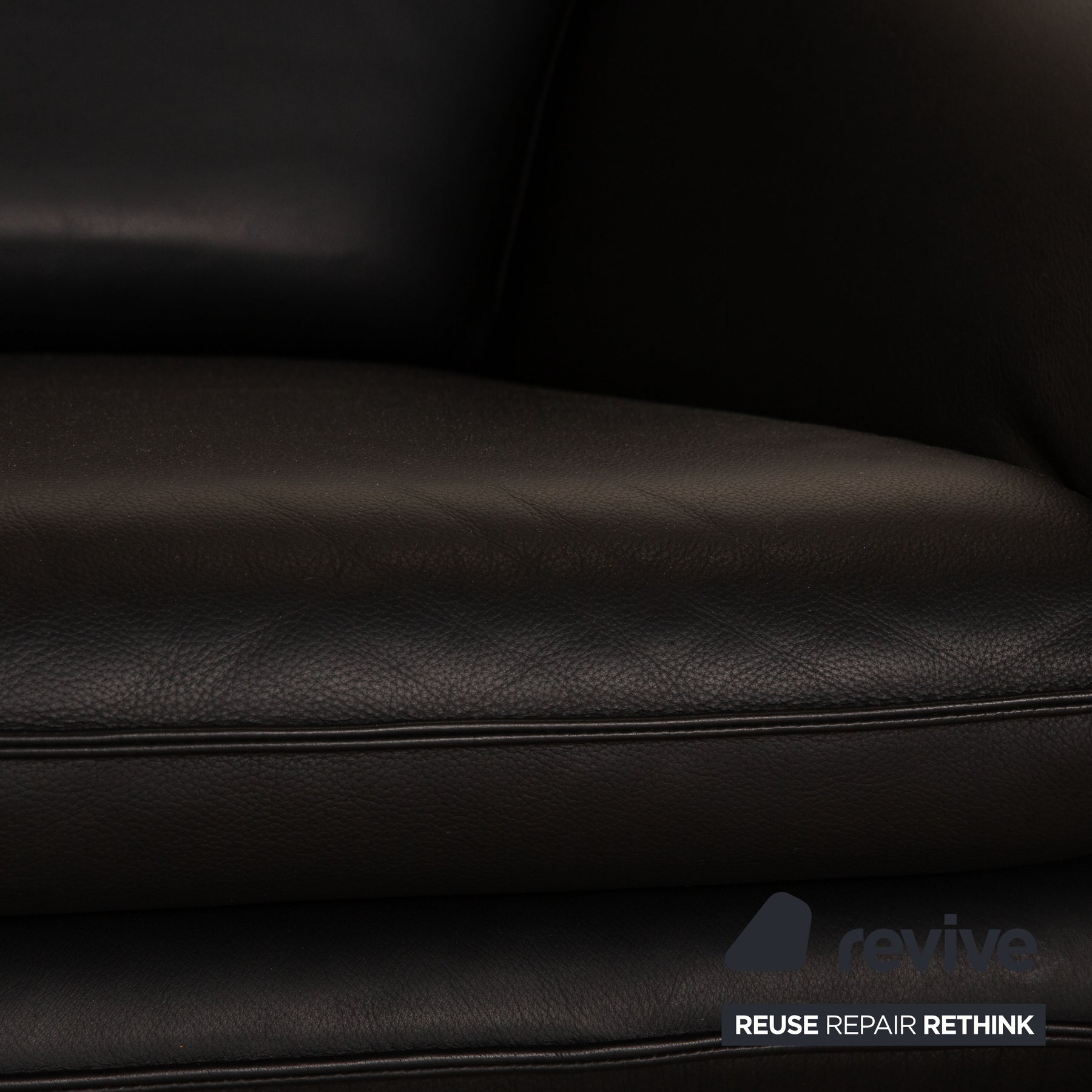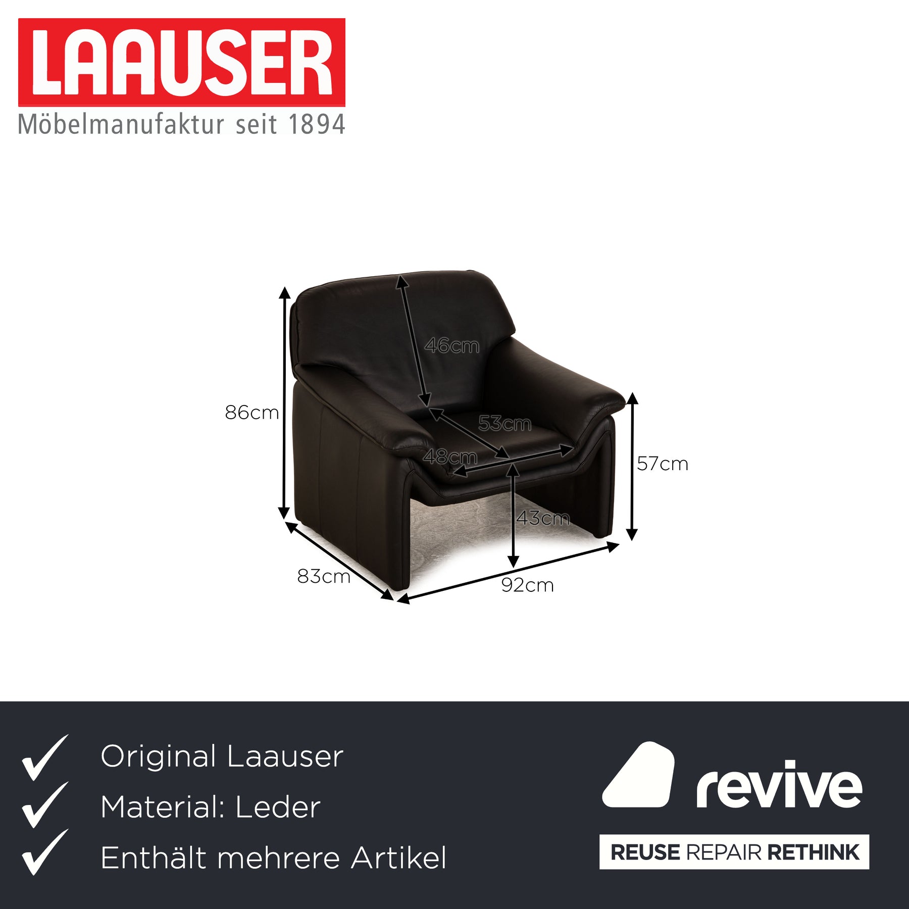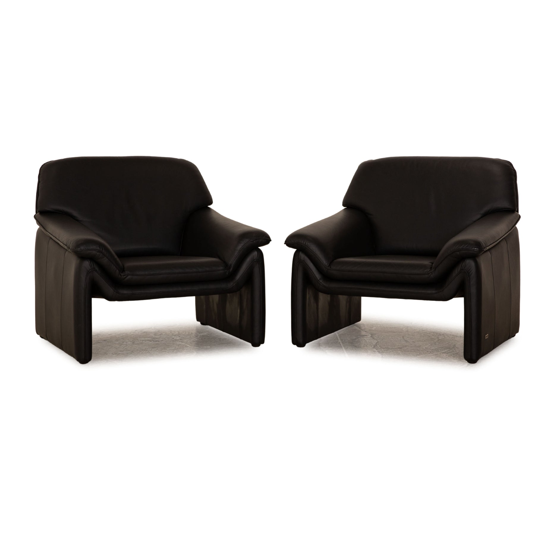 The Atlanta armchair set by Laauser is covered with black genuine leather and stands on inconspicuous feet. It is characterized by the airy, minimalist design and the simple, timeless look. The set consists of two armchairs.