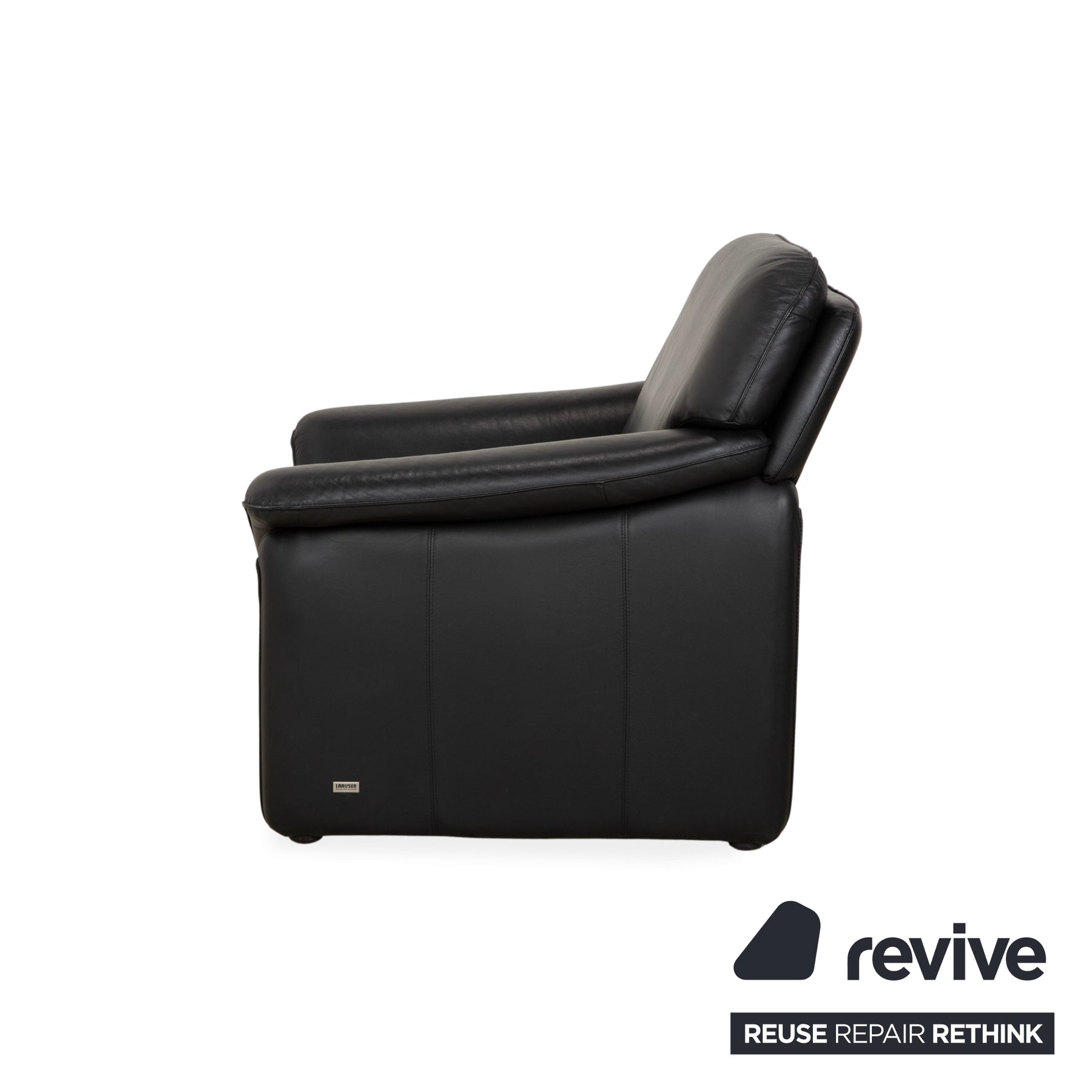 The Laauser Atlanta leather armchair in black is a classic-modern piece of furniture with a timeless aesthetic. Its understated, slim design is characterized by gently rounded shapes and clean lines. The discreet legs give the armchair a floating appearance, while the ergonomically shaped backrest and armrests ensure exceptional comfort.