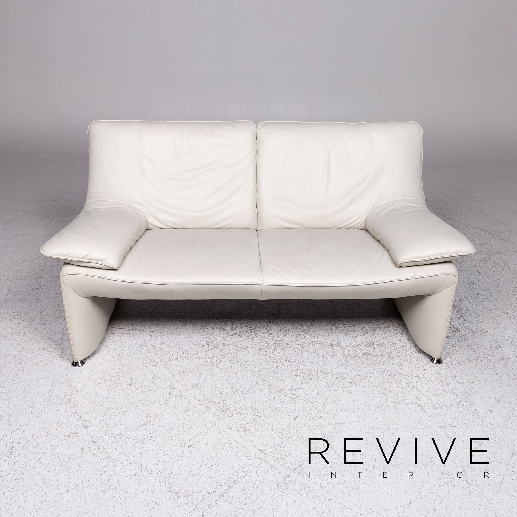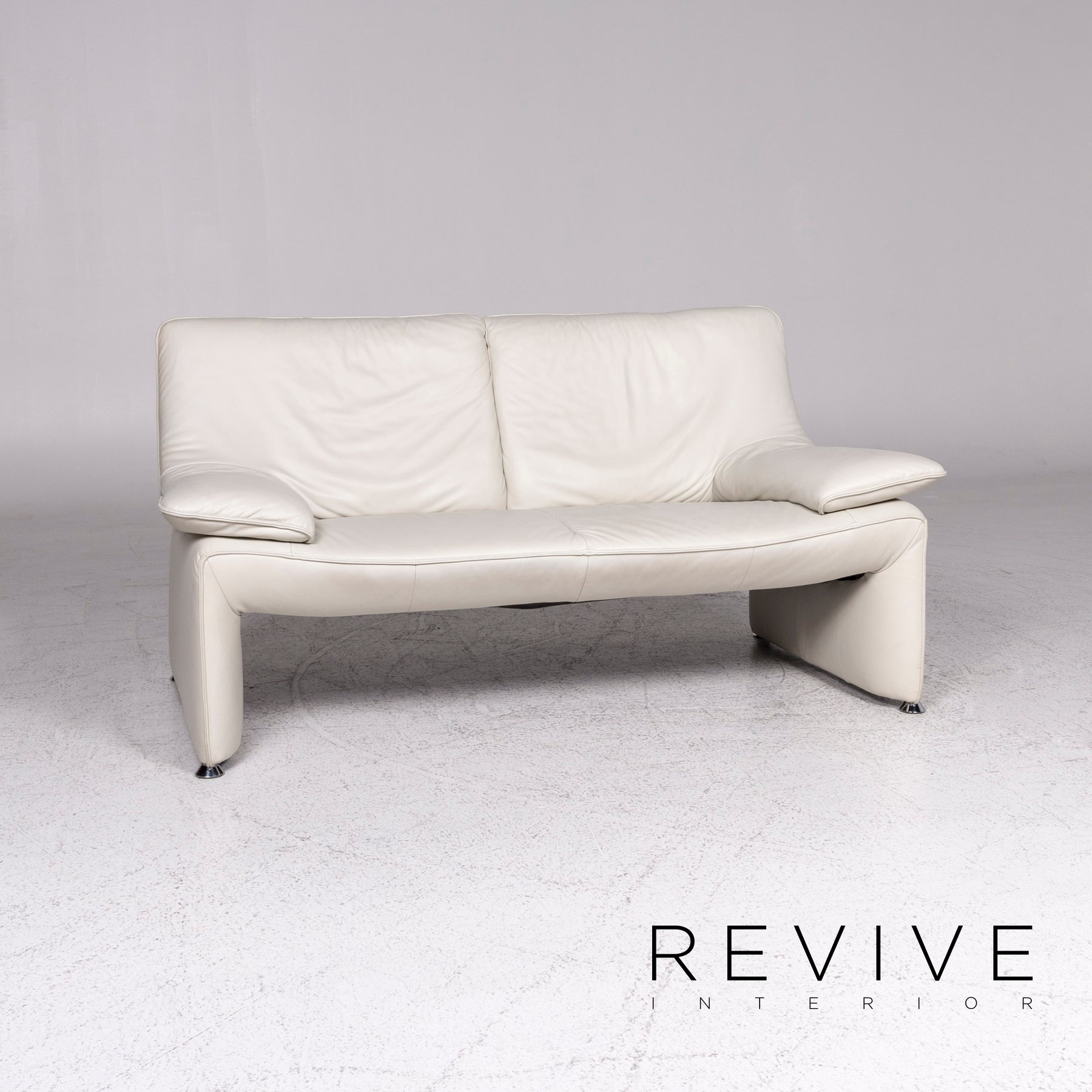 We present you Laauser Flair designer leather sofa set grey-white 1x three-seater 1x two-seater 1x armchair 1x stool #9542.
