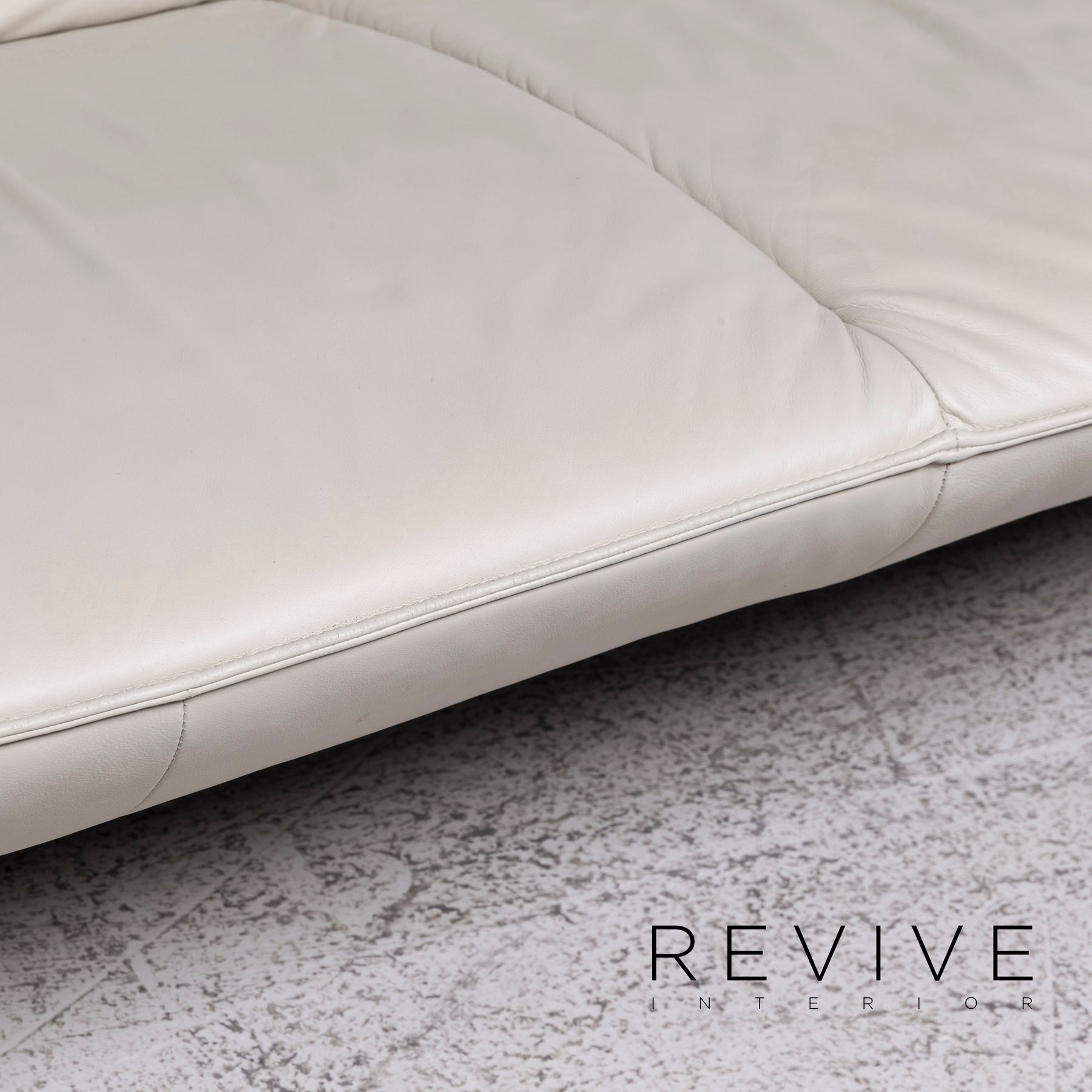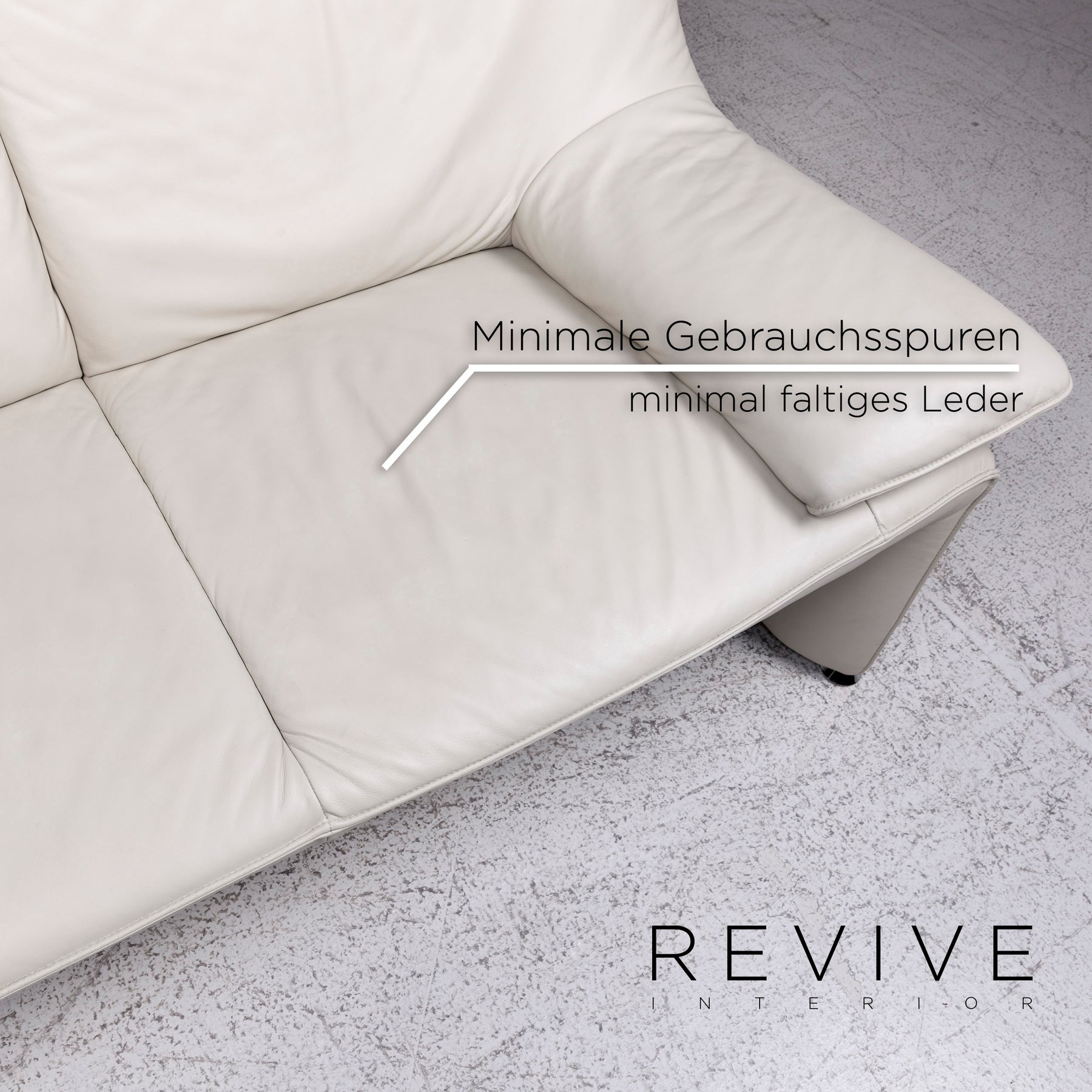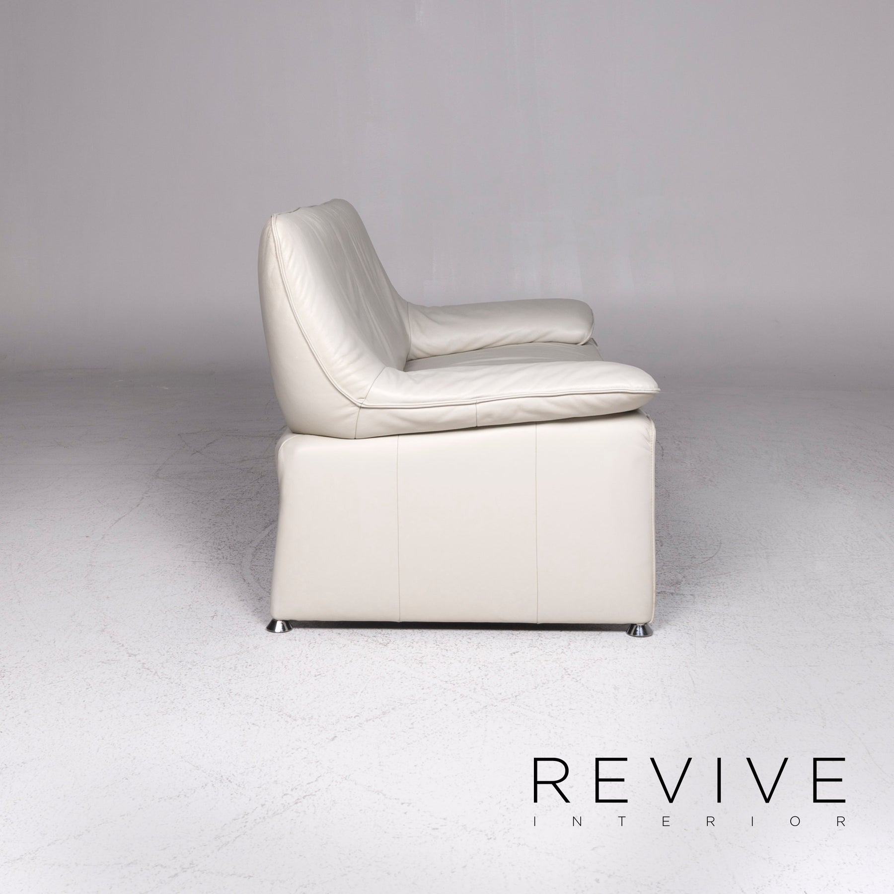 Laauser Flair designer leather sofa set grey-white 1x three-seater 1x two-seater 1x armchair 1x stool #9542