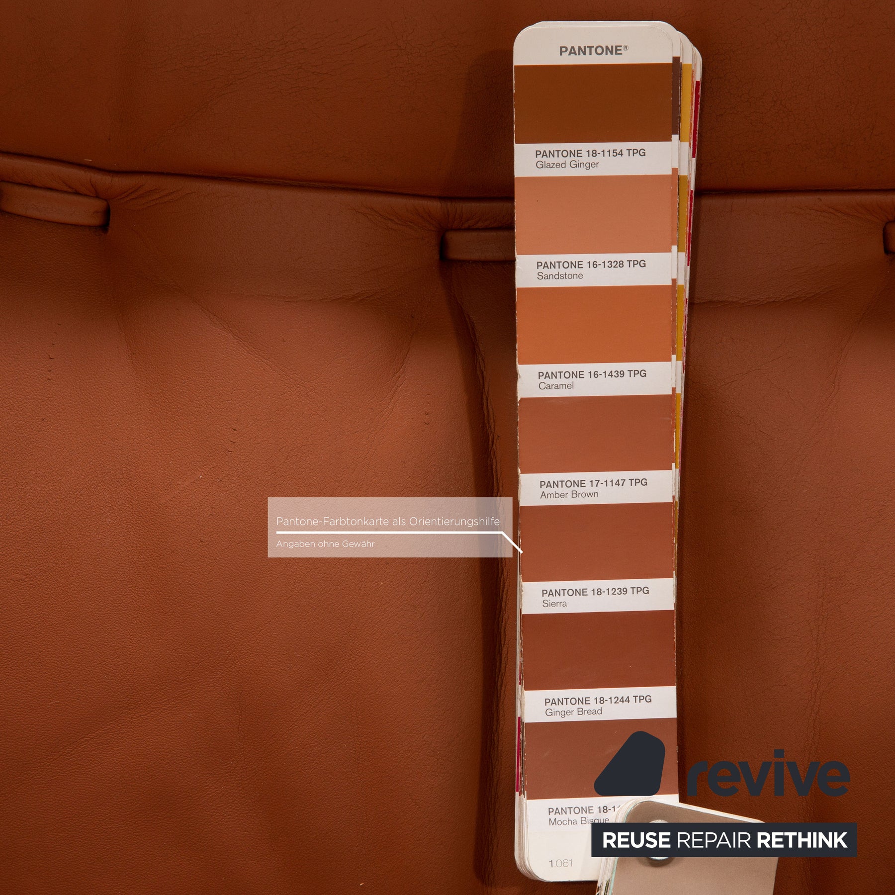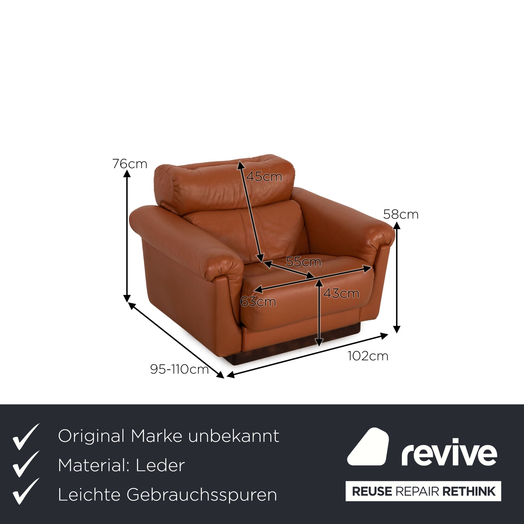 The armchair is covered with brown genuine leather and stands on elegant, unobtrusive feet. The classic design and the comfortable relax function distinguish it.