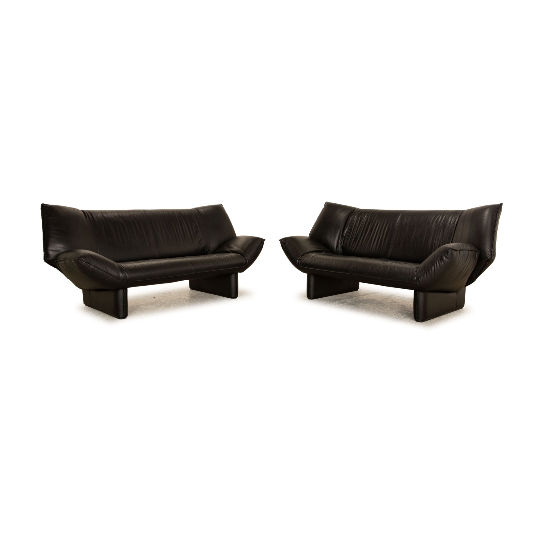 Leolux Tango leather sofa set black manual function 2x two-seater couch