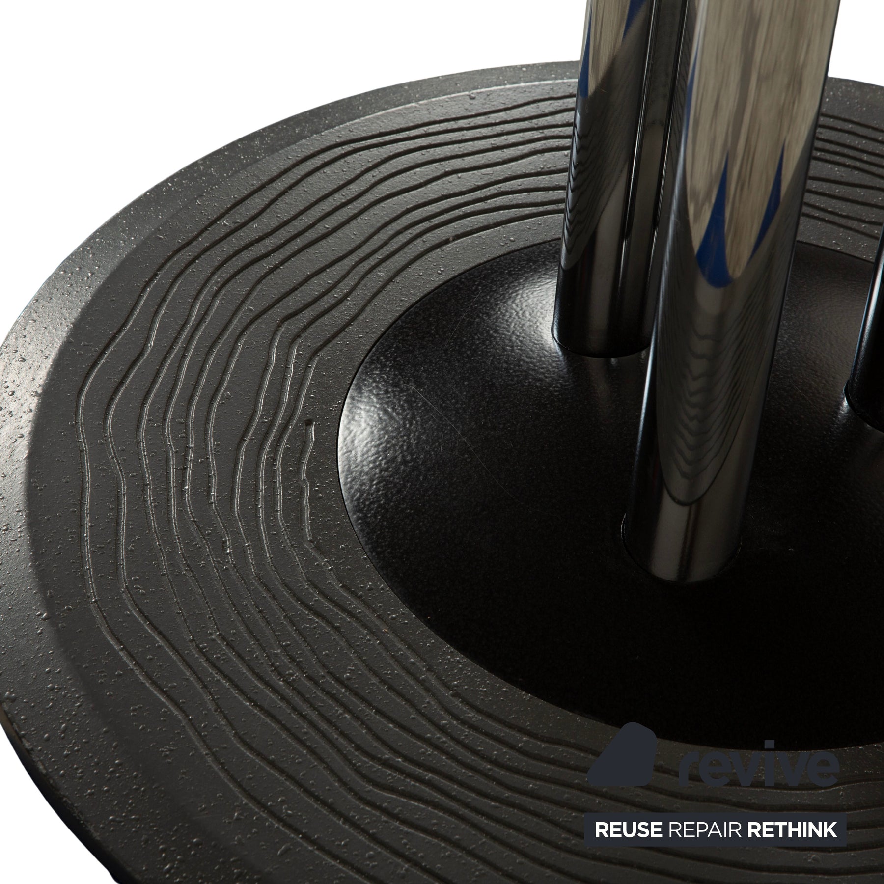 The Trias table by Leolux is an elegant addition to the modern dining room. Consisting of a black wooden tabletop mounted on its namesake three metal legs, the table's width can be extended in a few simple steps.