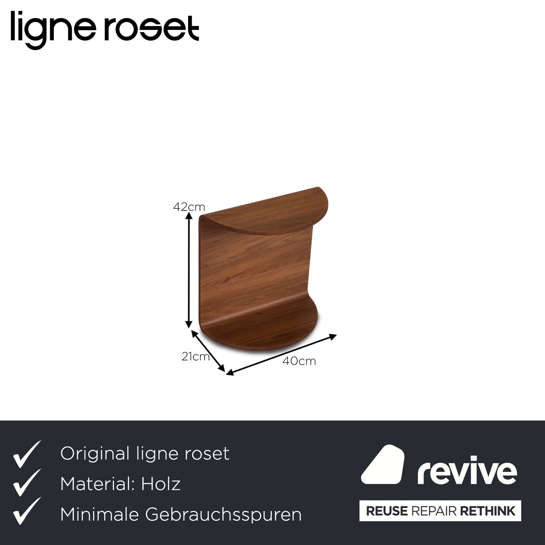 The side table Asmara by ligne roset is U-shaped and made of wood. It is characterized by its rounded shape and minimalist design.