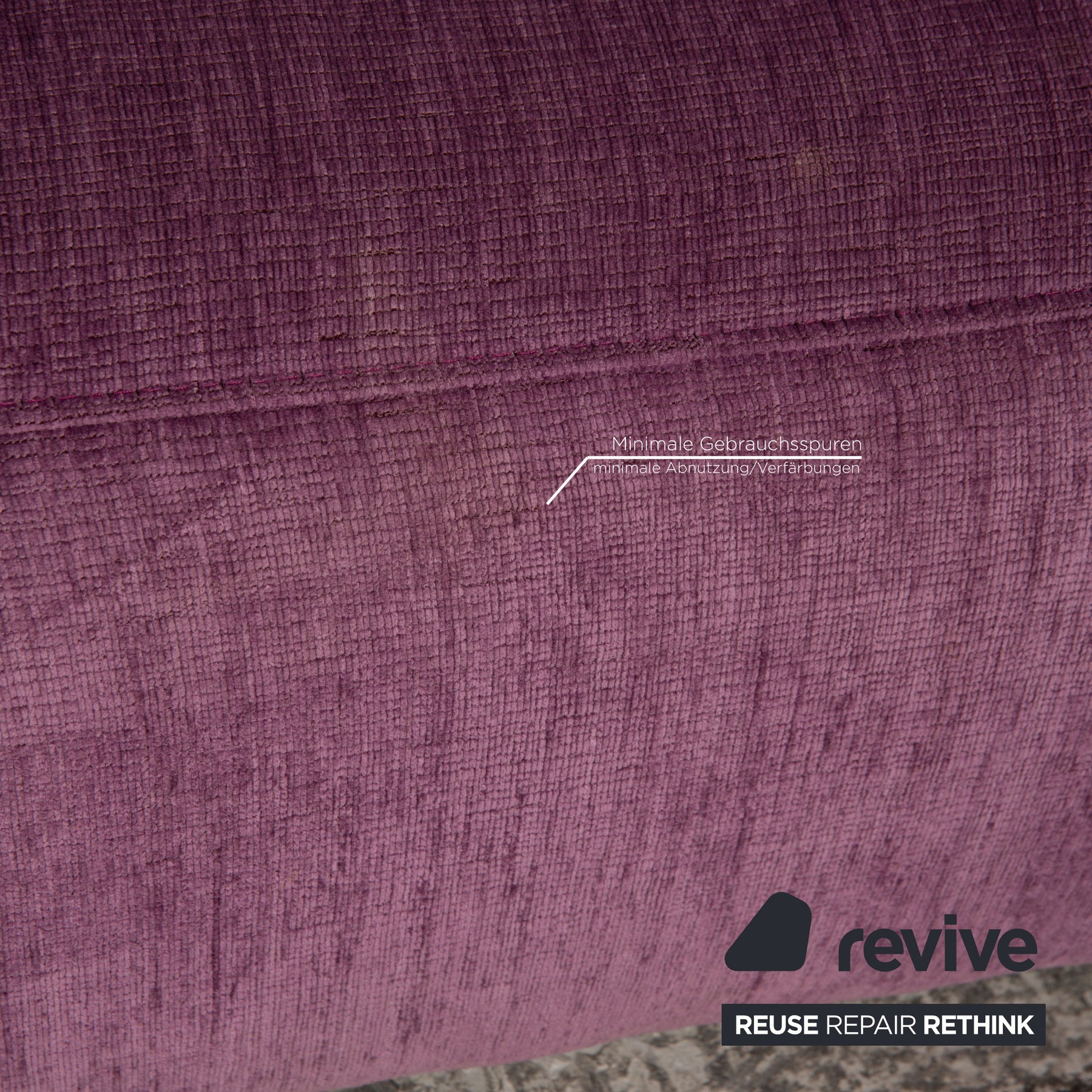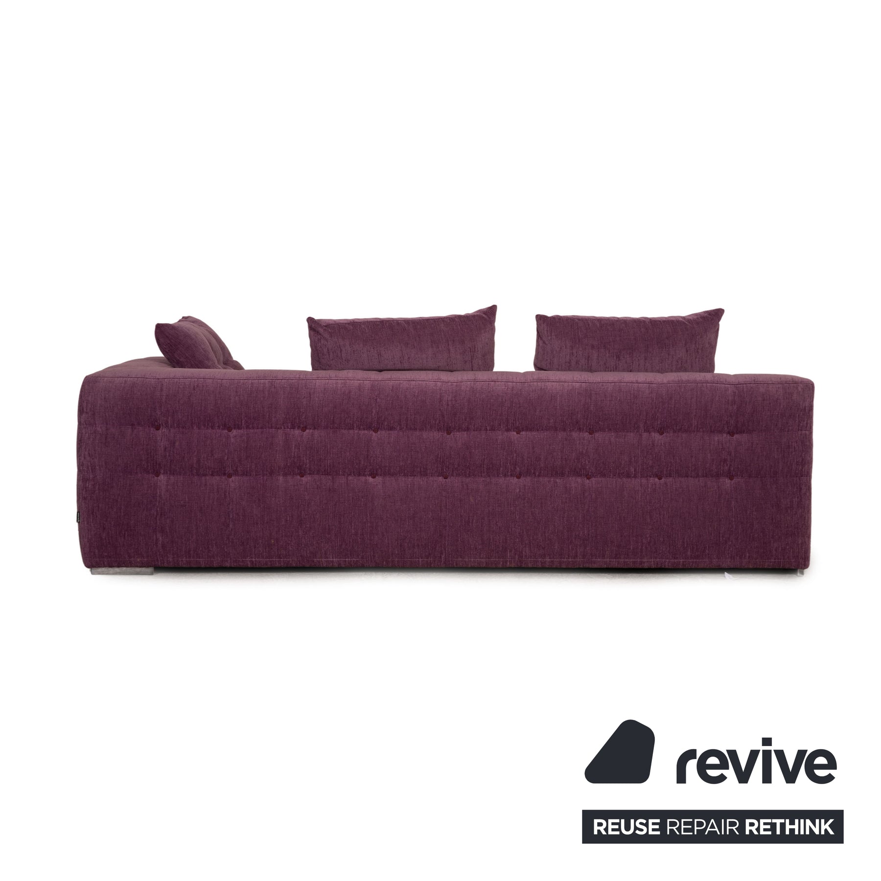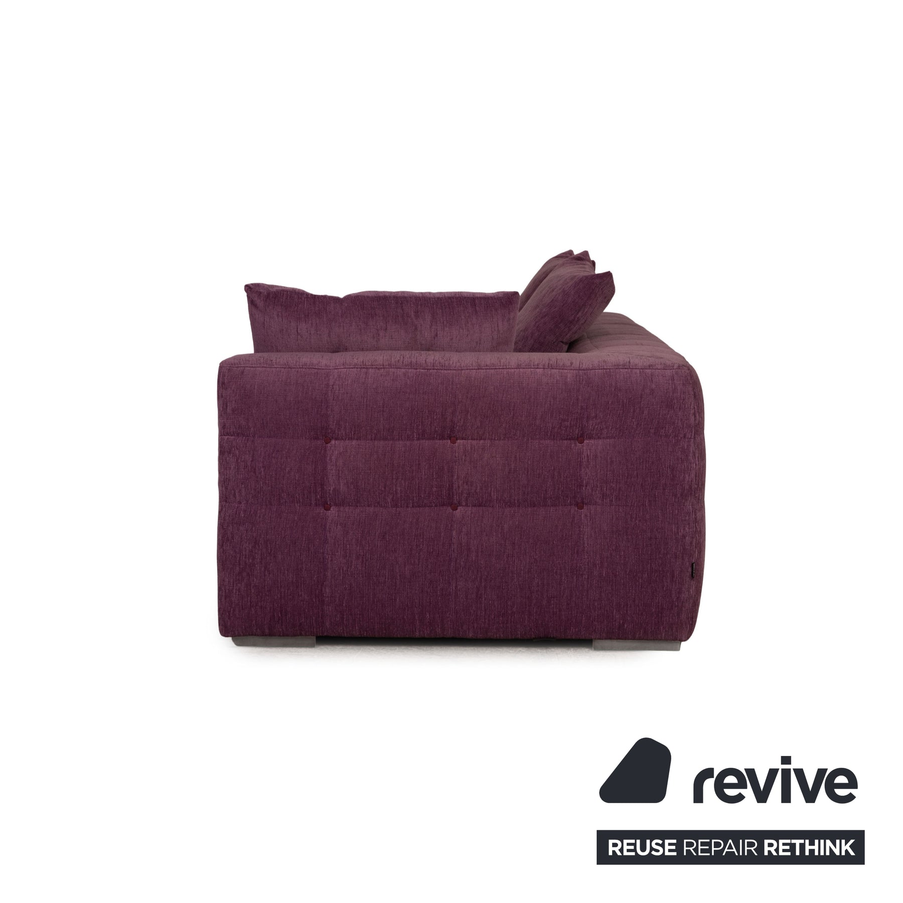The EXCLUSIF 2 sofa set by ligne roset is covered with a violet fabric and is floor-to-ceiling. They are characterized by the simple design and the rounded edges.