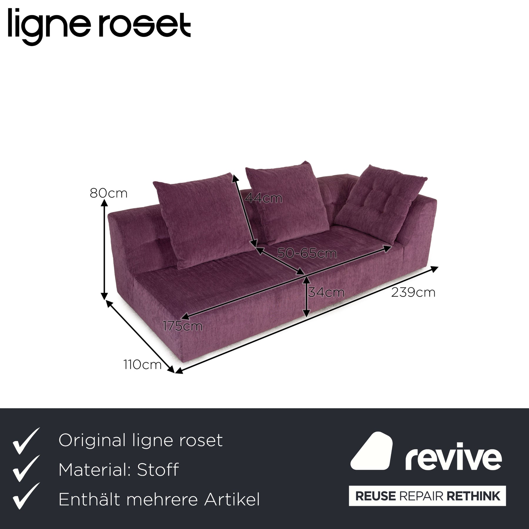 ligne roset EXCLUSIF 2 fabric sofa set Violet three-seater stool couch daybed