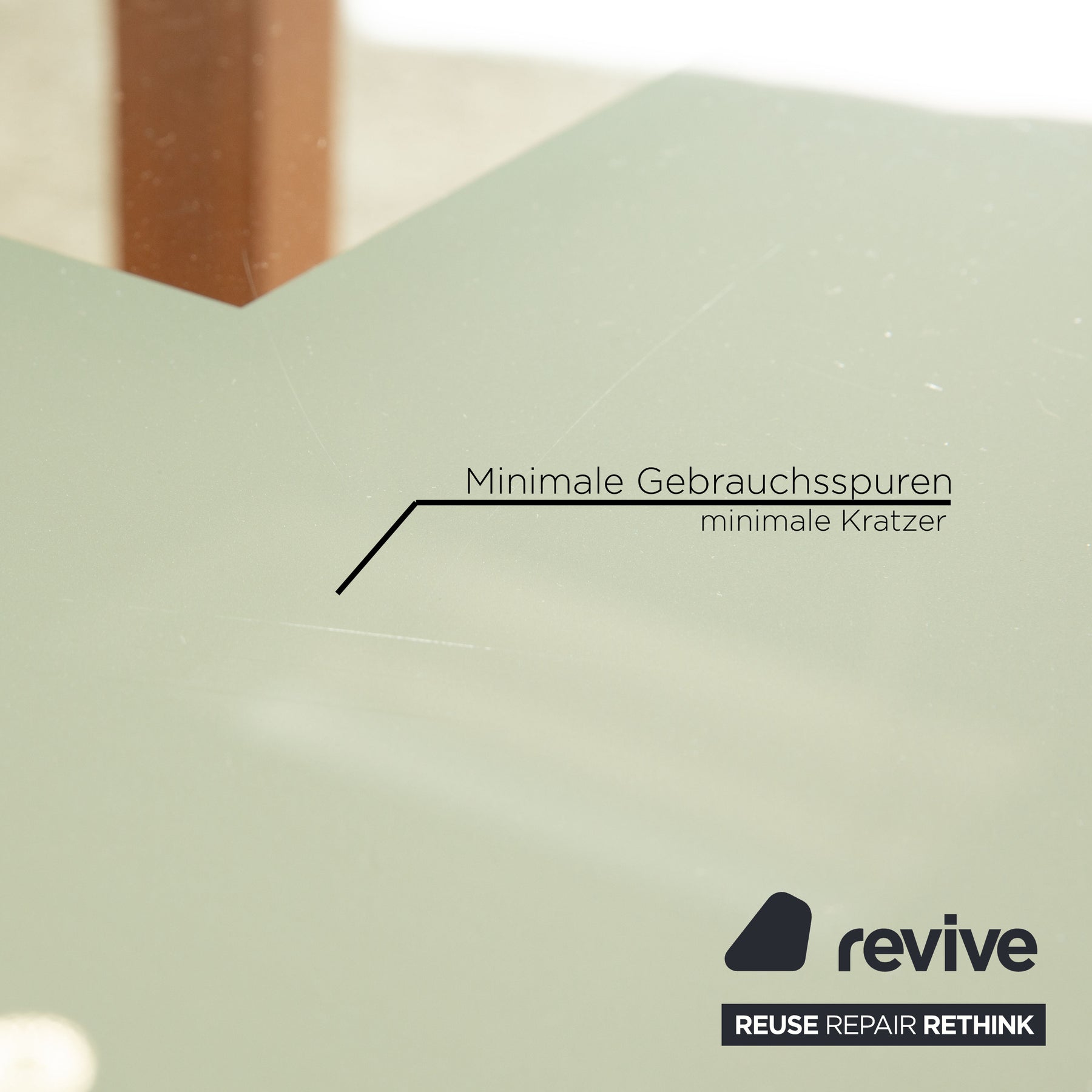 The Extensia dining table from ligne roset consists of a glass table top and stands on brown wooden feet. It is characterized by the comfortable pull-out function and the classic design.