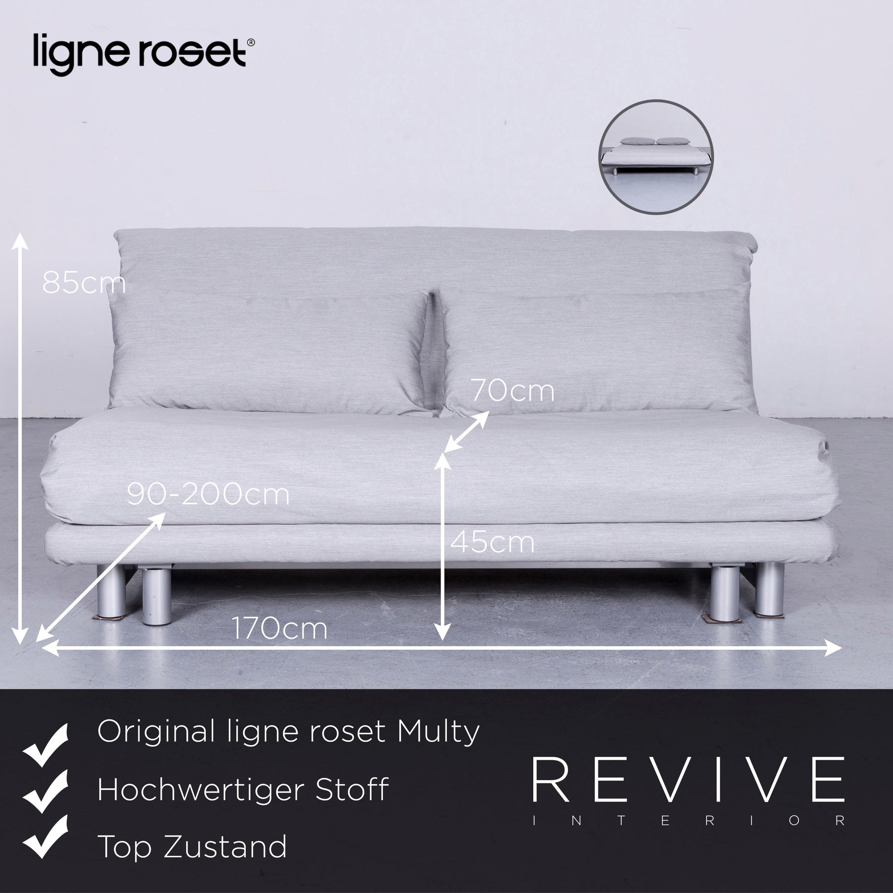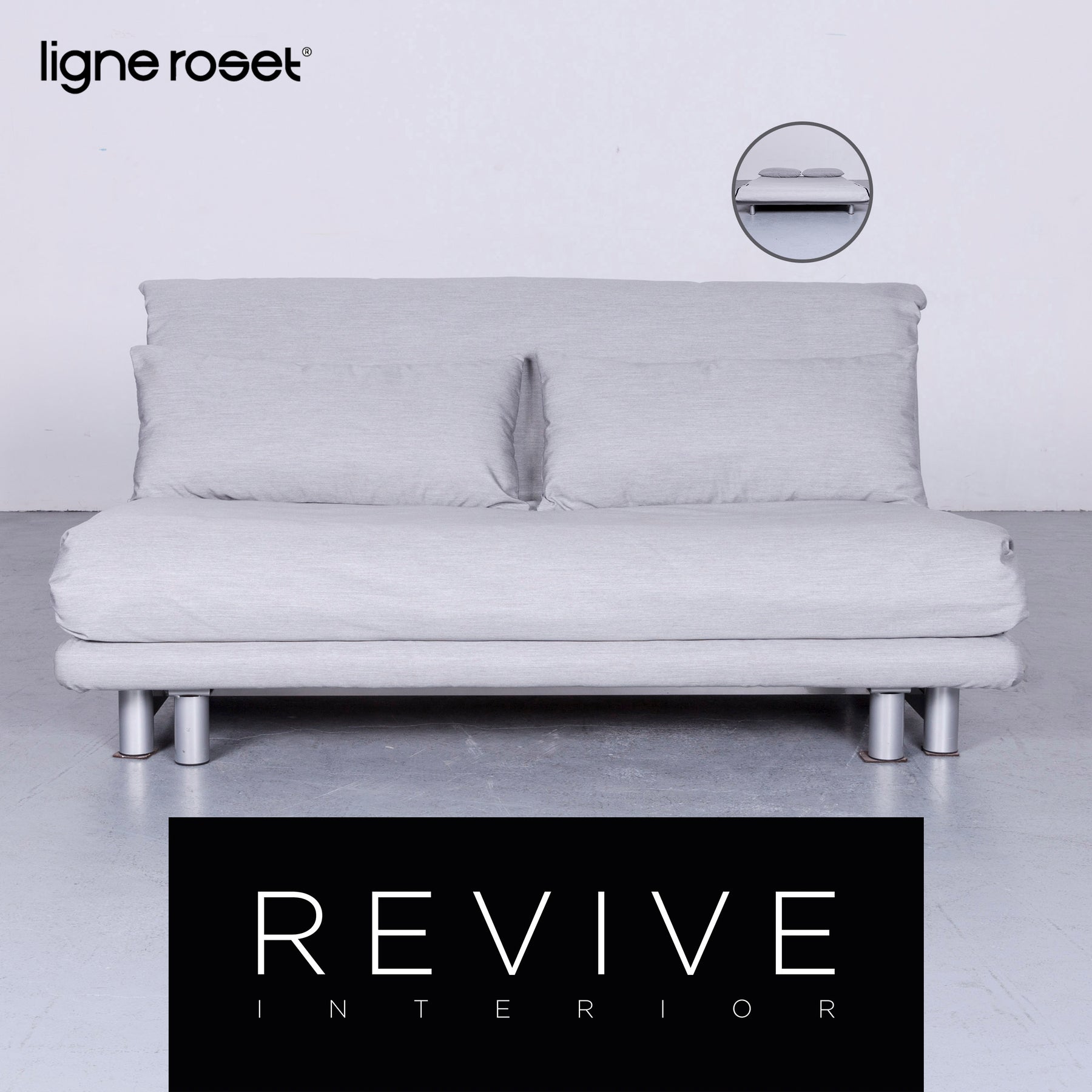 We present you ligne roset Multy Designer Fabric Sofa Gray Three Seater Couch #5678.