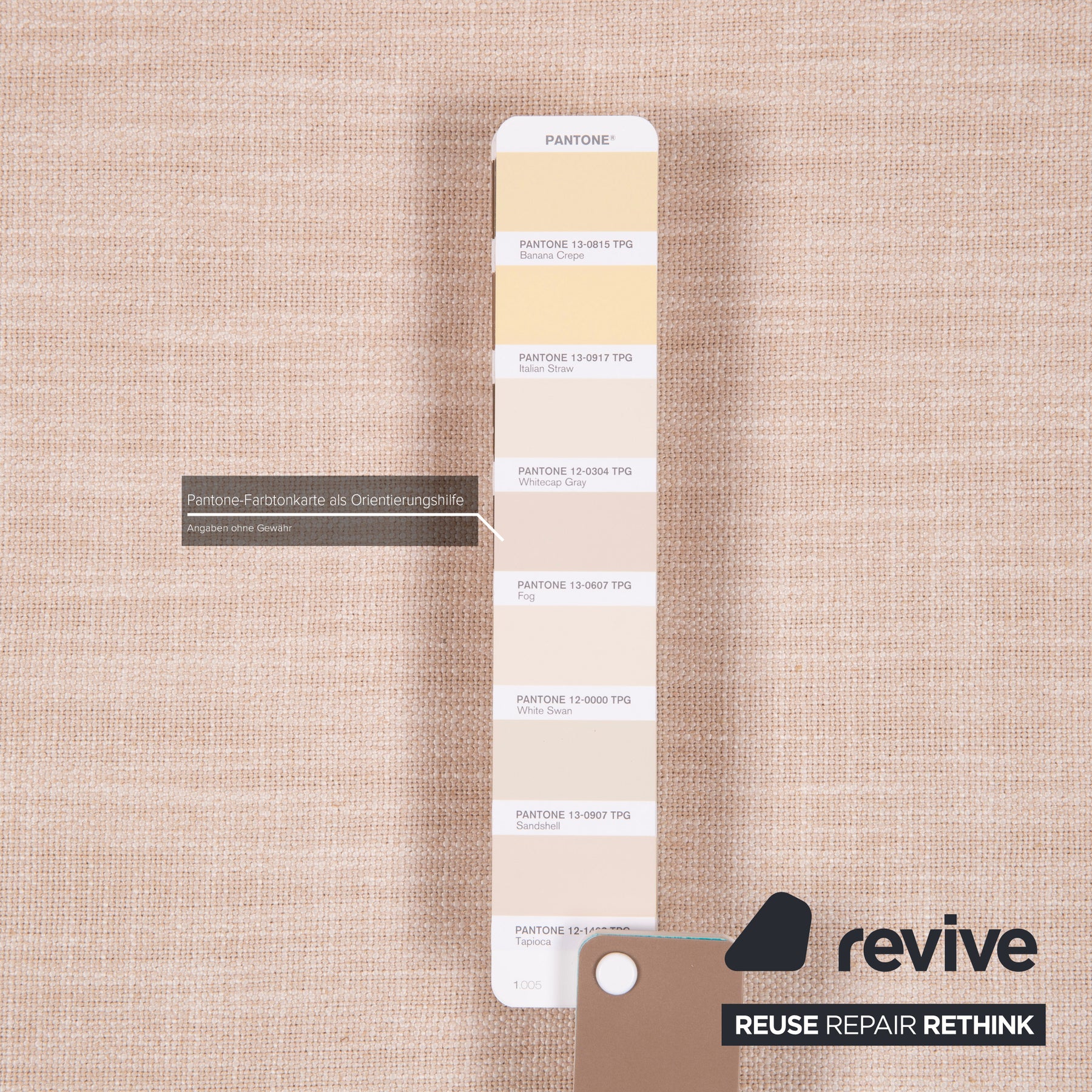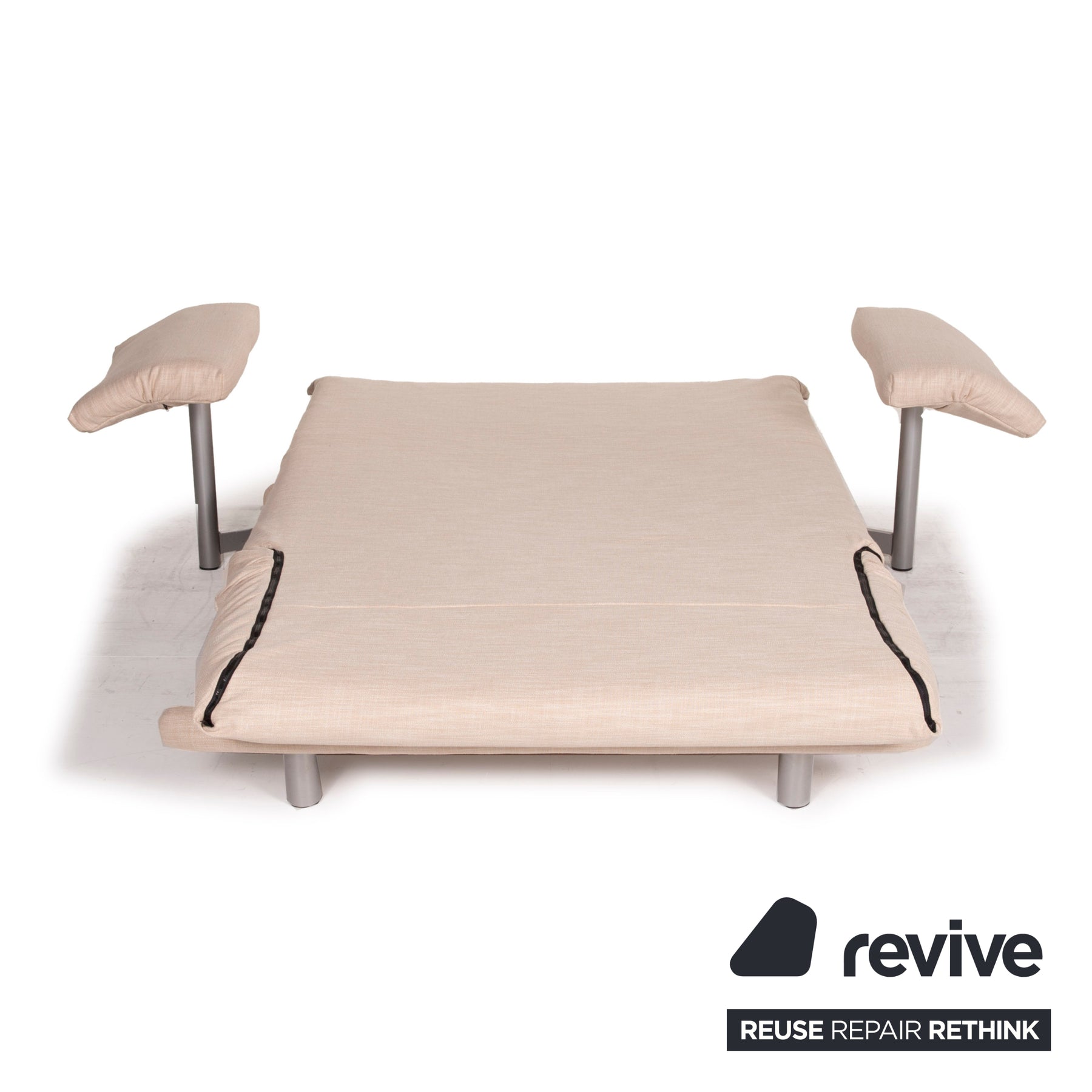 The multifunctional Multy sofa by the French manufacturer ligne roset has been reupholstered with a beige fabric and stands on a modern, matt alloy metal frame. The three-seater can be converted into a sofa bed in a few simple steps. The armrests are a practical additional feature of this classic.
