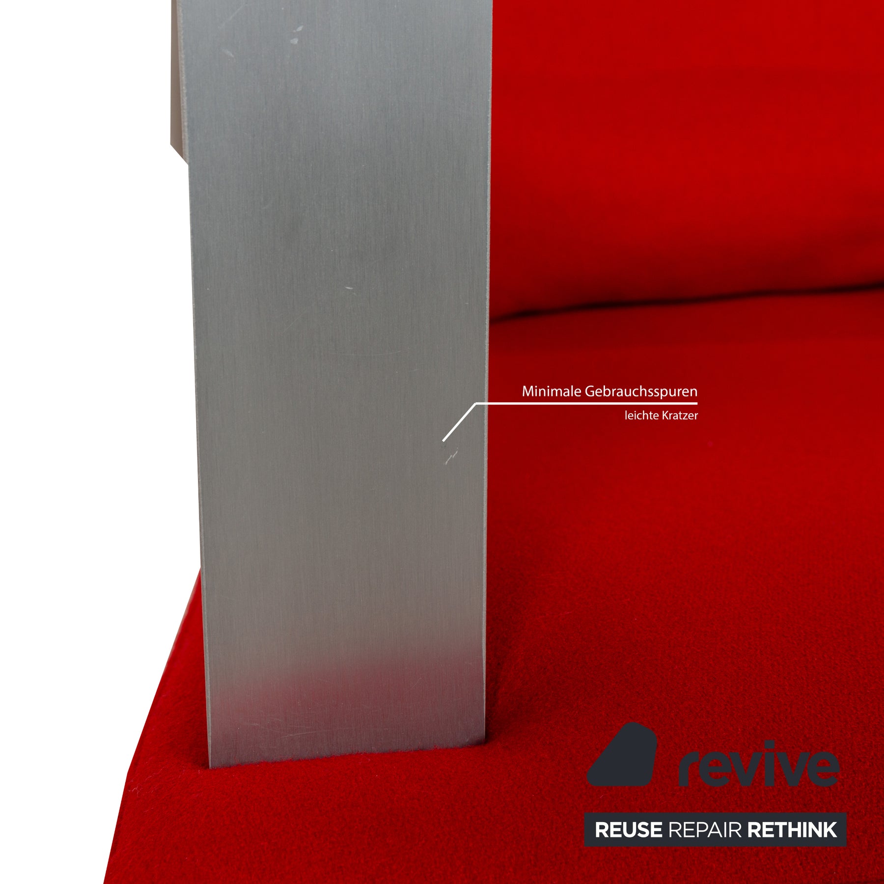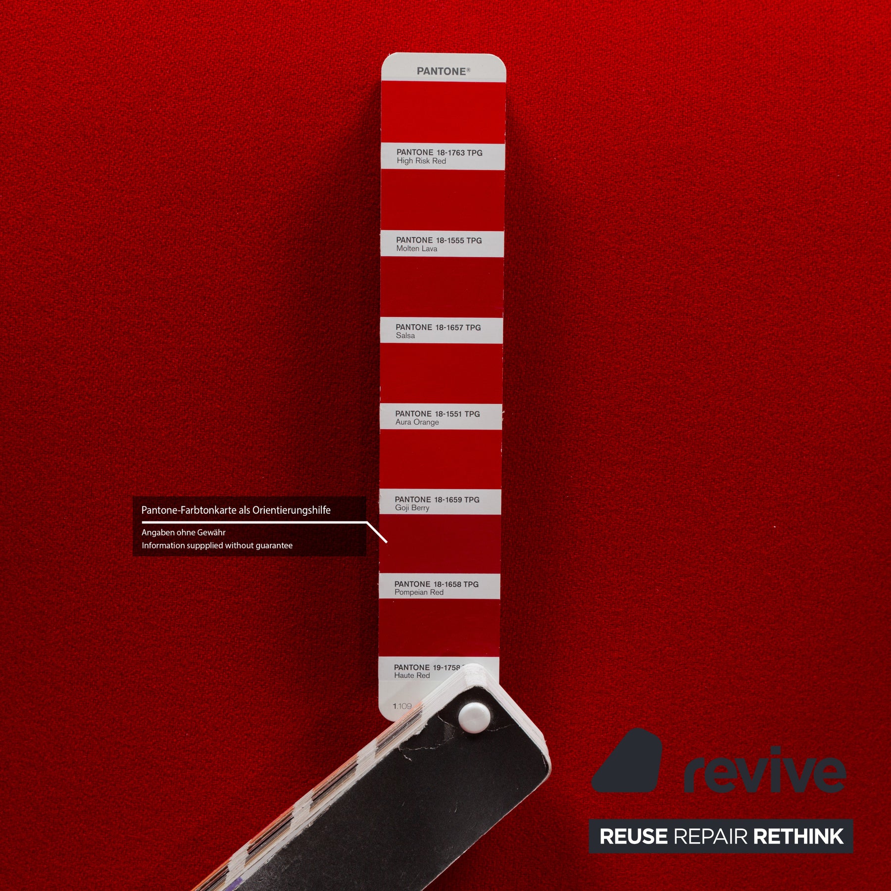 The Neo armchair by Ligne Roset is covered in an intense red fabric and stands floor-to-ceiling. Its curved shape and metal armrests combine to create a successful, contrasting design and make this armchair a real eye-catcher in the modern living room.