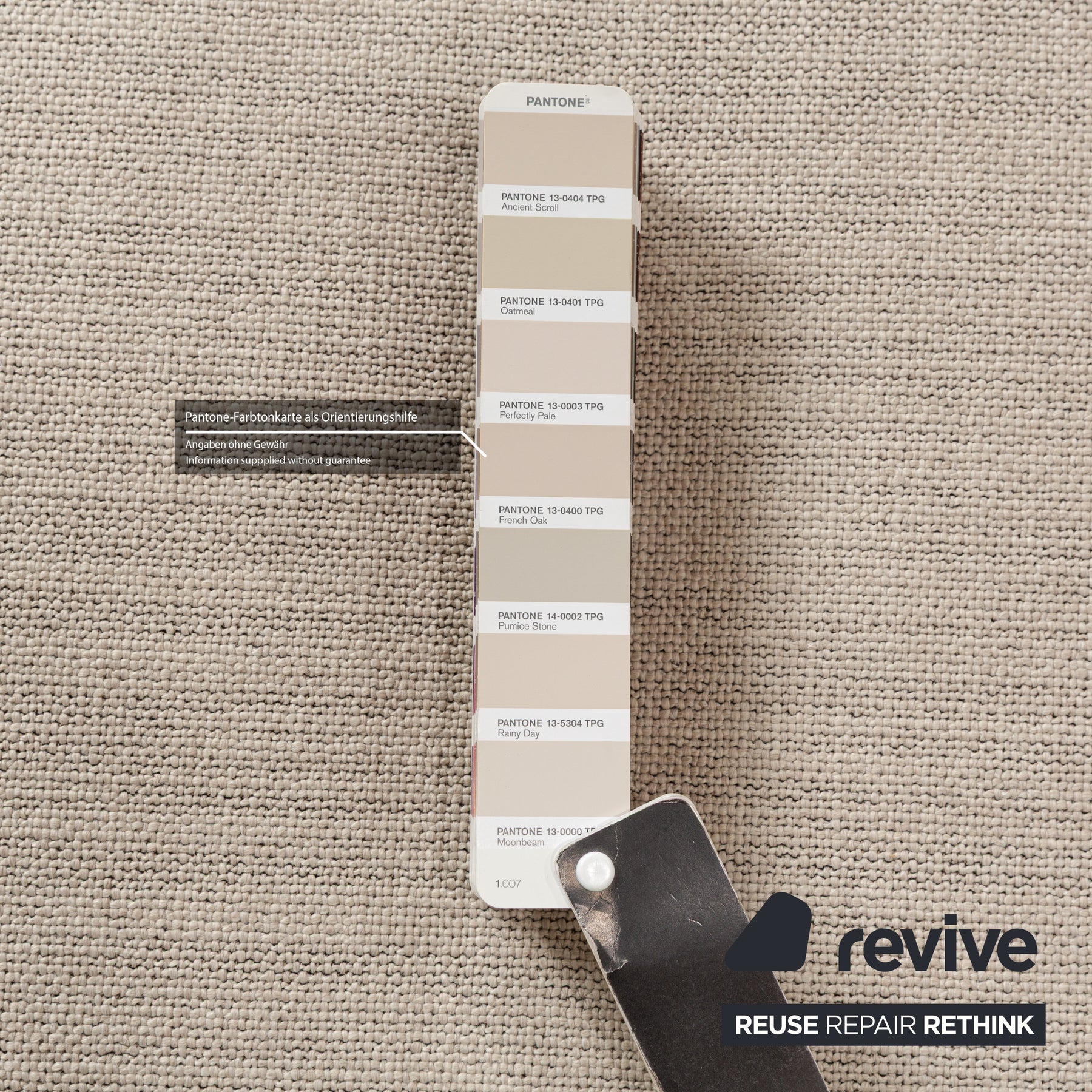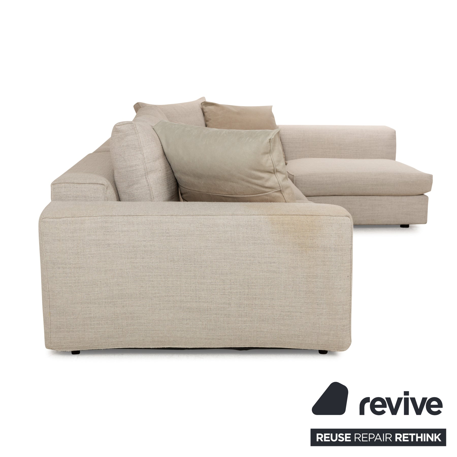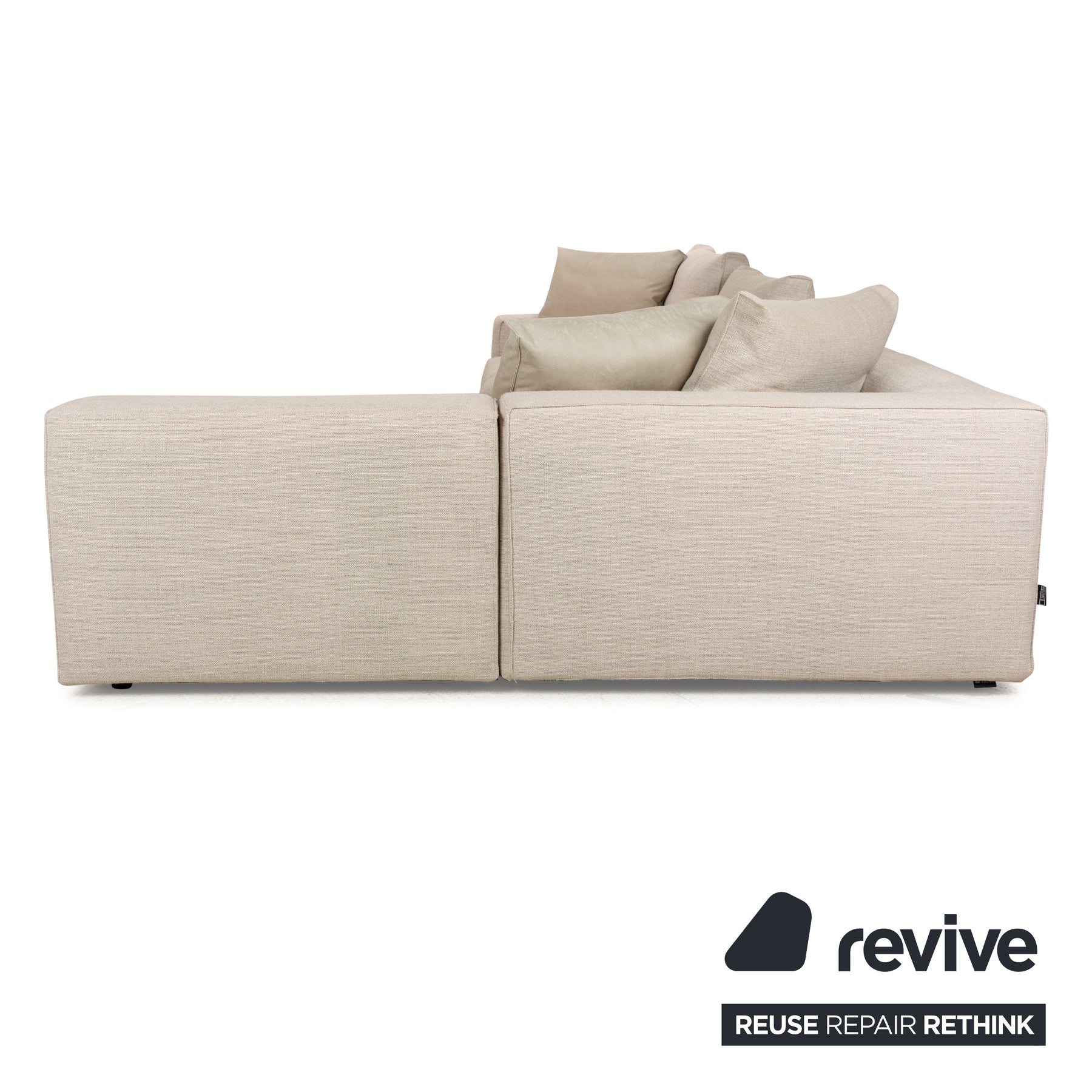 The corner sofa from Linteloo is upholstered in a cream-beige fabric and stands floor-to-ceiling. It is characterized by its minimalist and angular design. Combined with the rather understated color scheme, the sofa is a versatile piece of furniture for a modern living room. Deep seating and numerous cushions ensure a high level of comfort.