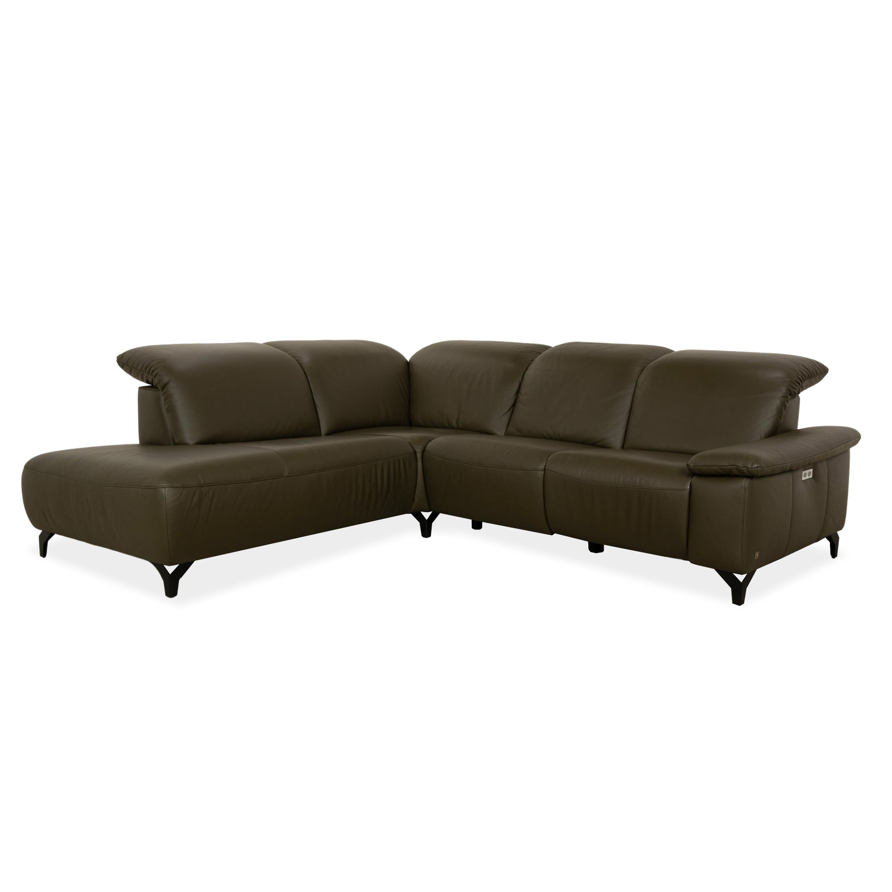 Musterring MR 370 Leather Corner Sofa Olive Green Manual and Electric Function Sofa Couch