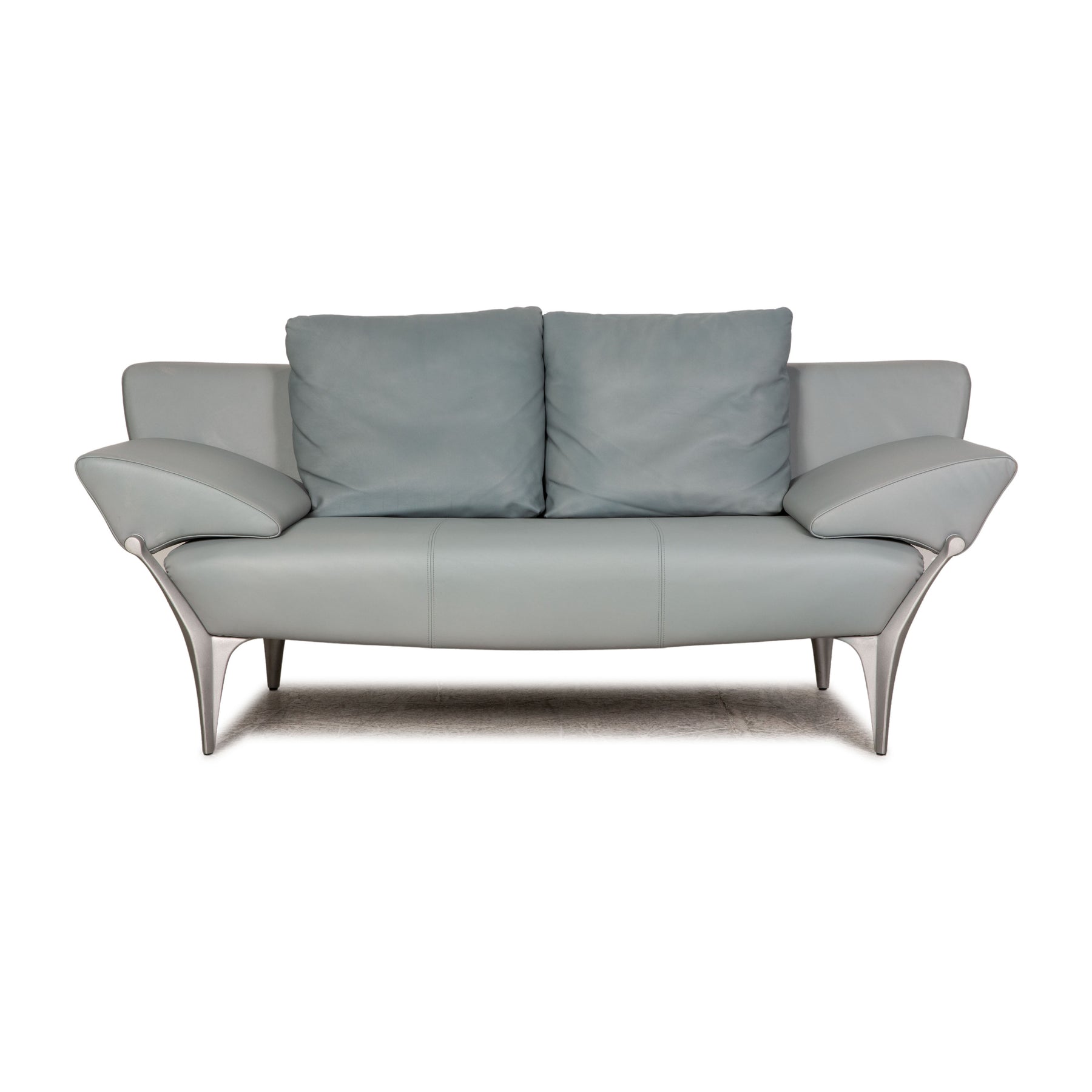 Rolf Benz 1600 leather two-seater grey-blue ice-blue sofa couch function