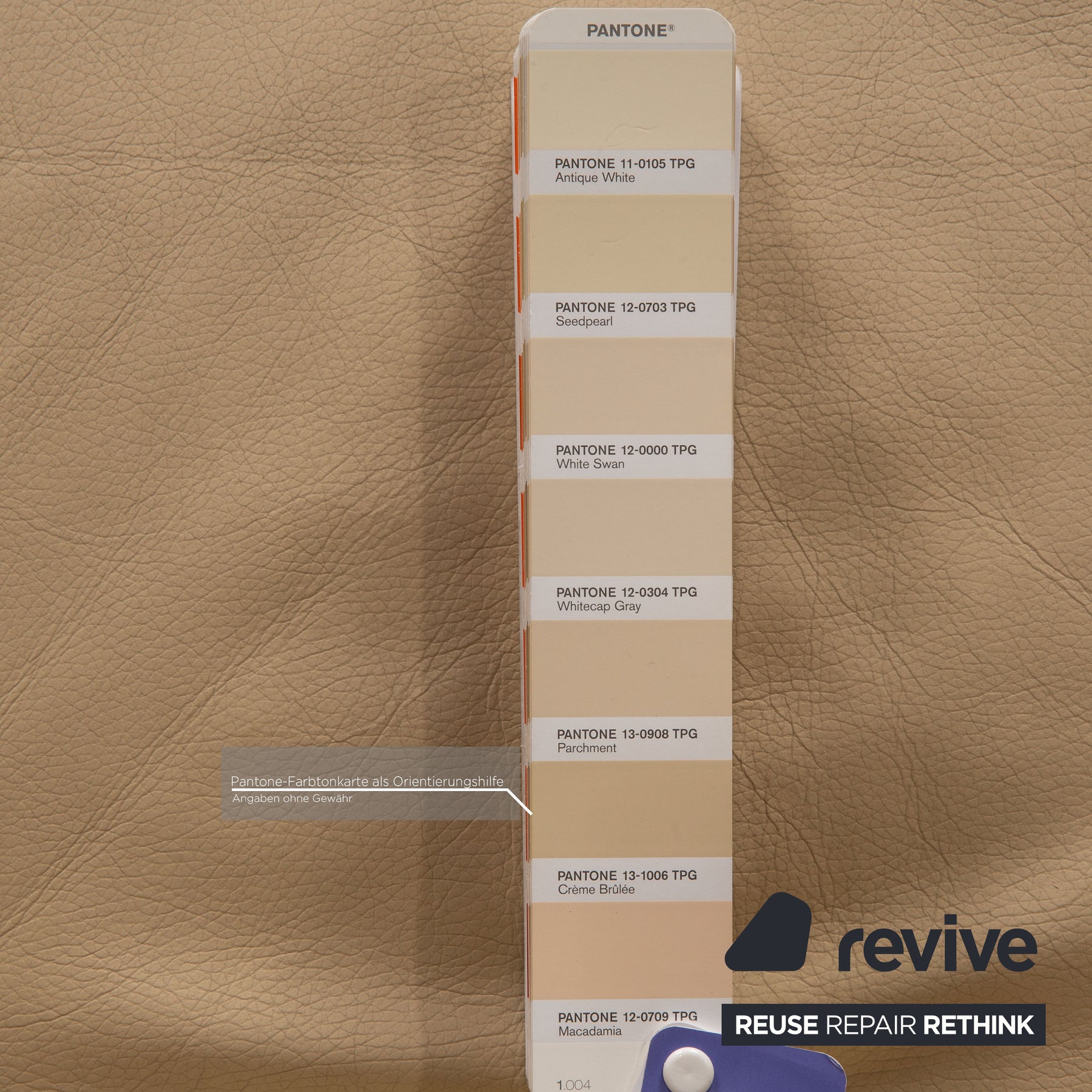 The 2300 armchair by Rolf Benz is covered with cream-colored real leather and stands on silver metal feet. It is characterized by the bright, harmonious look and the simple, compact design.