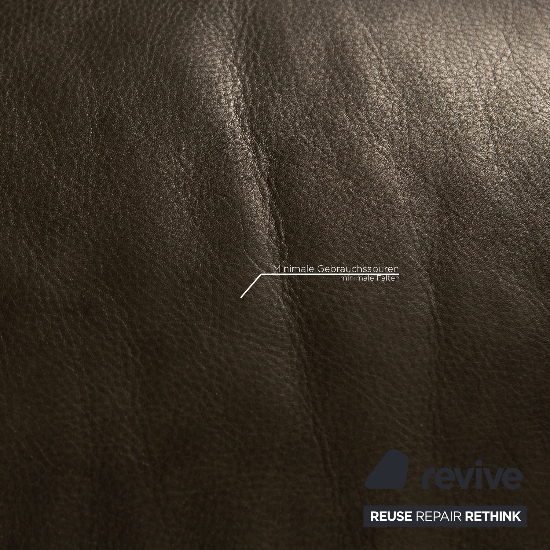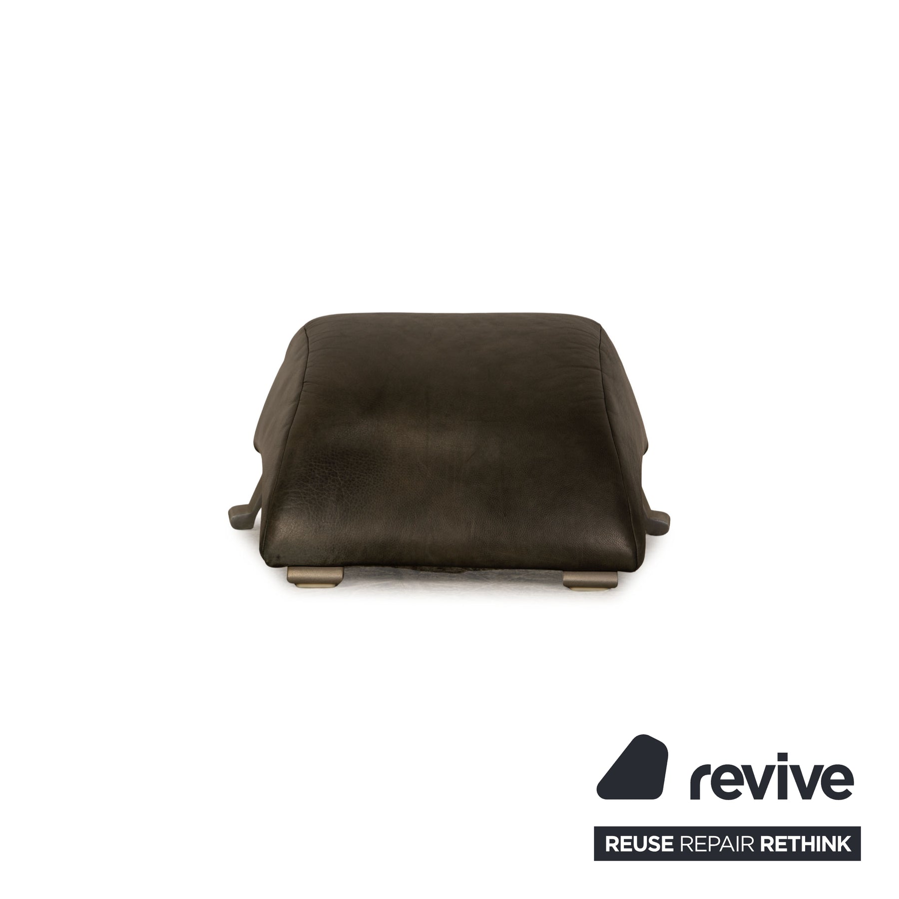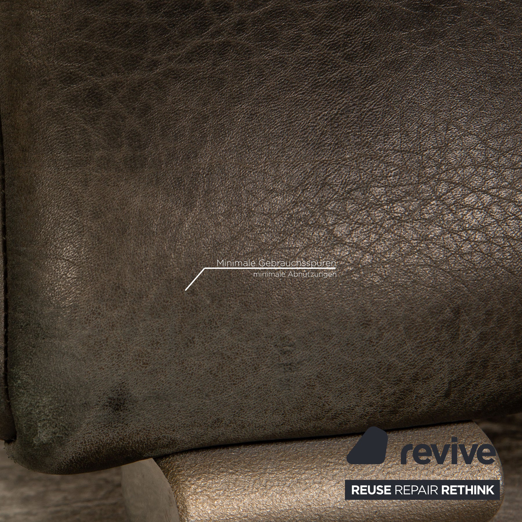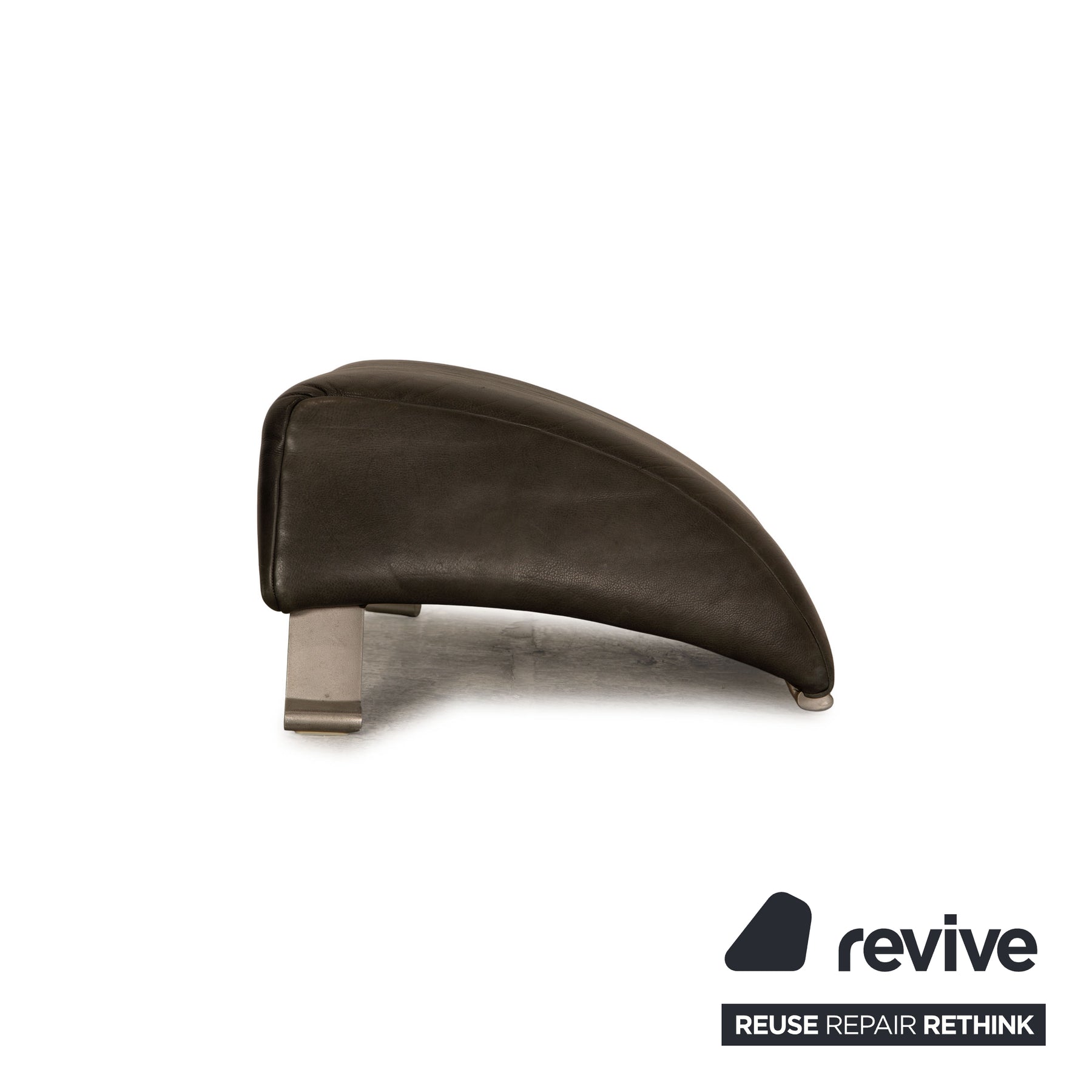 The 322 armchair set by Rolf Benz is upholstered in gray genuine leather and stands on narrow metal feet. It is characterized by the compact, solid design and the simple, timeless look. The set consists of an armchair and a stool.