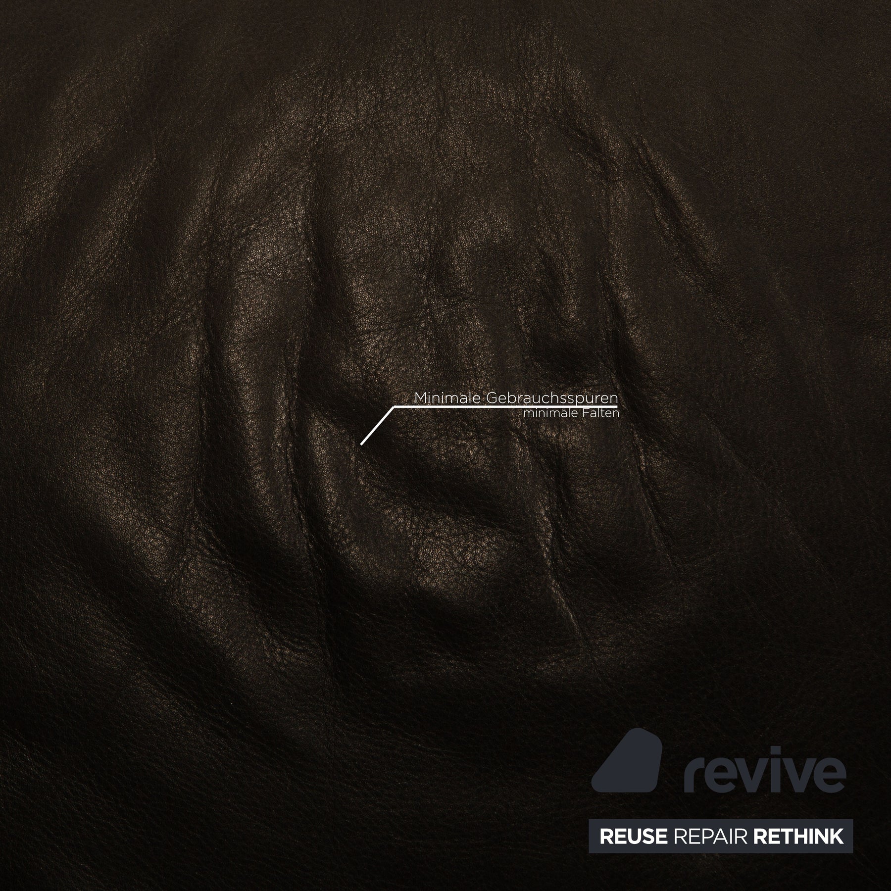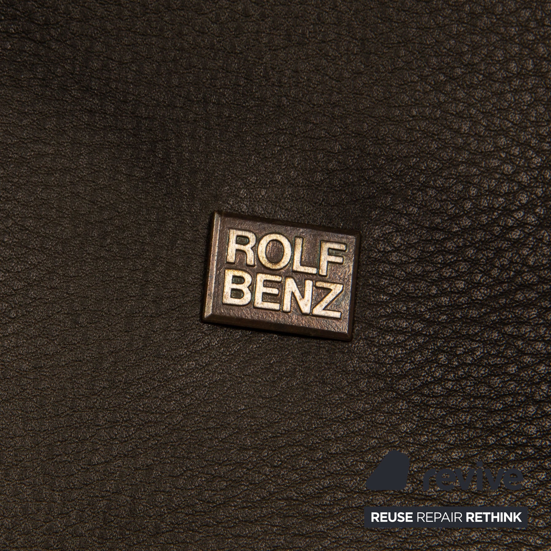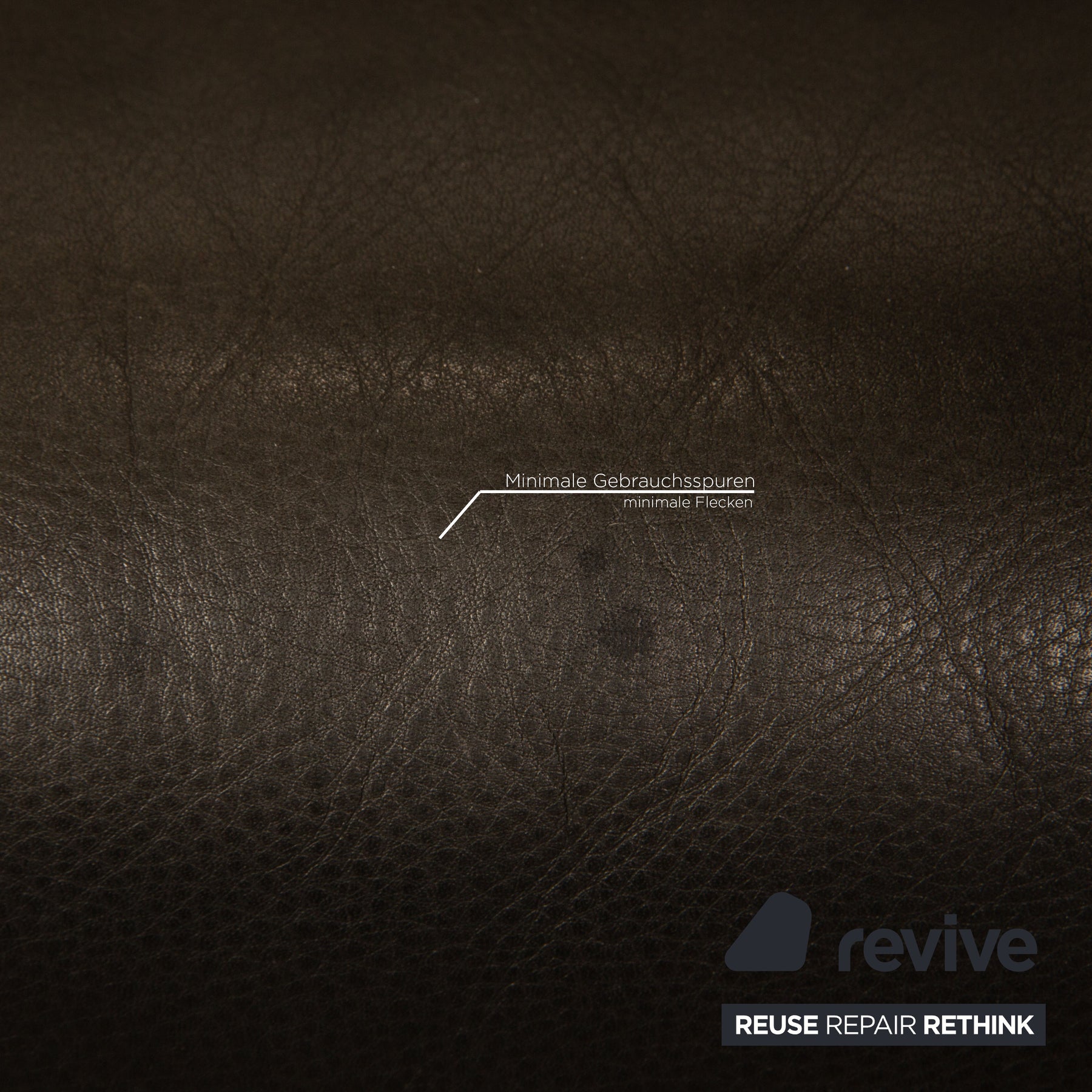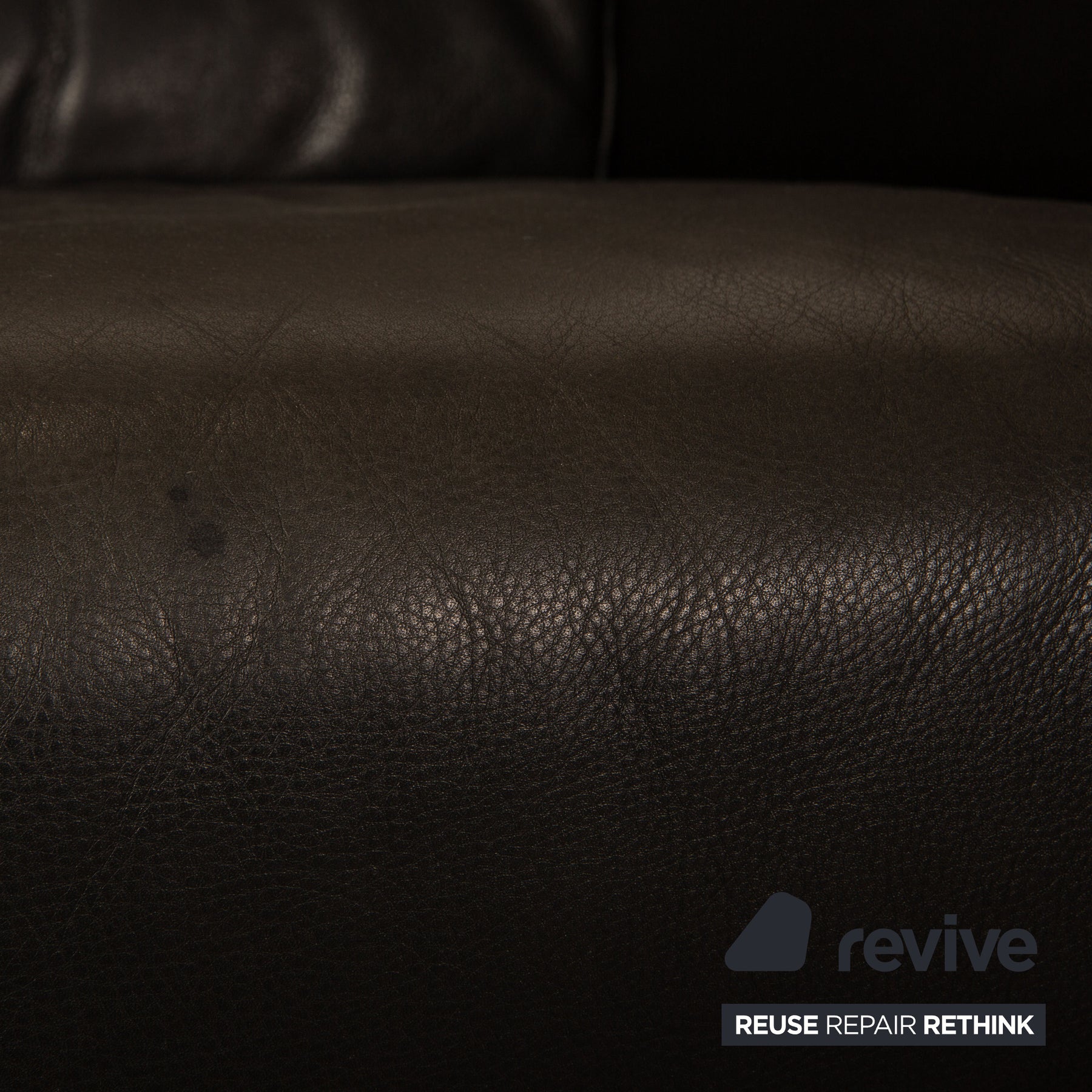 The 322 armchair set by Rolf Benz is upholstered in gray genuine leather and stands on narrow metal feet. It is characterized by the compact, solid design and the simple, timeless look. The set consists of an armchair and a stool.