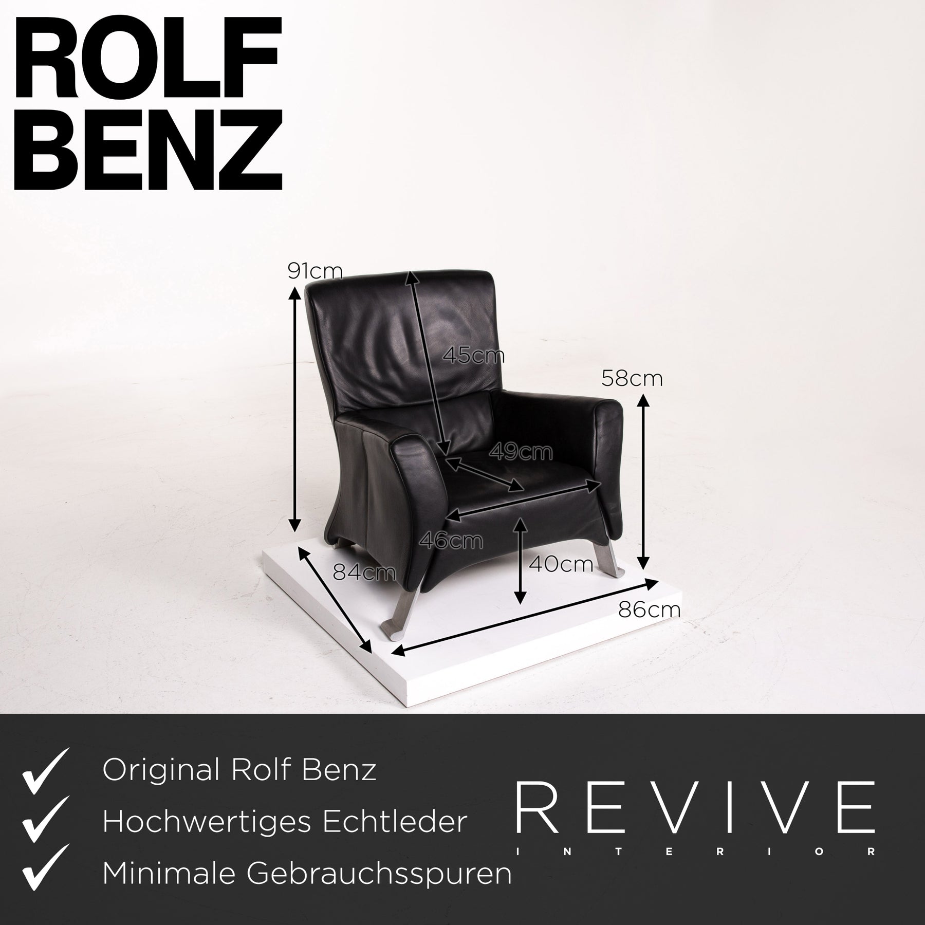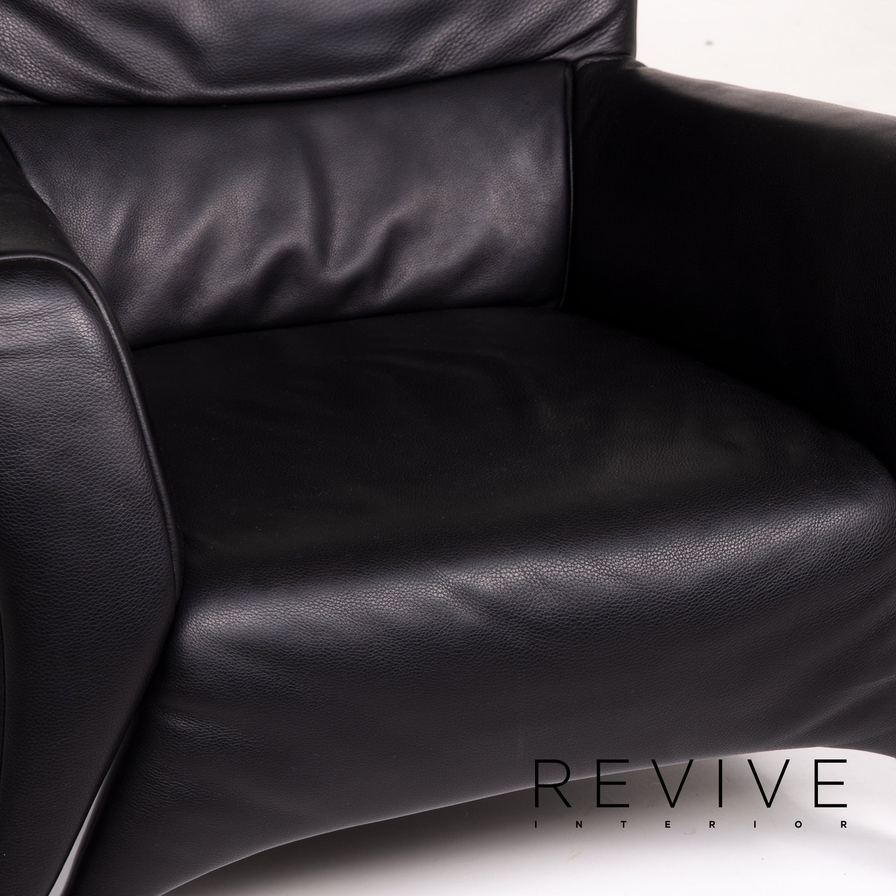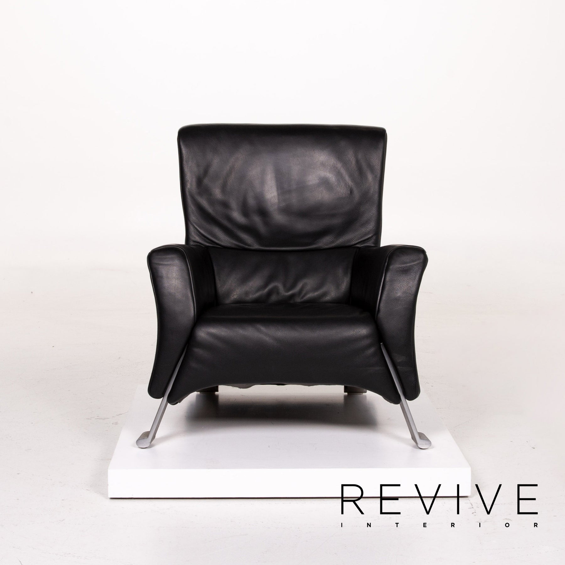 The 322 armchair from Rolf Benz, covered with smooth black leather, is a classic where the compact body meets soft lines. The slanting aluminum feet of the armchair and the outwardly curved backrests ensure dynamism. The medium-firm seating comfort ensures stability and relaxation in equal measure.