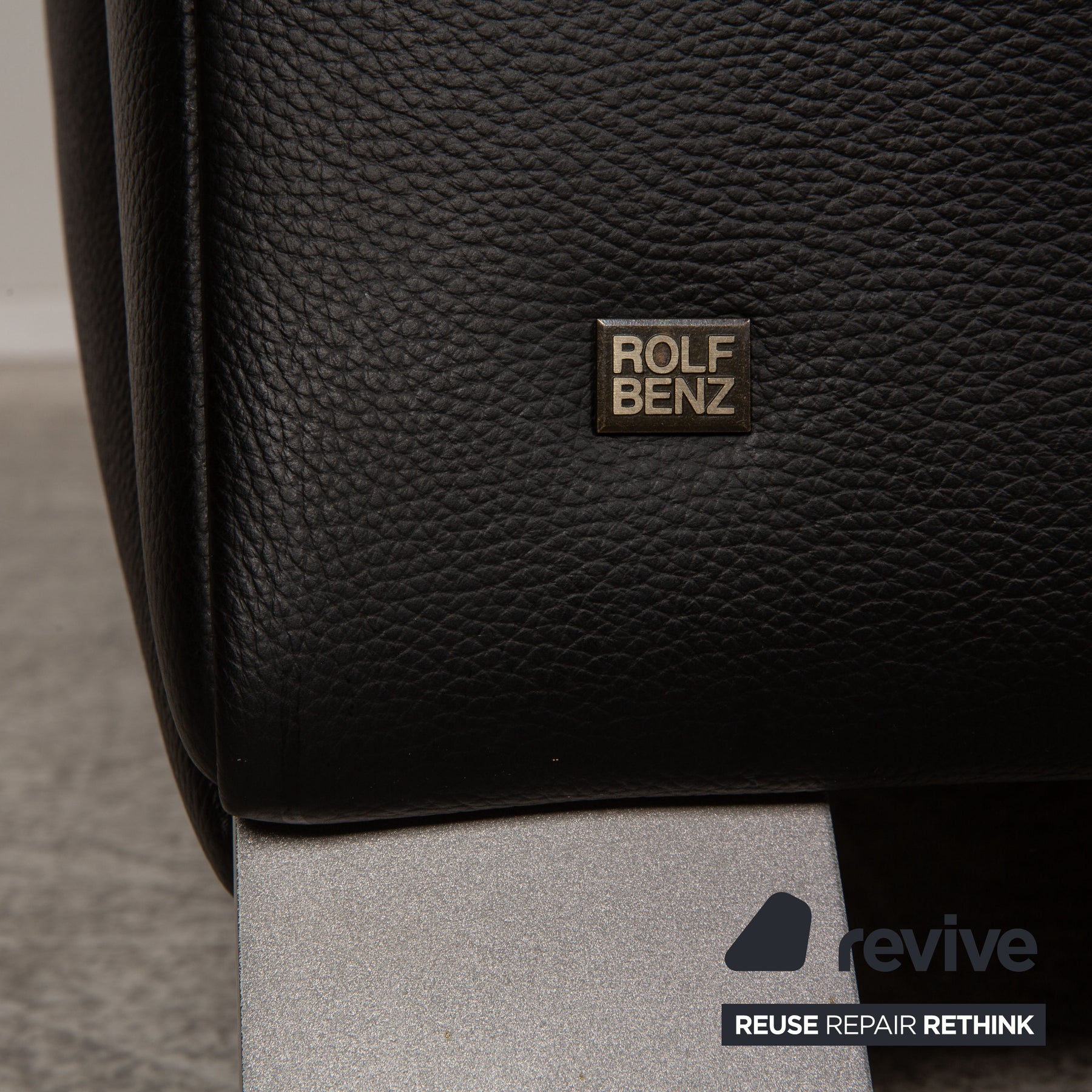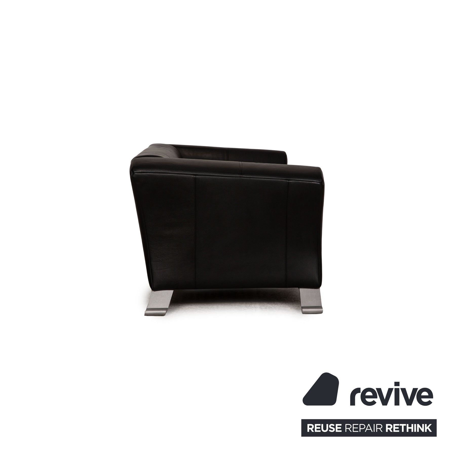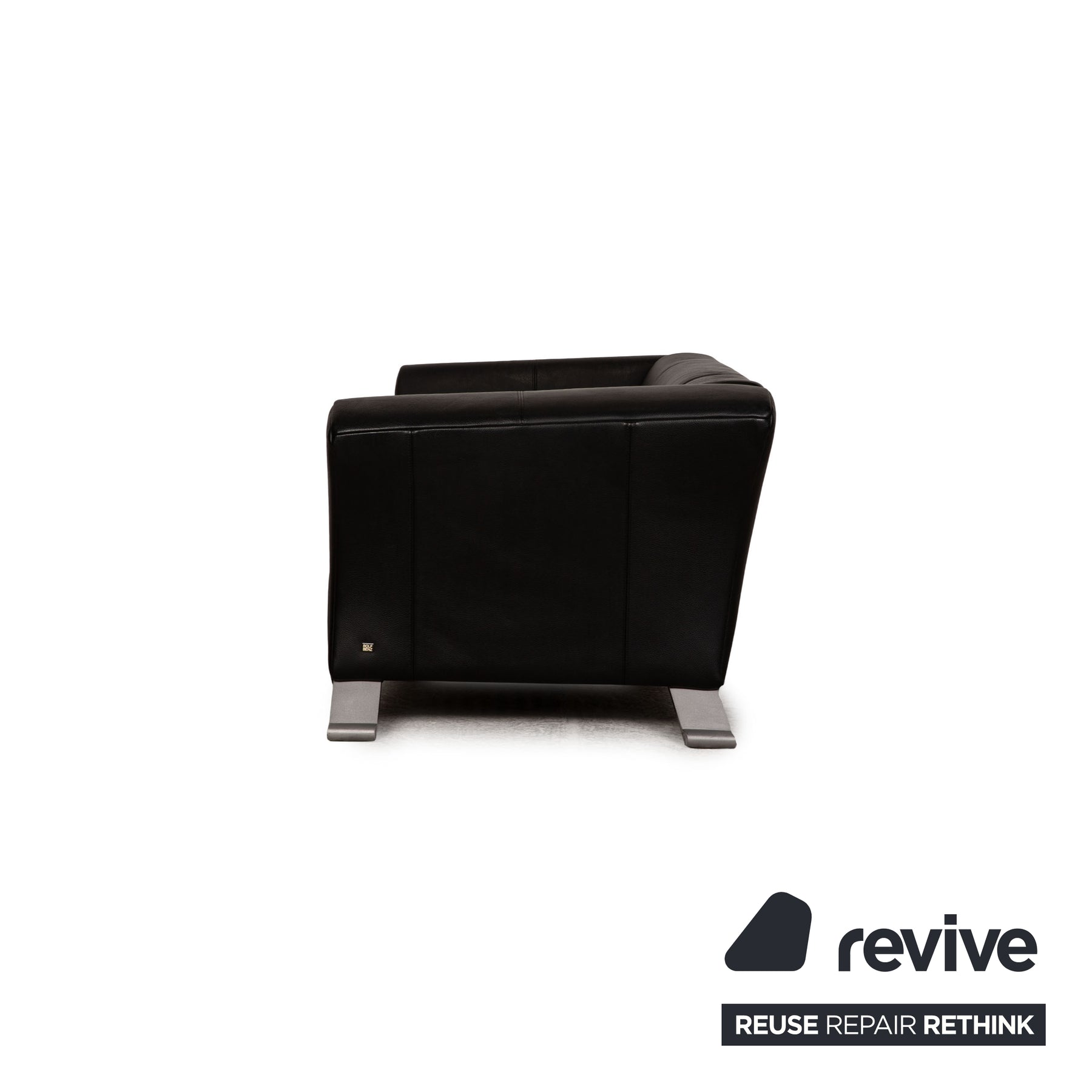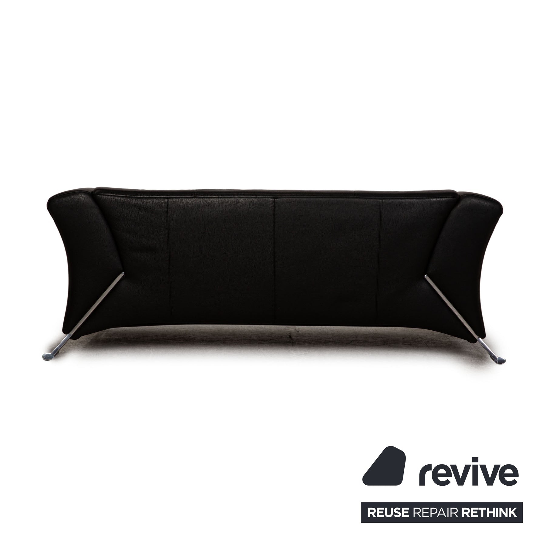 The 322 sofa by Rolf Benz is upholstered in black genuine leather and stands on silver metal feet. The simple design and the slanted armrests characterize the two-seater.