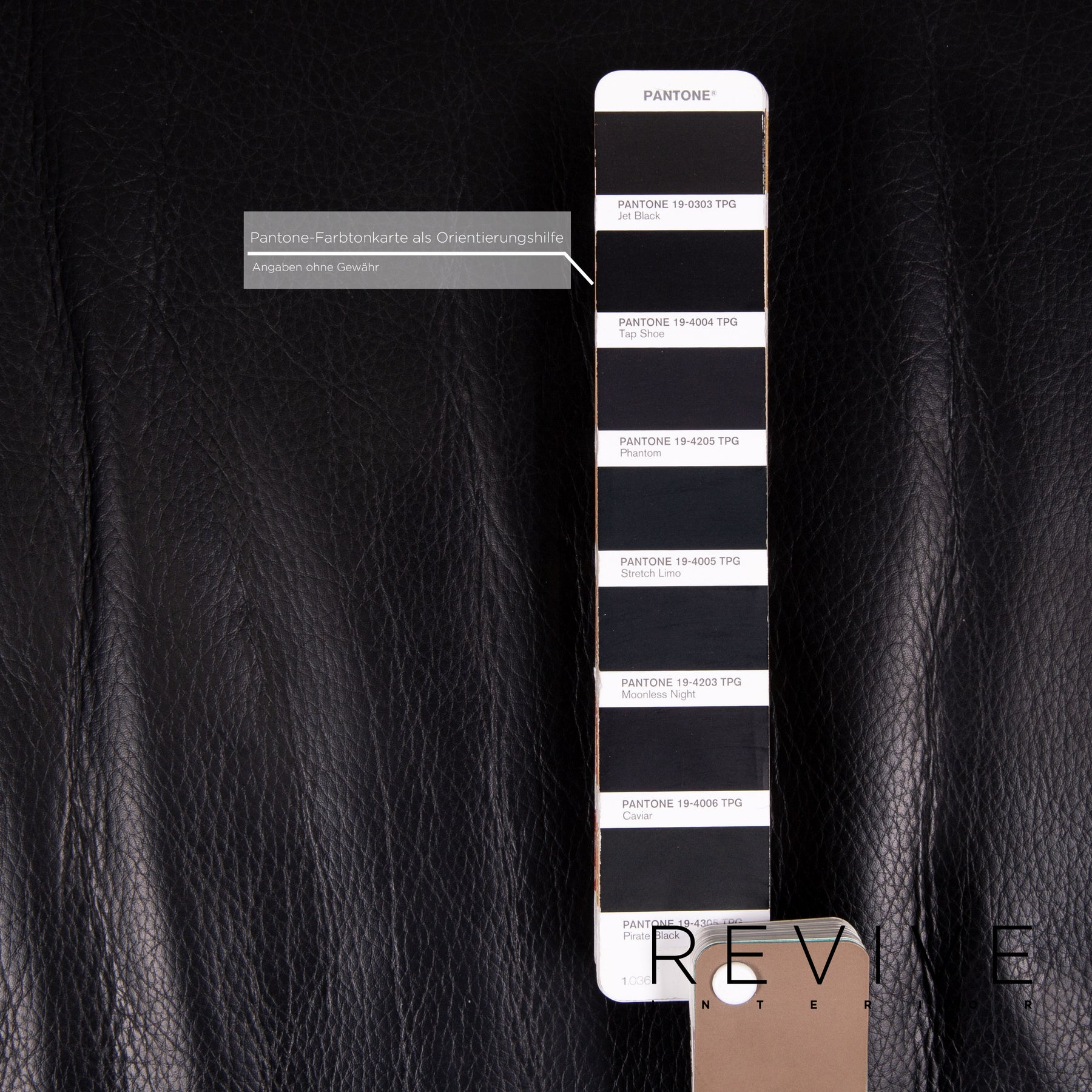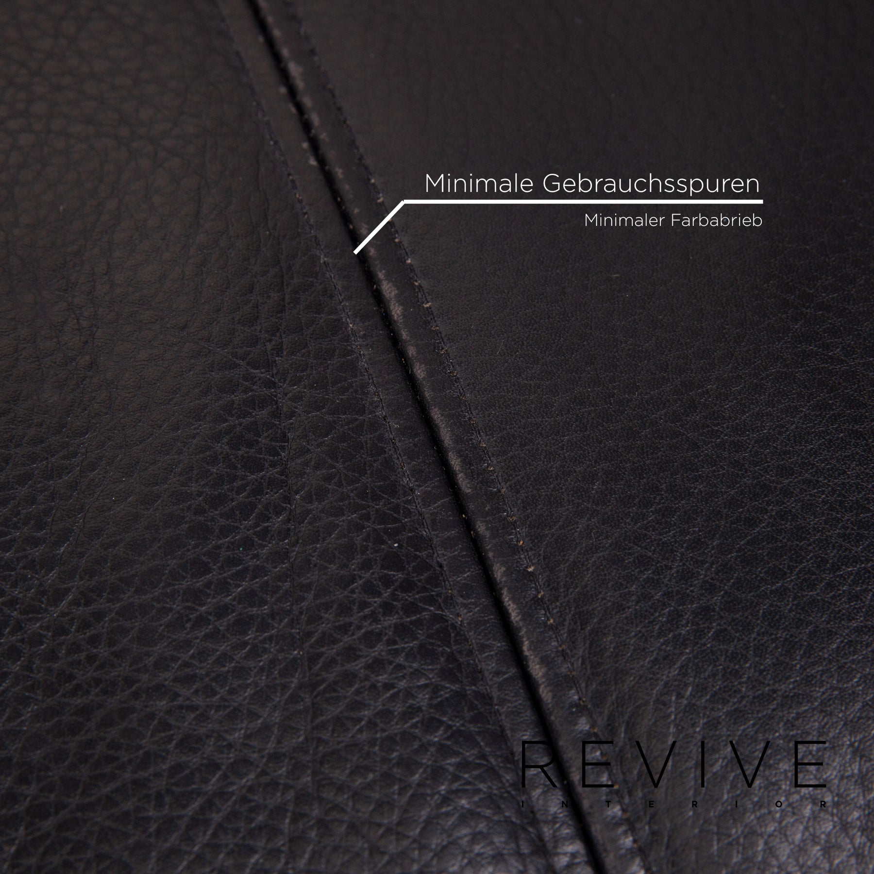 The three-seater Rolf Benz 322, upholstered in black genuine leather, is a classic where the compact body meets soft lines. The sloping aluminum feet and the outwardly curved backrests ensure dynamism. The medium-firm seating comfort ensures stability.