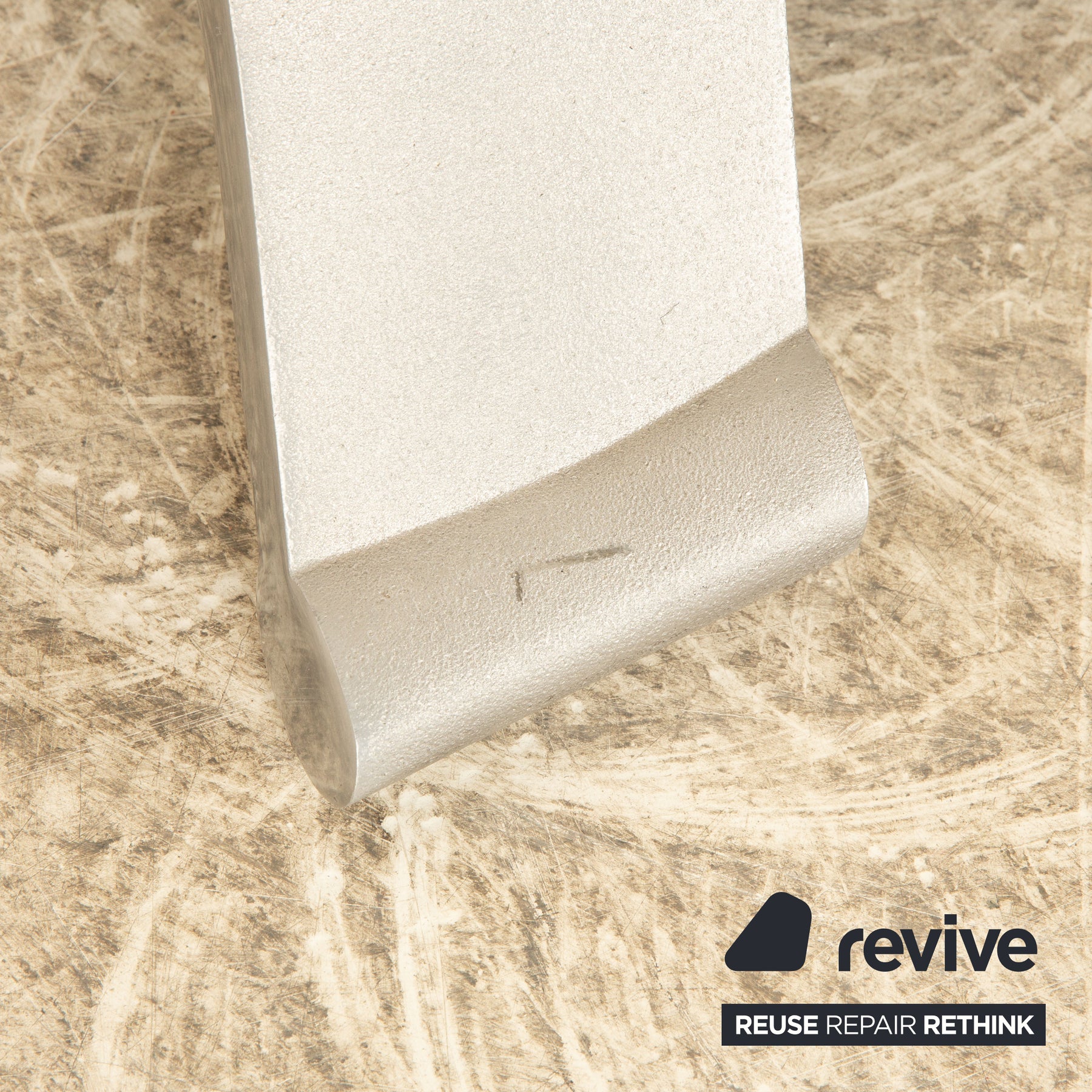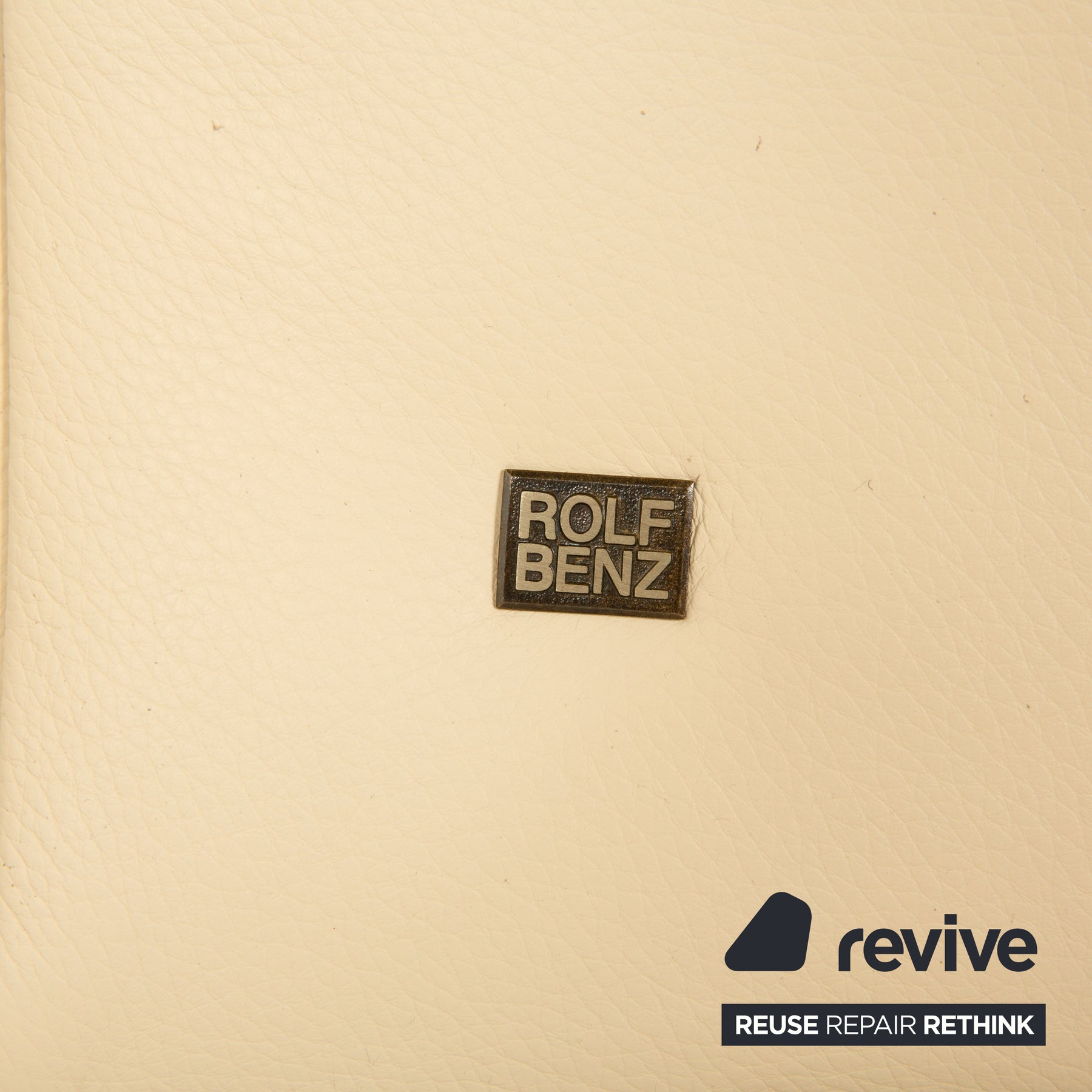 The 322 sofa by Rolf Benz is covered in cream-colored genuine leather and stands on metal feet. The timeless design characterizes the two-seater.